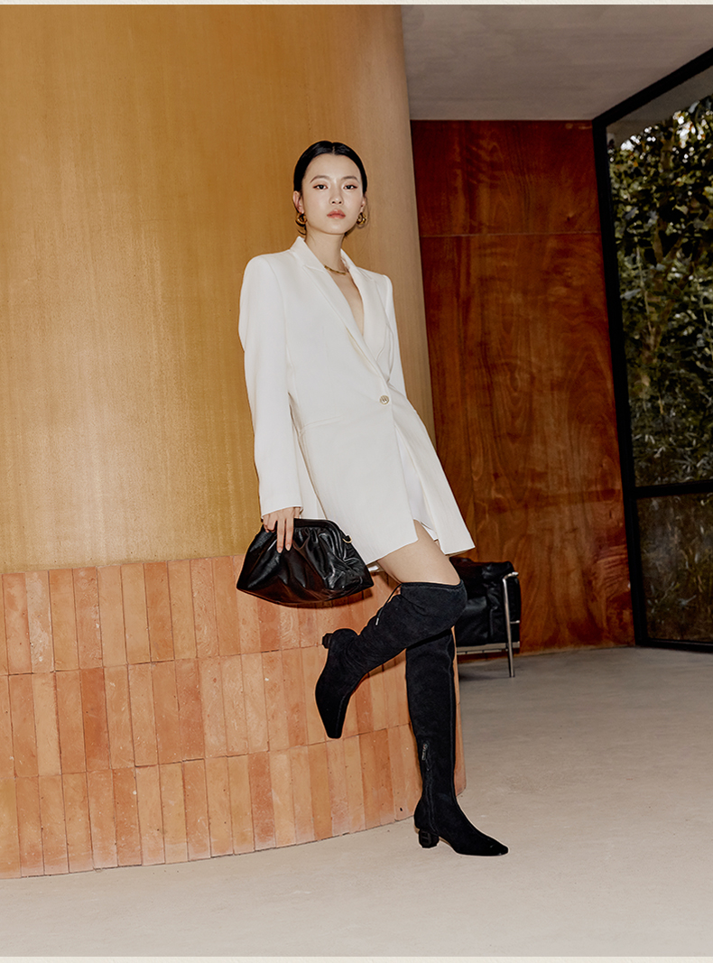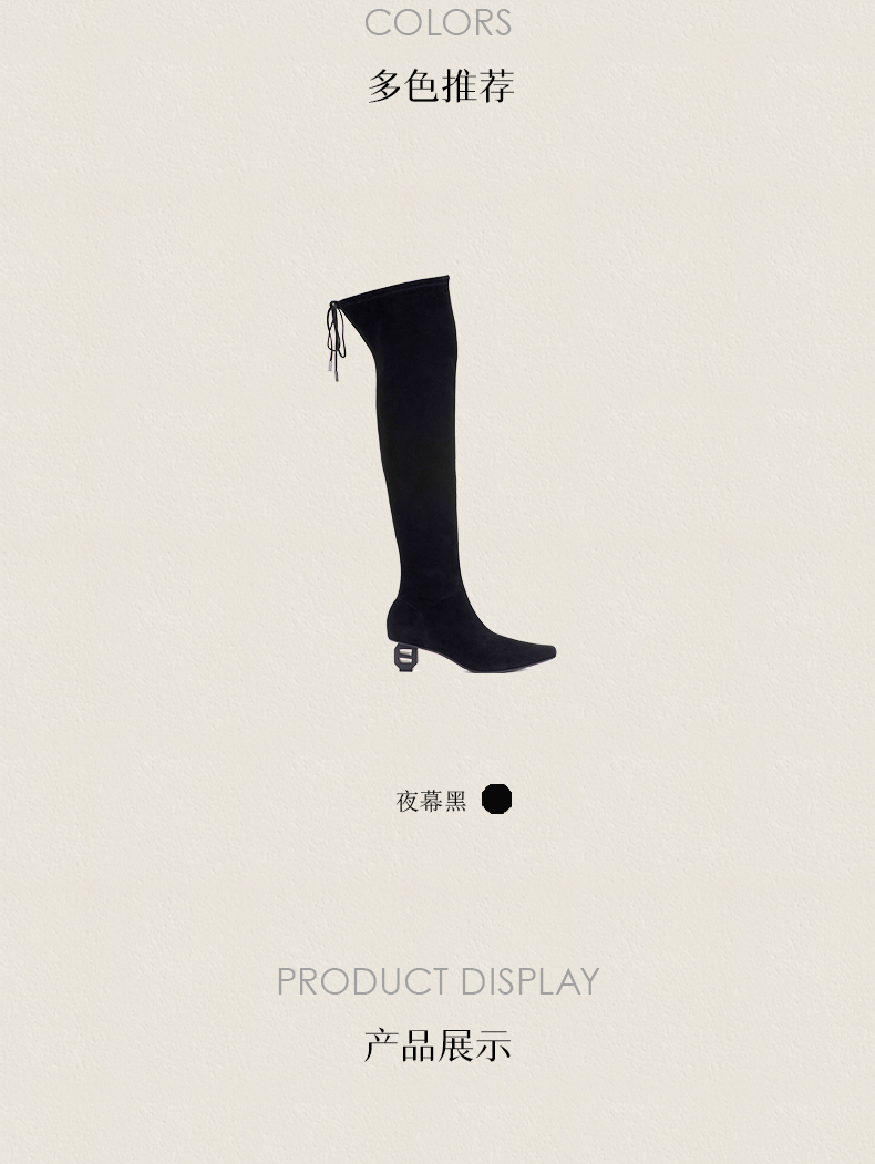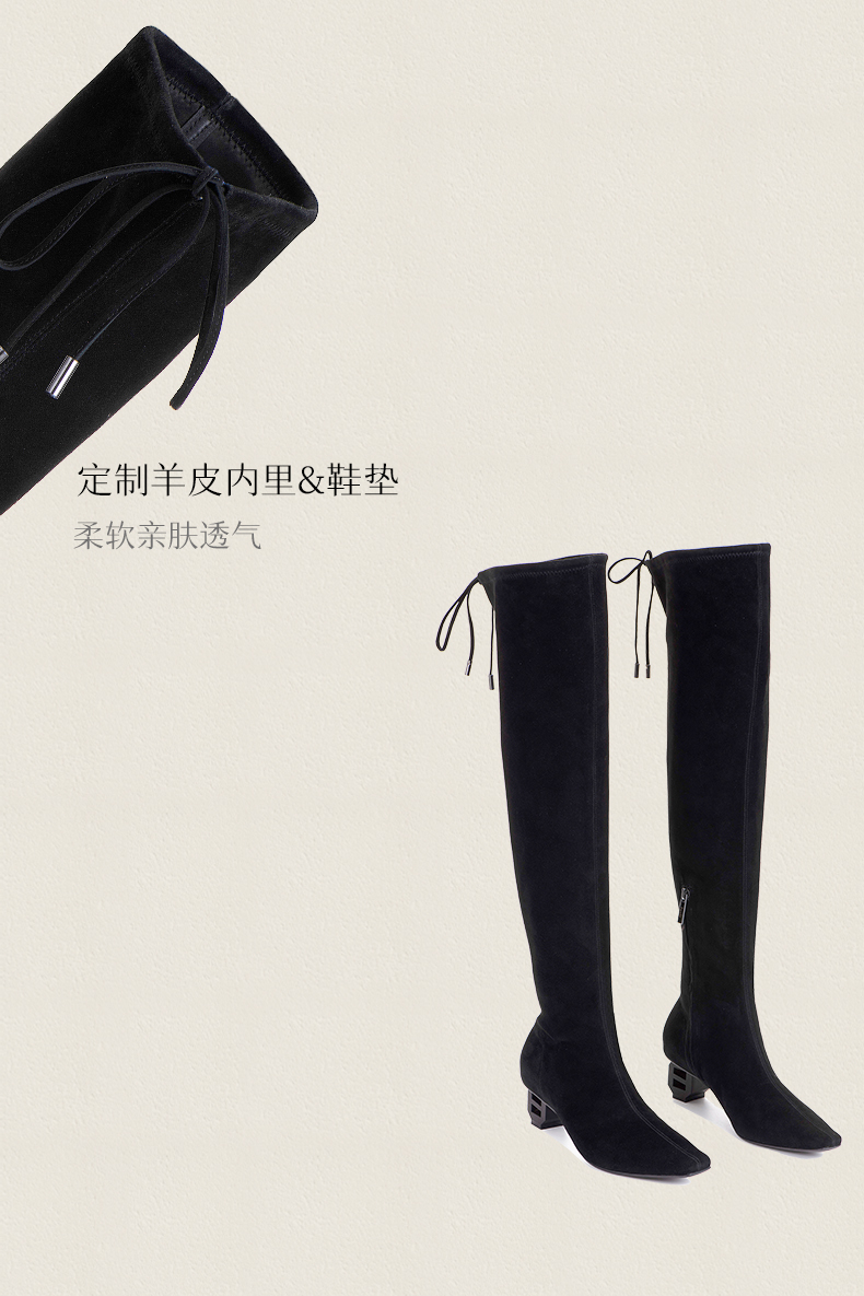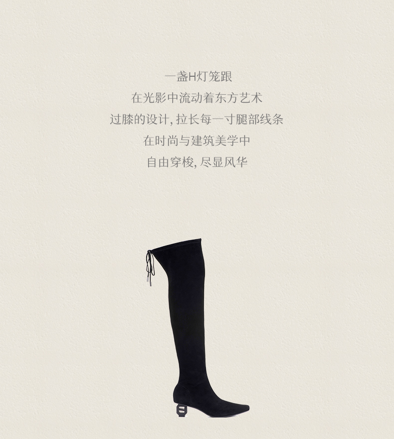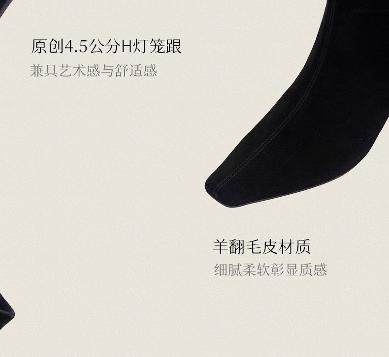 heelz设计师手工鞋履 |H灯笼跟羊翻毛皮过膝长靴4.5公分