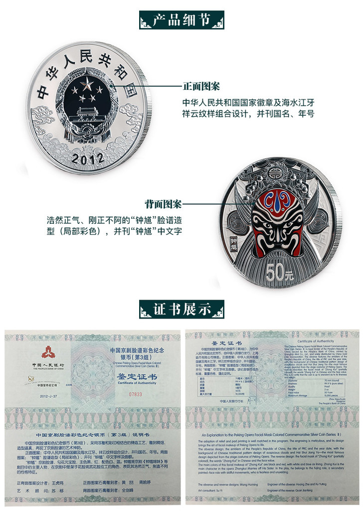 河南中钱 中国金币 2012年京剧脸谱第三组—钟馗 5盎司彩色银币