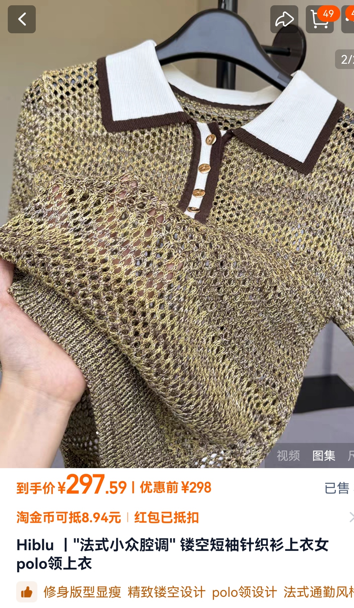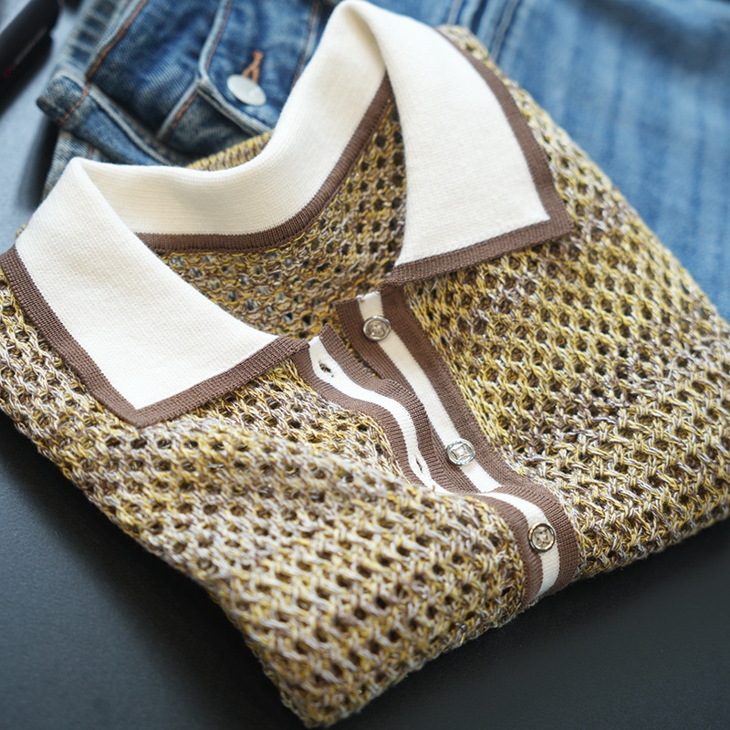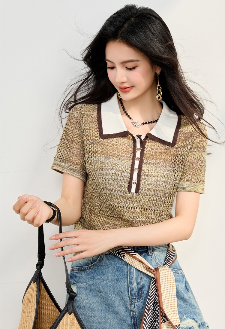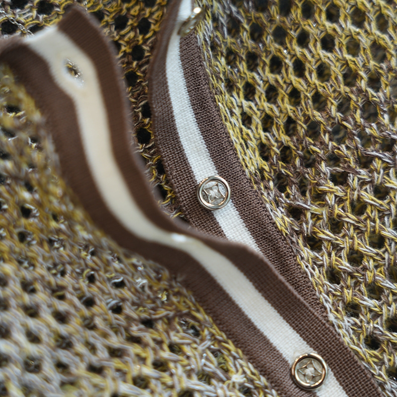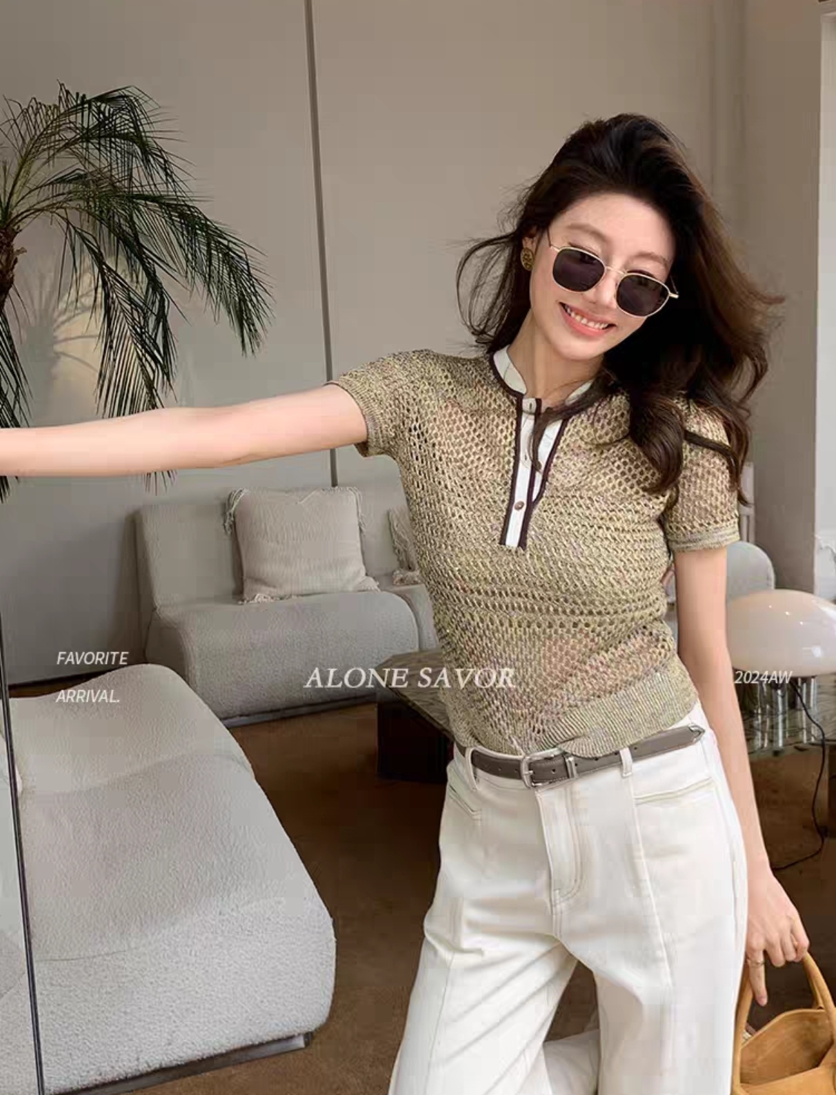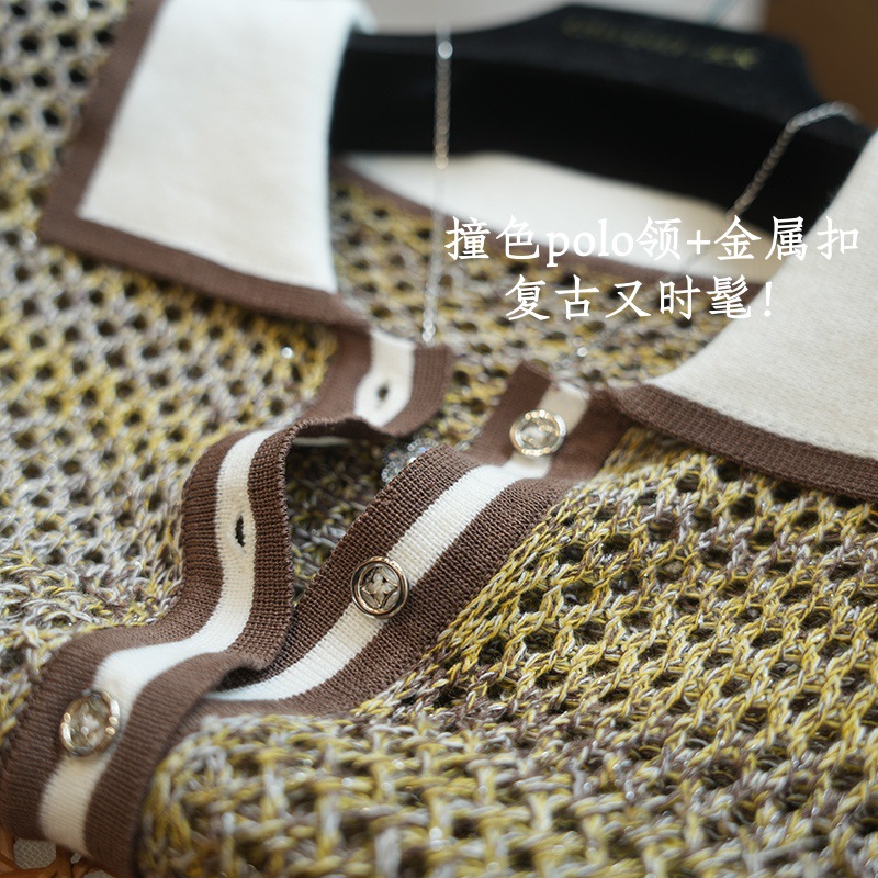赛琳镂空针织Polo衫复古控~自带腔调感谁懂?把法式慵懒和精致拿捏死了~混色花纱编织自带朦胧美感,镂空设计透气不闷,夏季穿超舒服~