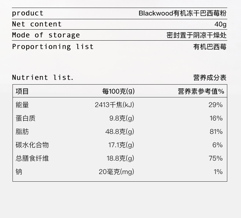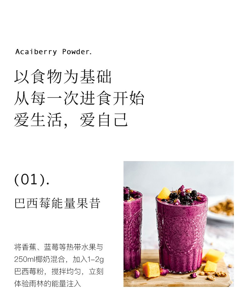 【食用方法及食用量】取1g产品放入杯中,加入150ml液体奶,搅拌均匀即可;可用于烘焙配料,或搭配燕麦粥、果昔等