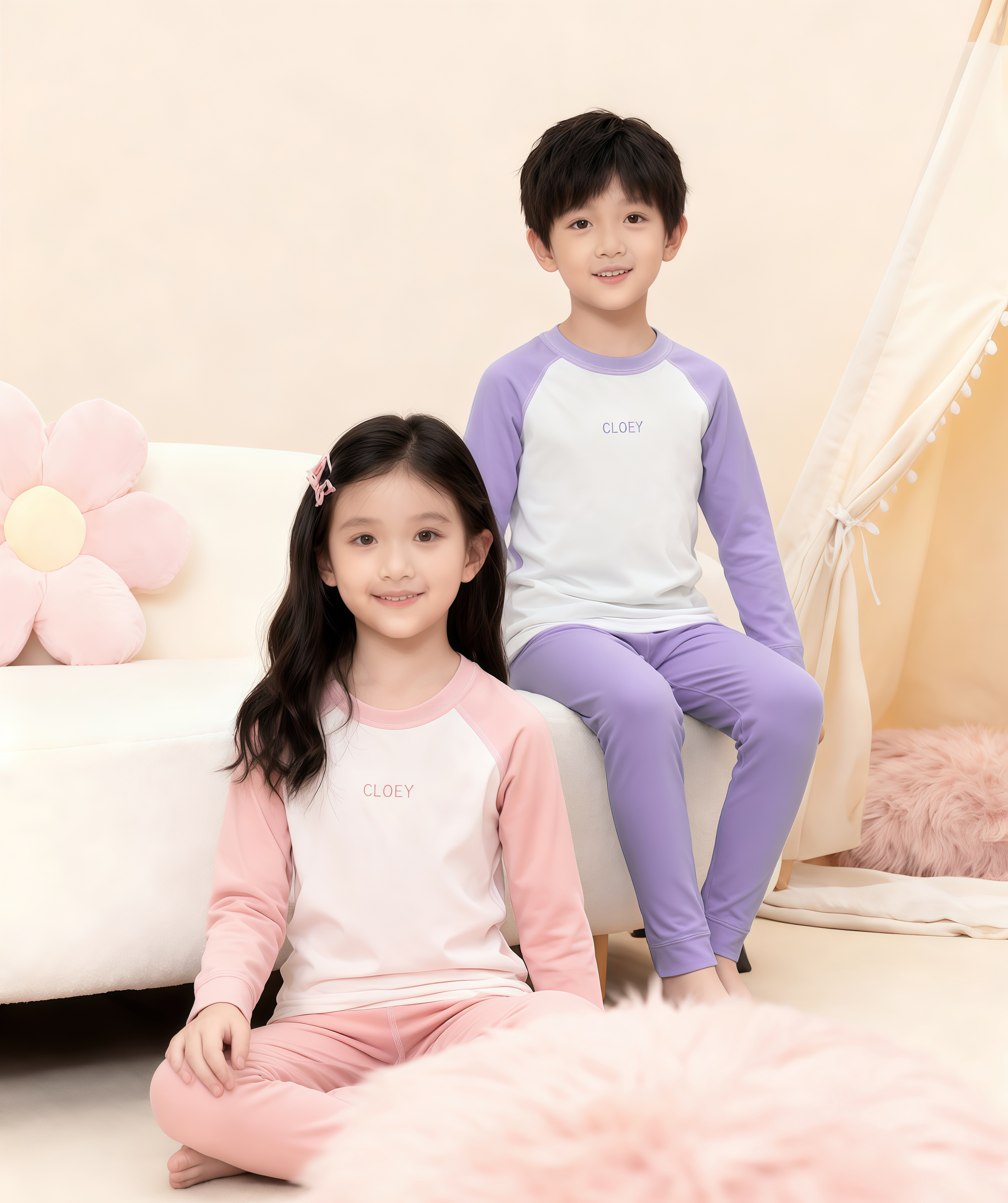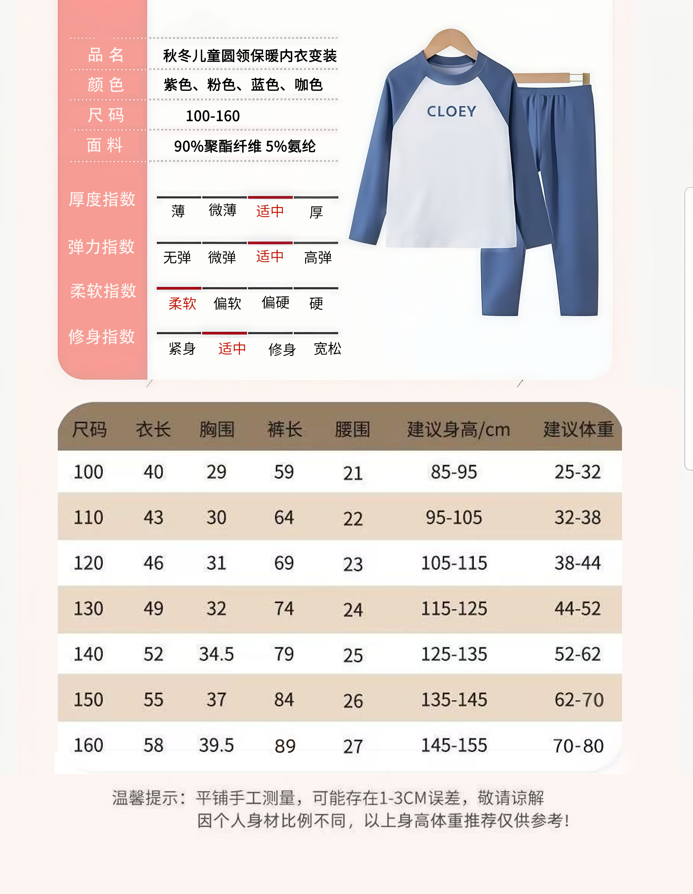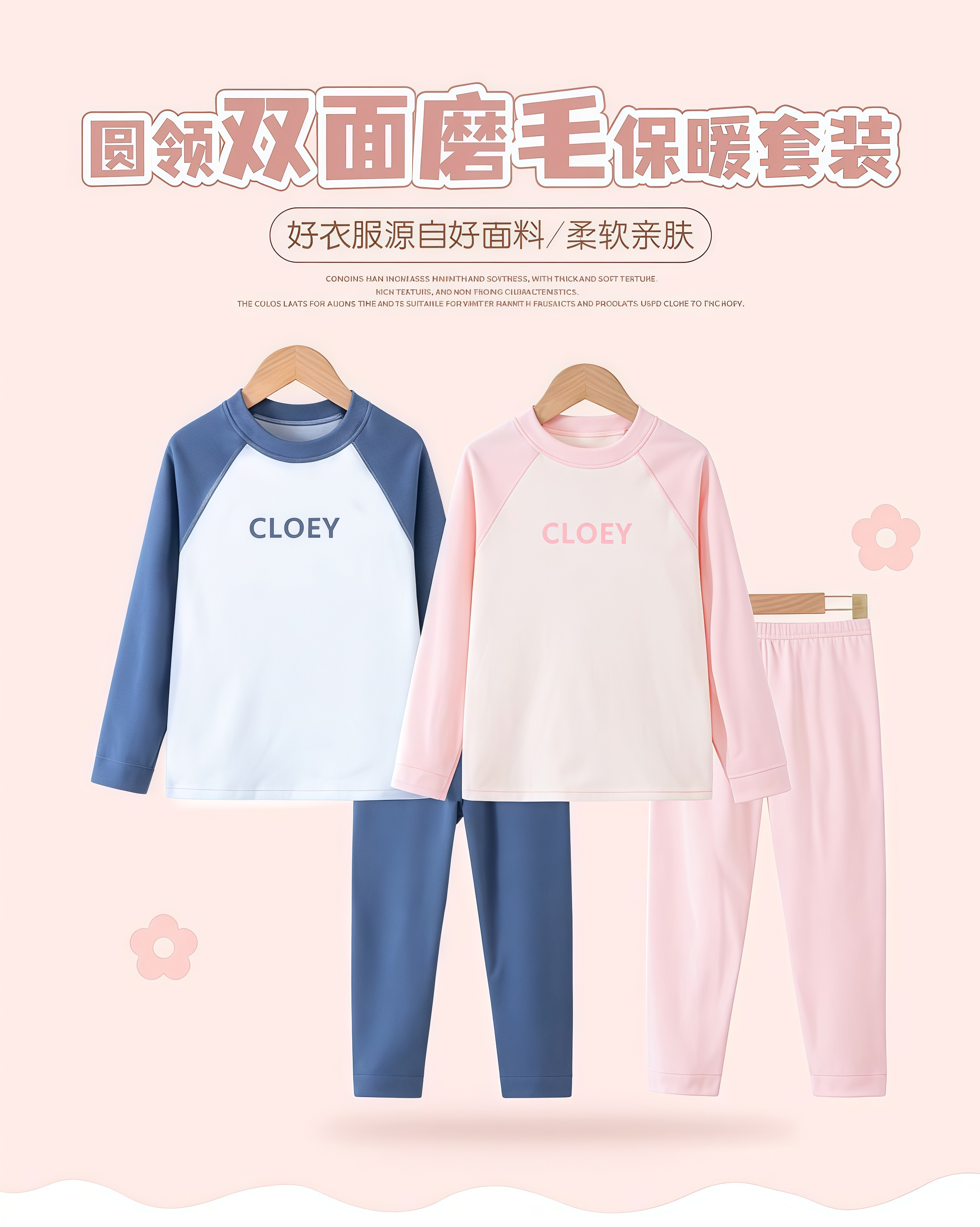 69元2套【轻梵 男女童保暖套装】双面磨毛A类标准 100-160码秋衣秋裤 无骨套装加绒 男女童保暖内衣 中大童打底衫! ZXT