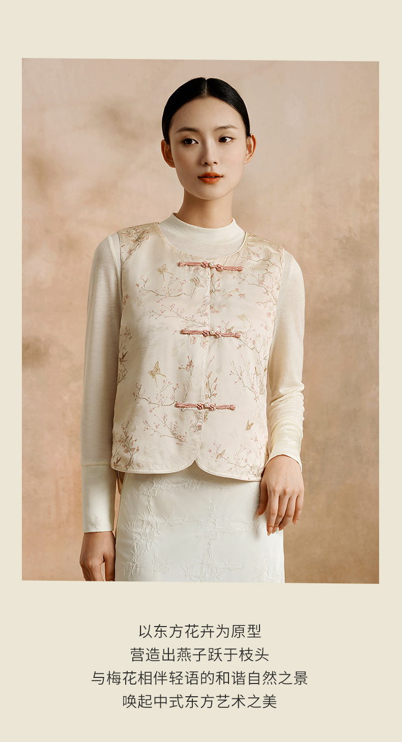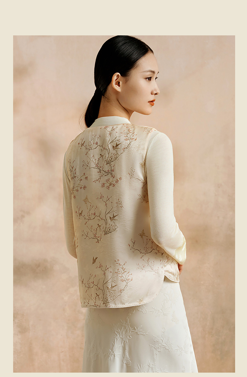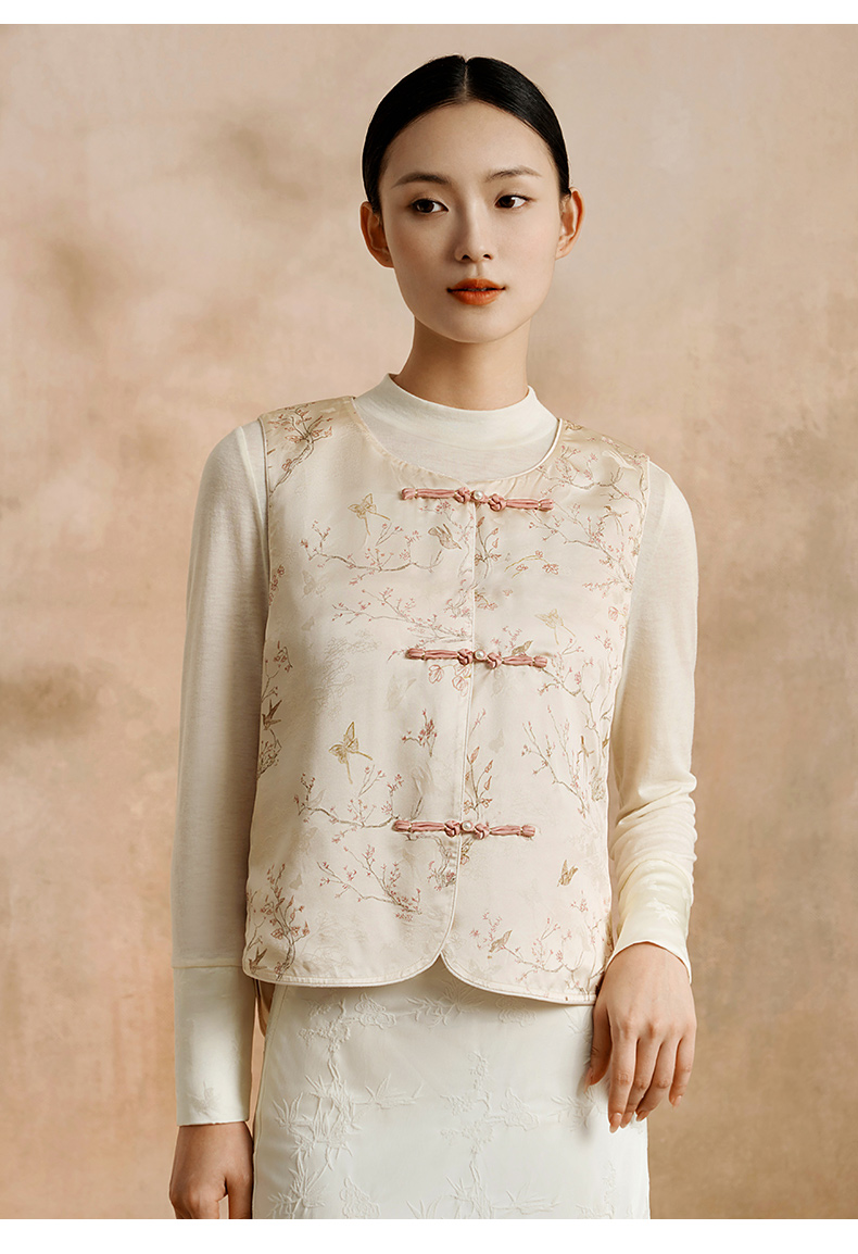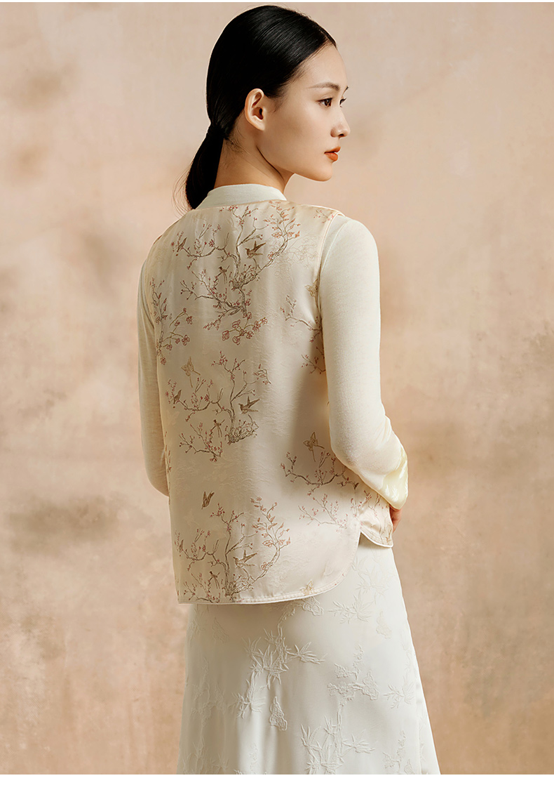 金三塔新中式100%桑蚕丝填充保暖马甲圆领珍珠盘扣秋冬新品上装女 NSFED730
