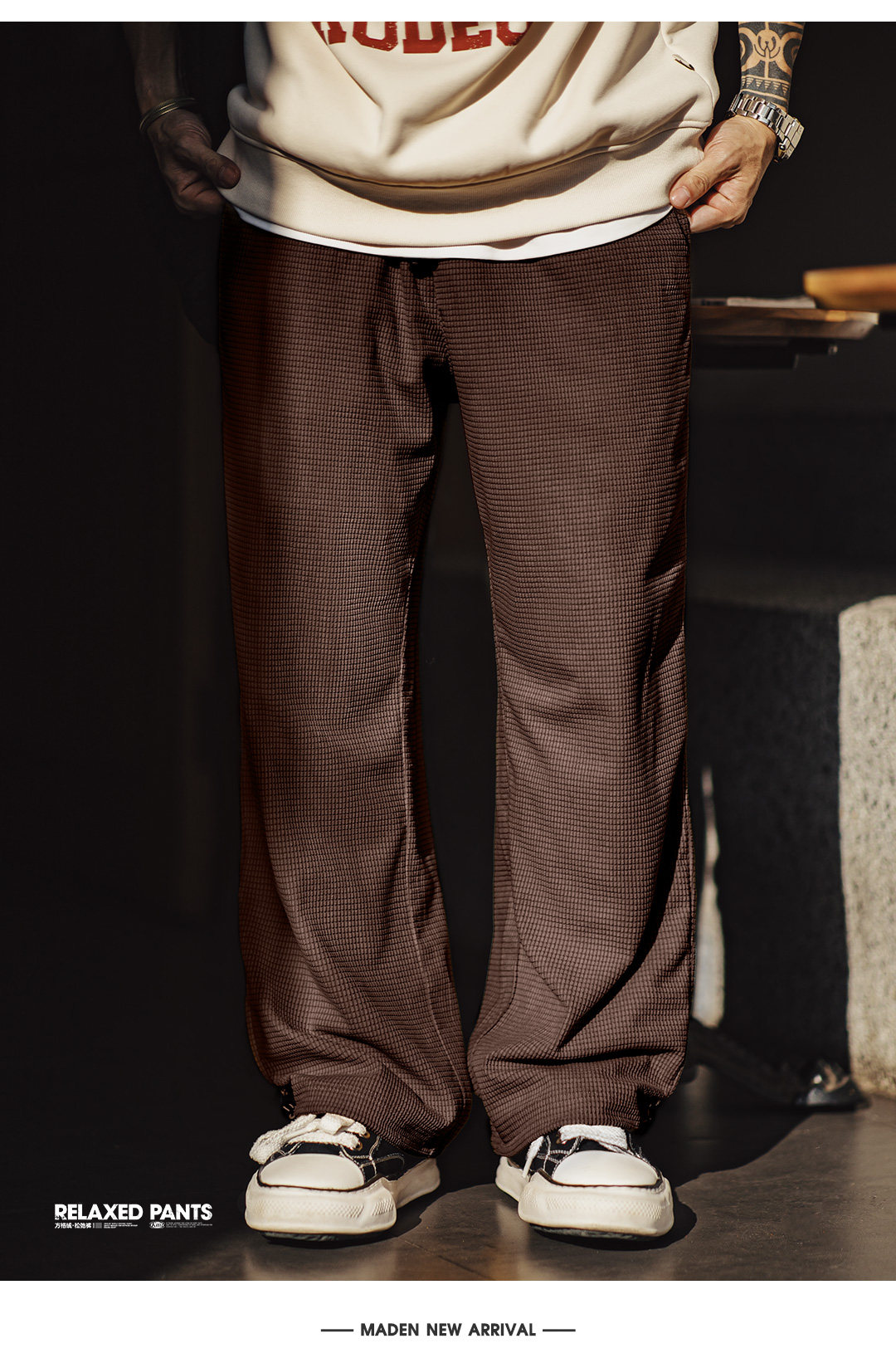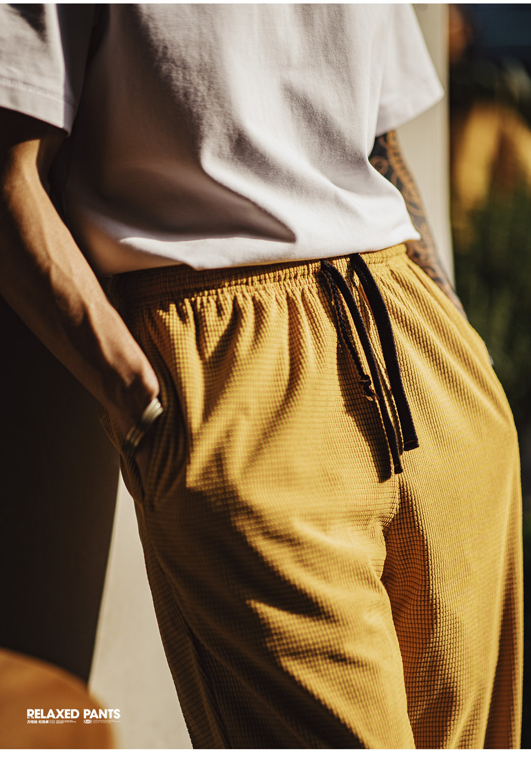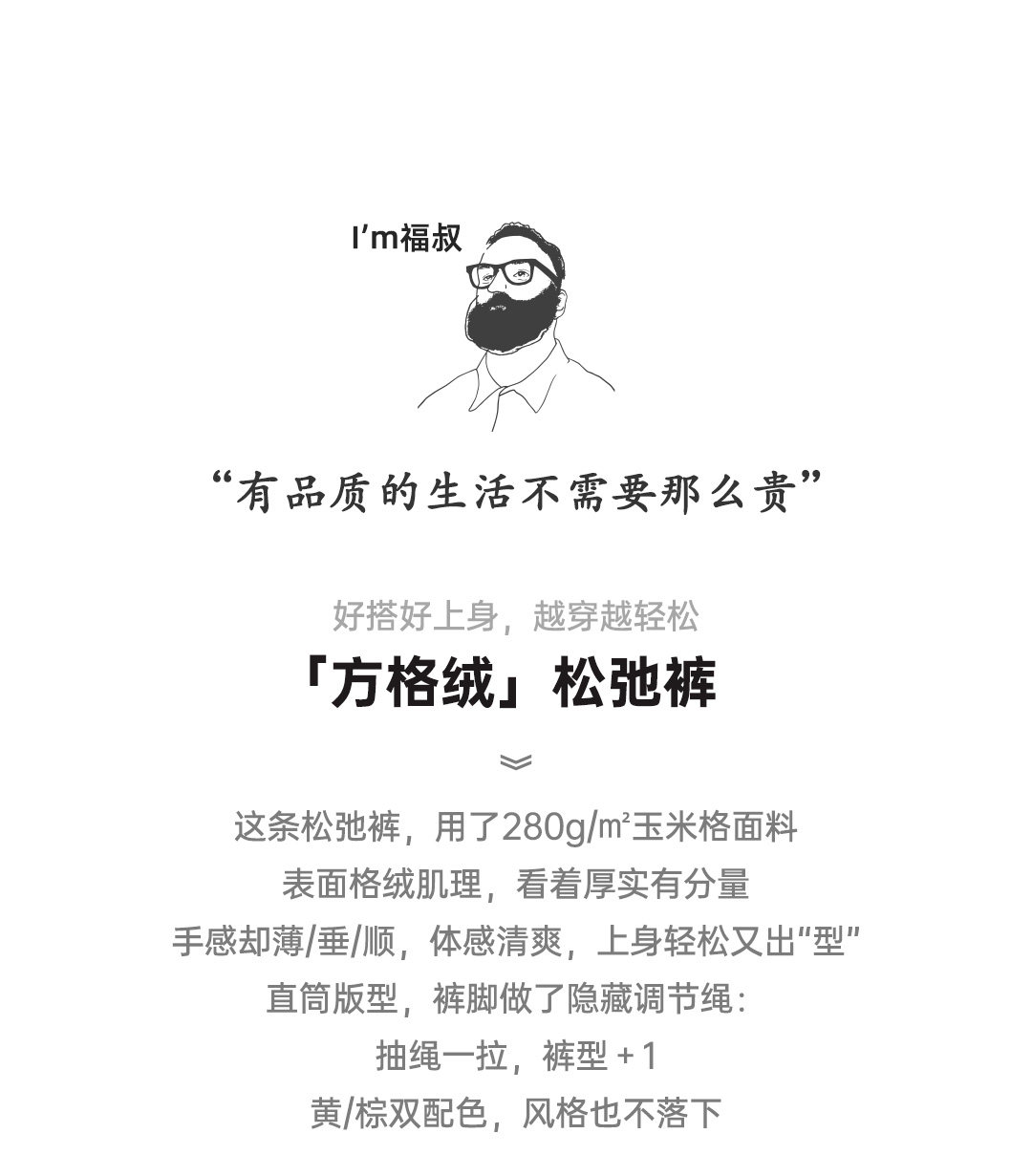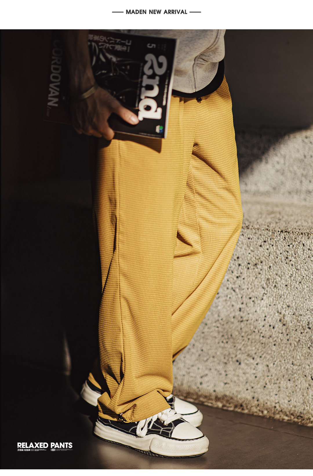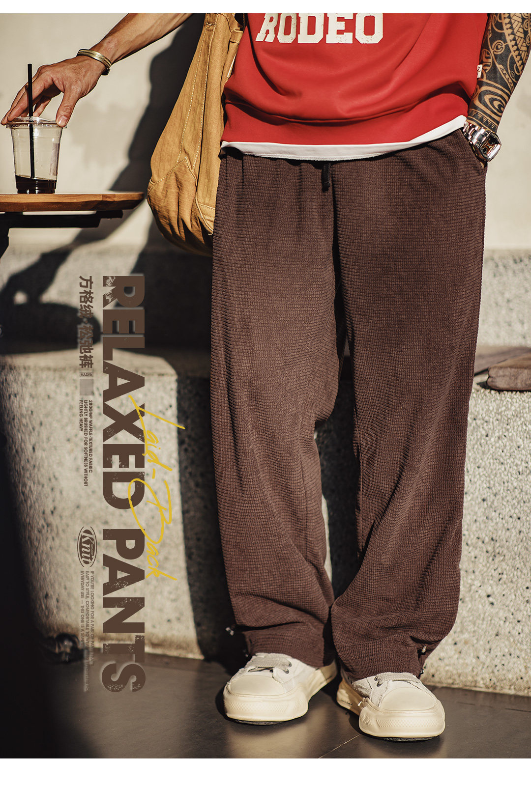 马登工装美式方格黄色玉米绒休闲裤直筒抽绳束脚宽松长裤子男款春