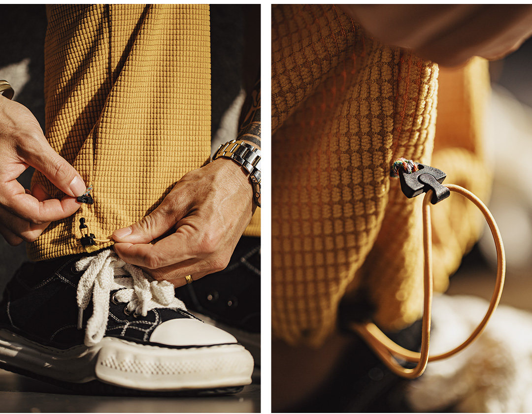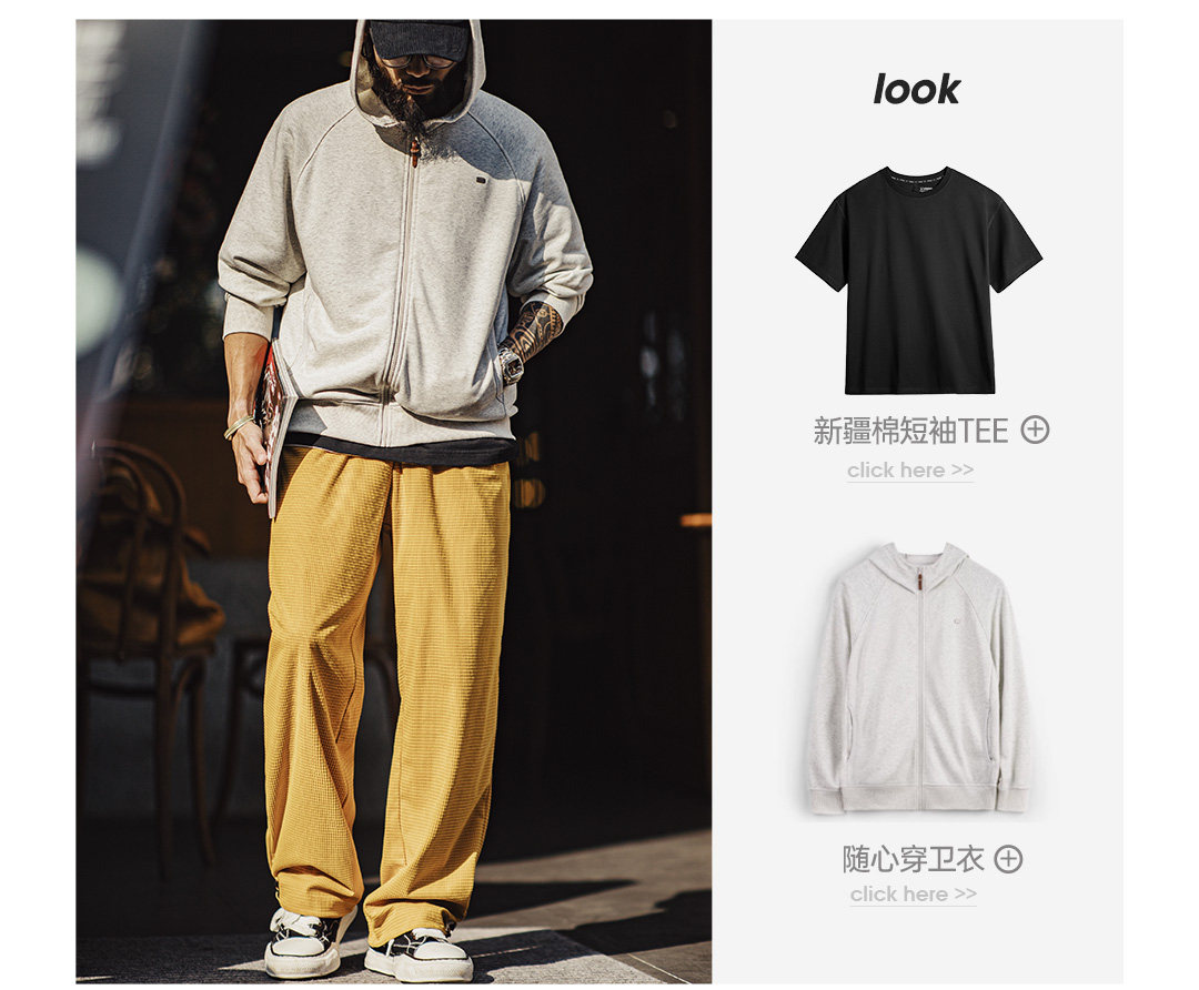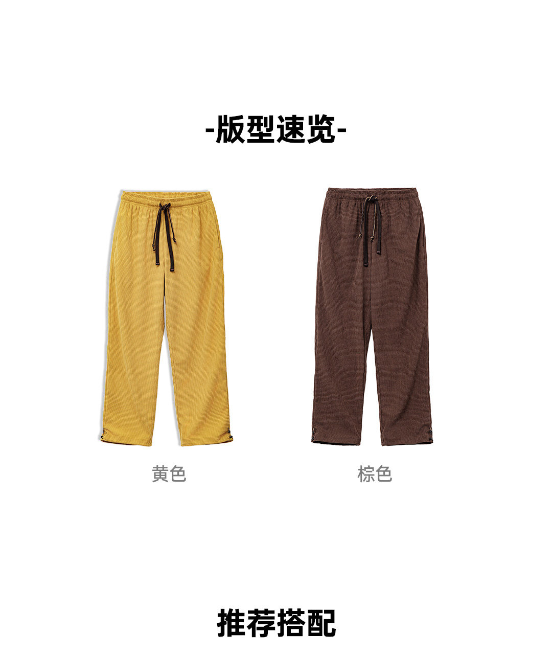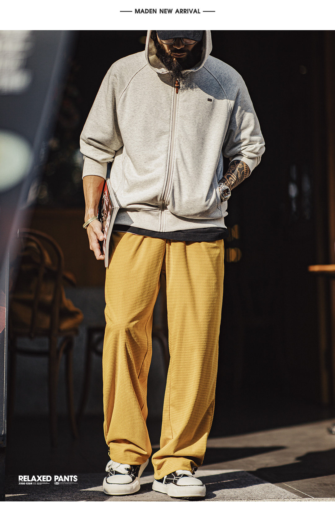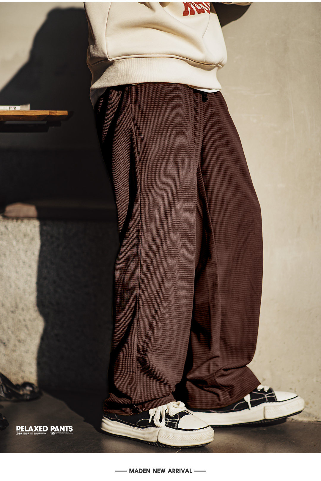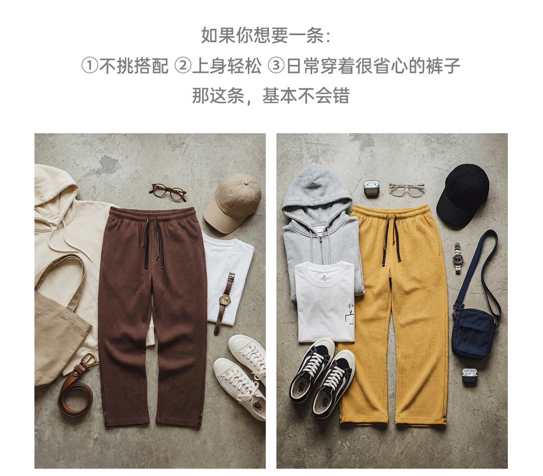 马登工装美式方格黄色玉米绒休闲裤直筒抽绳束脚宽松长裤子男款春