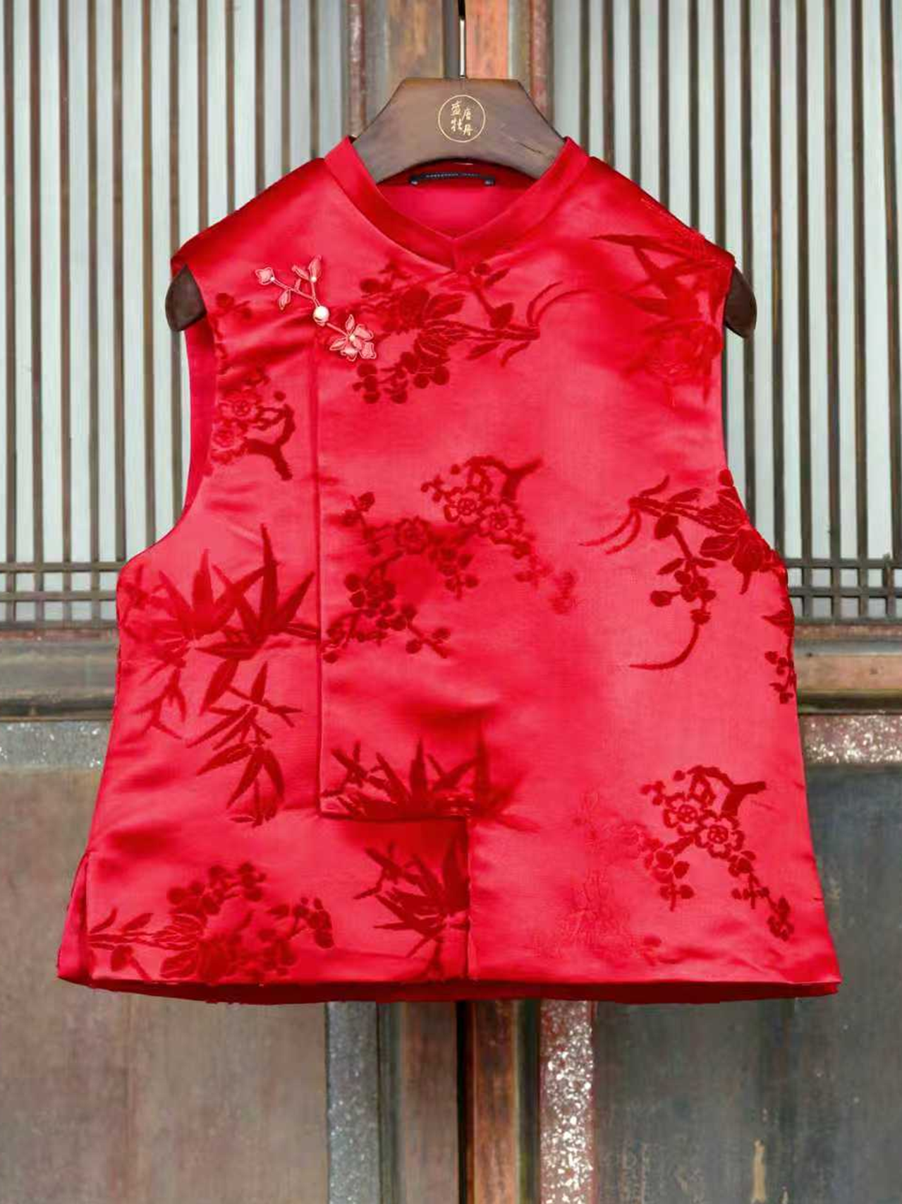 盛唐牡丹 | 梅兰竹菊真丝漳缎马甲