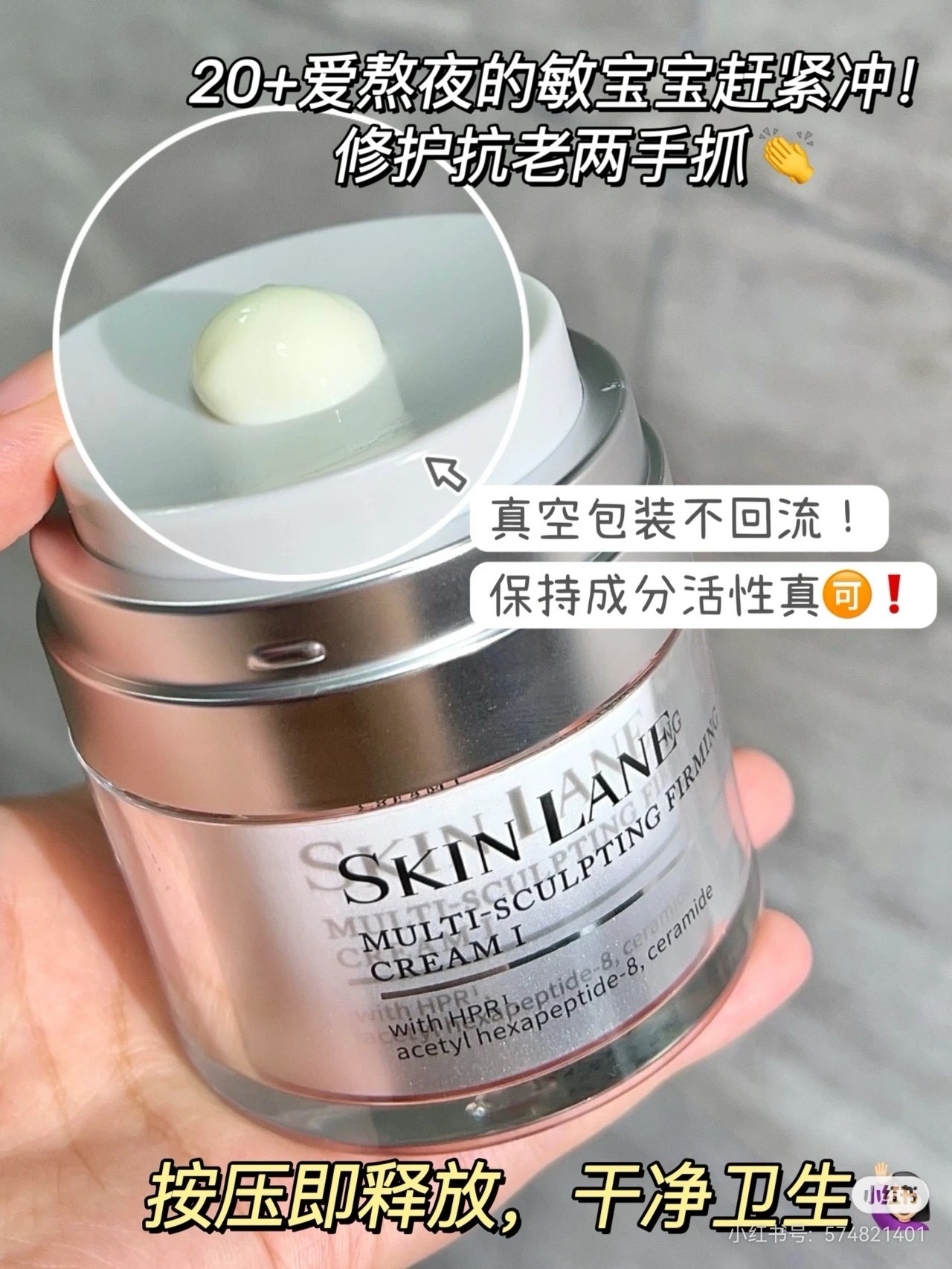 。面霜:三大源头阻拦的calmSL+抗老》新A醇HPR+六胜肽+龙胆草精华!!