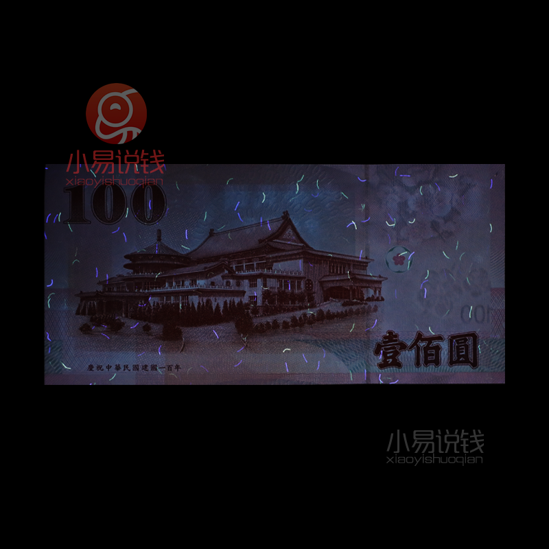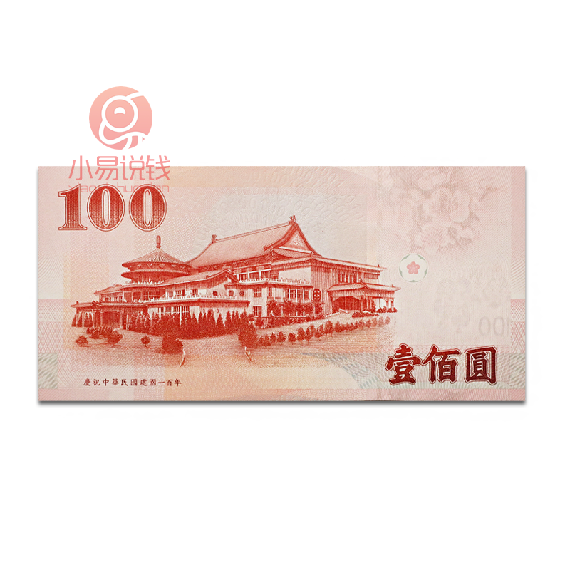 辛亥百年纪念钞,台湾于2011年发行,发行量4亿张,正面主图为孙中山像、早年行医雕像、《礼运大同篇》节选,背面主图为中山楼。