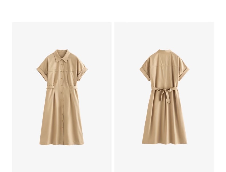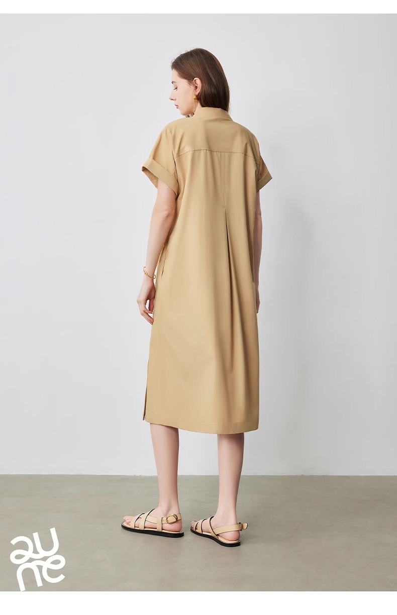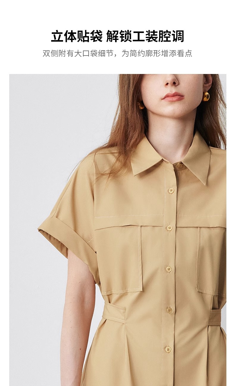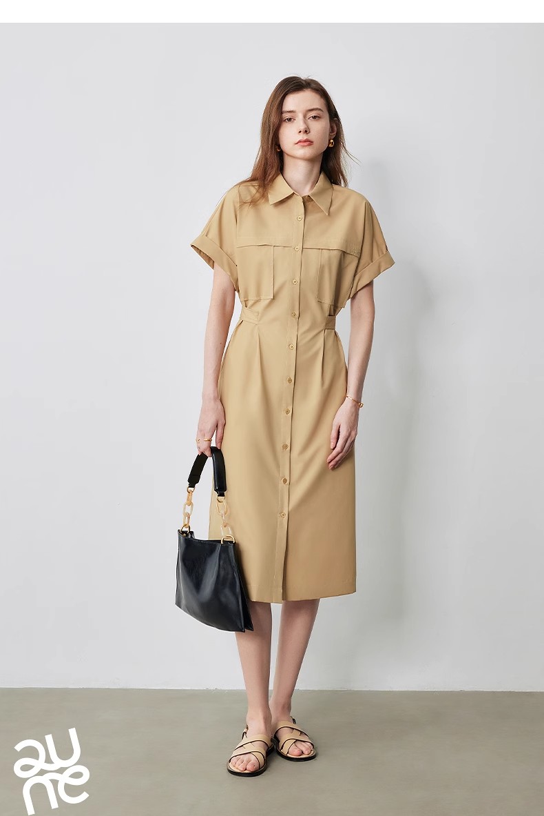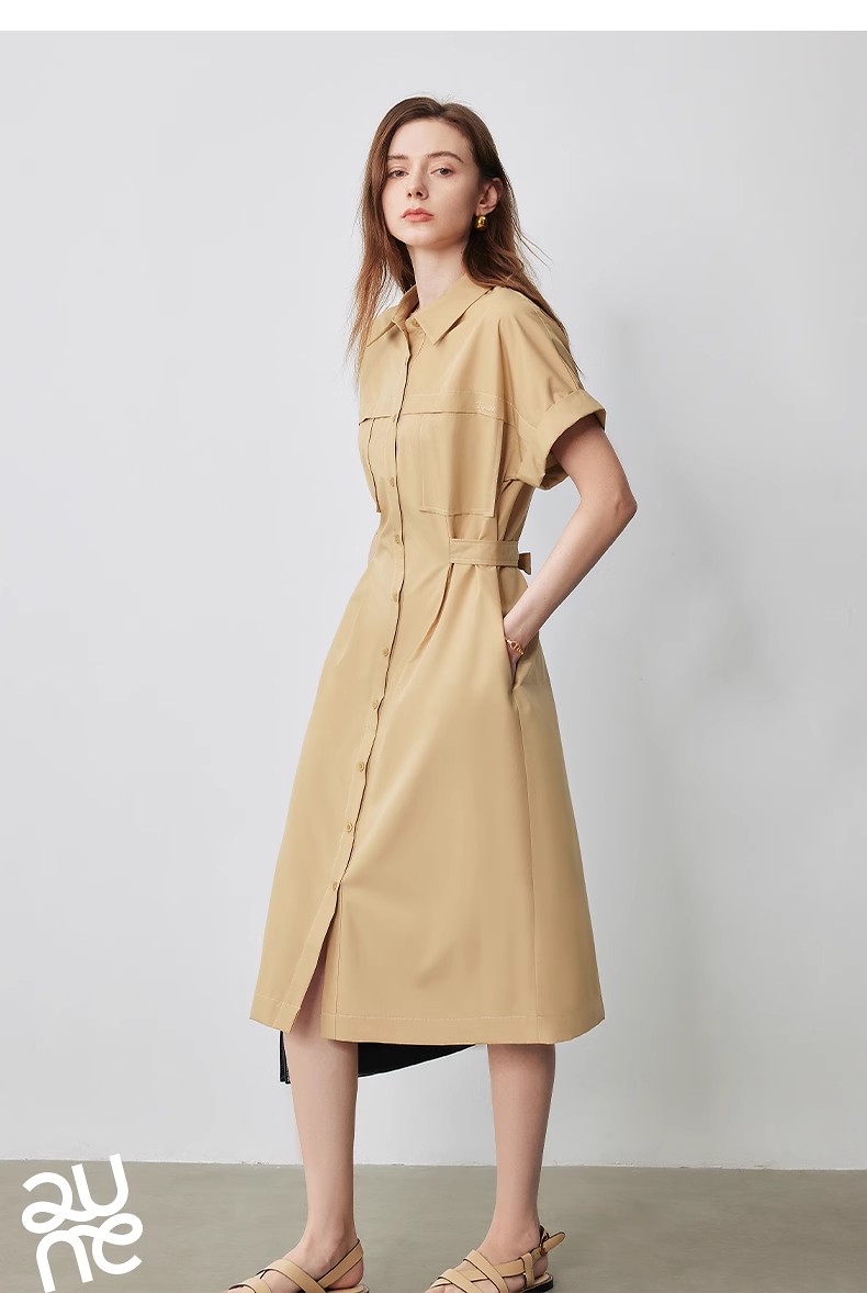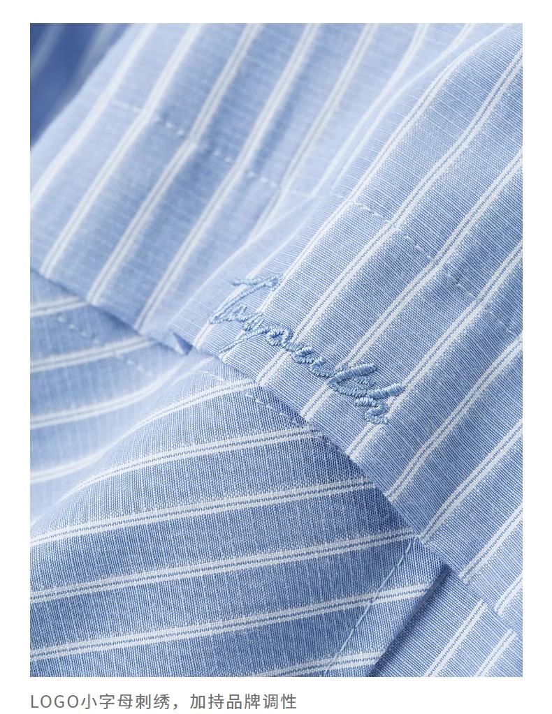 初语条纹衬衫连衣裙女夏季收腰显瘦短袖长裙