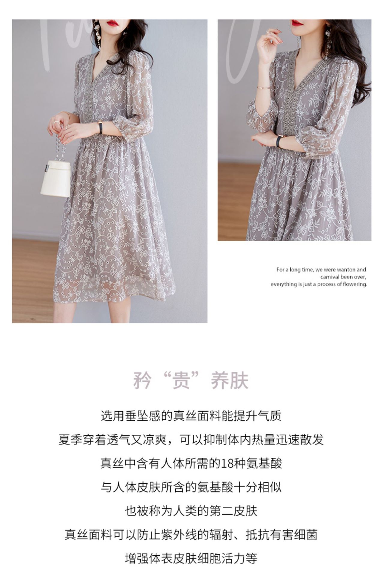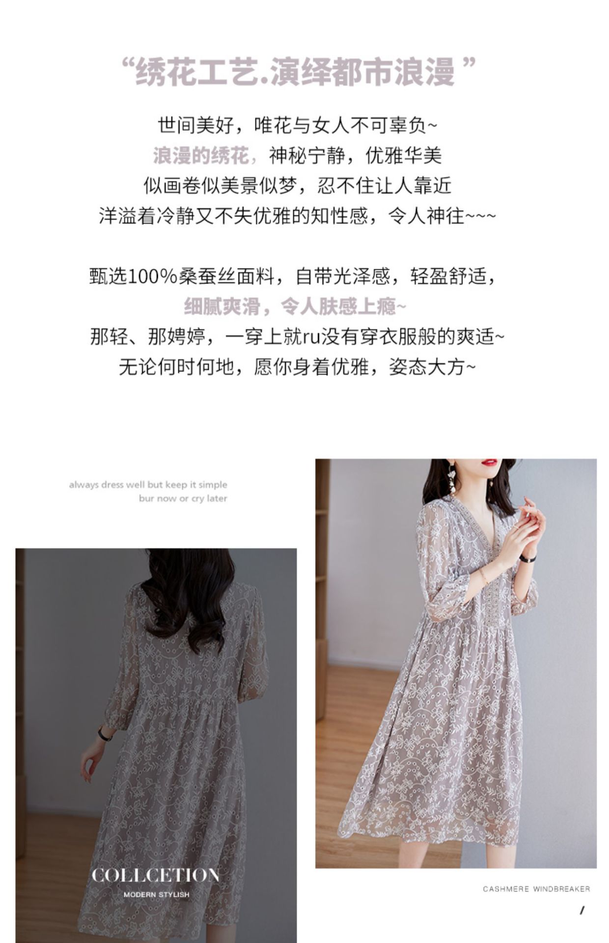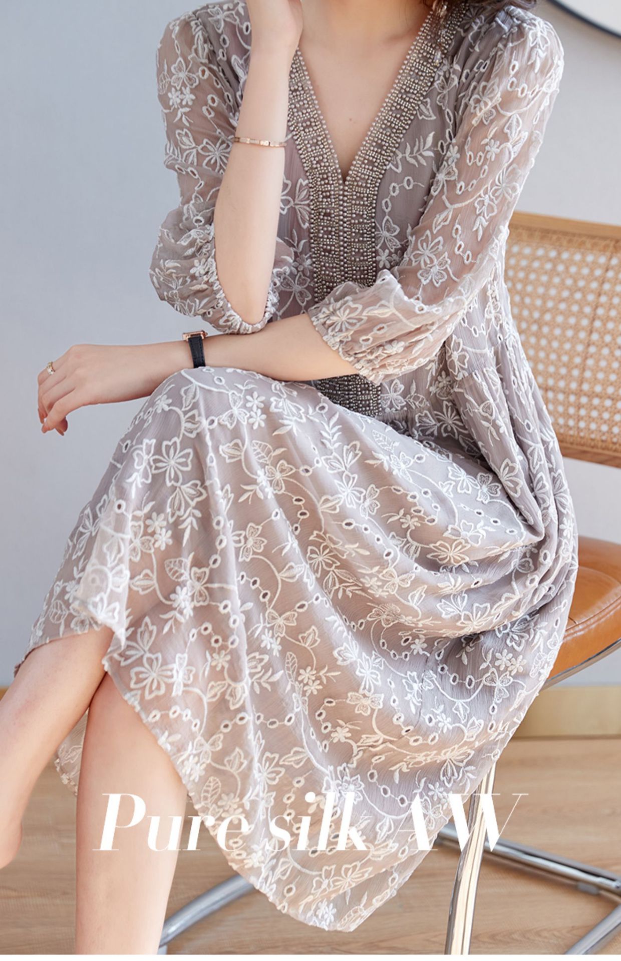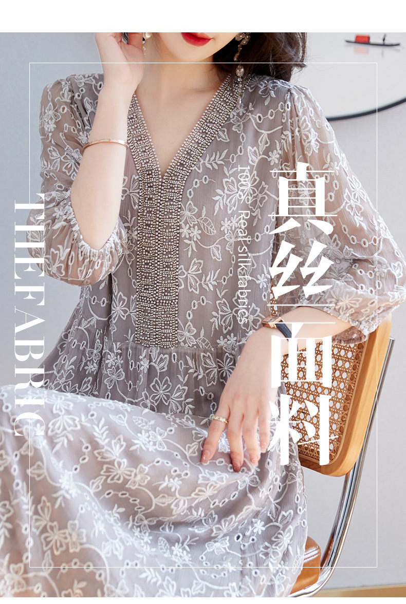 OSL 3513重工刺绣桑蚕丝连衣裙V领气质真丝裙
