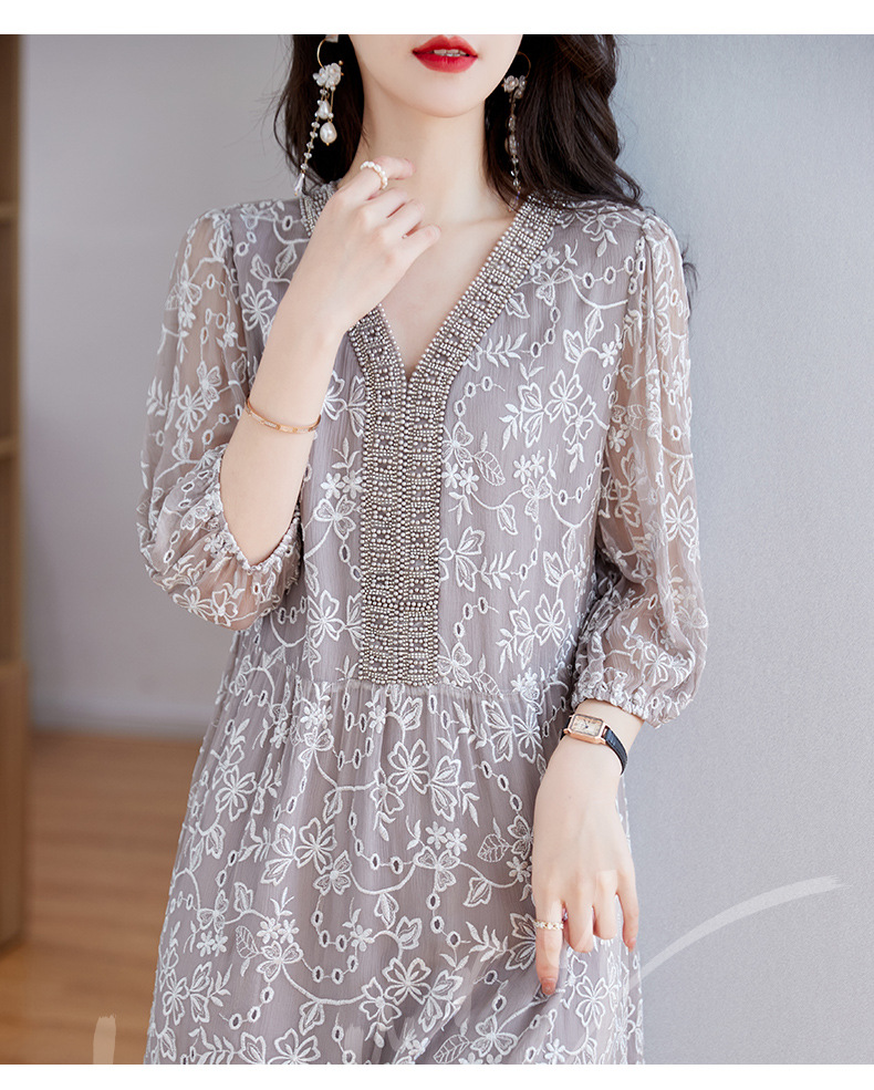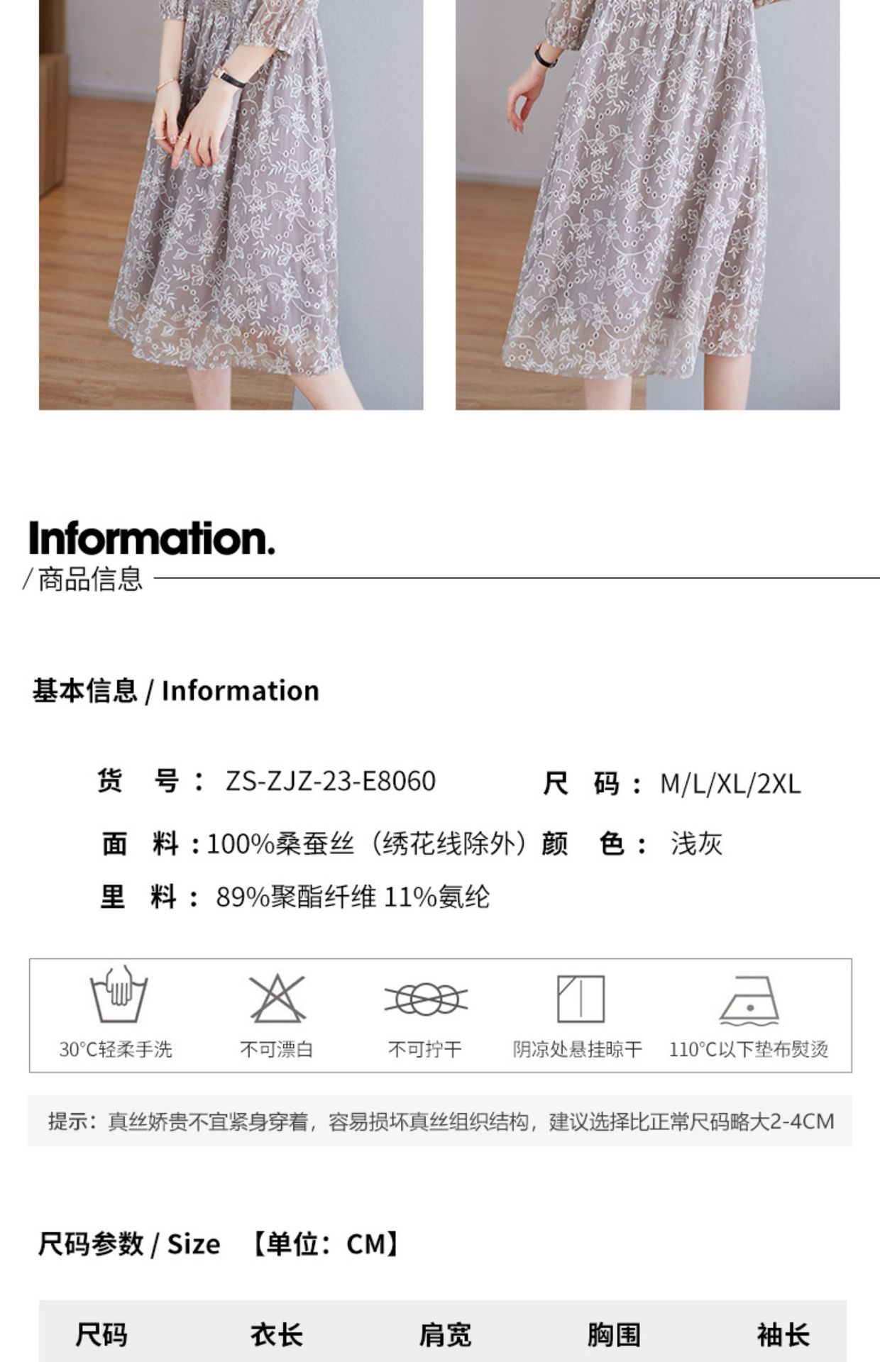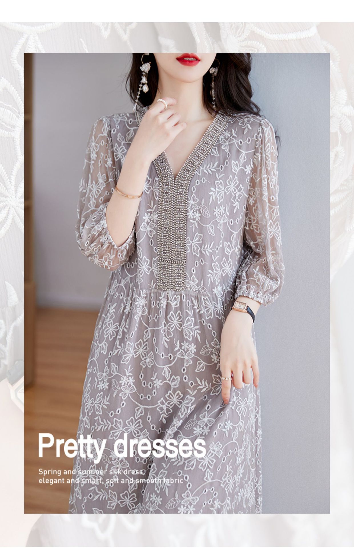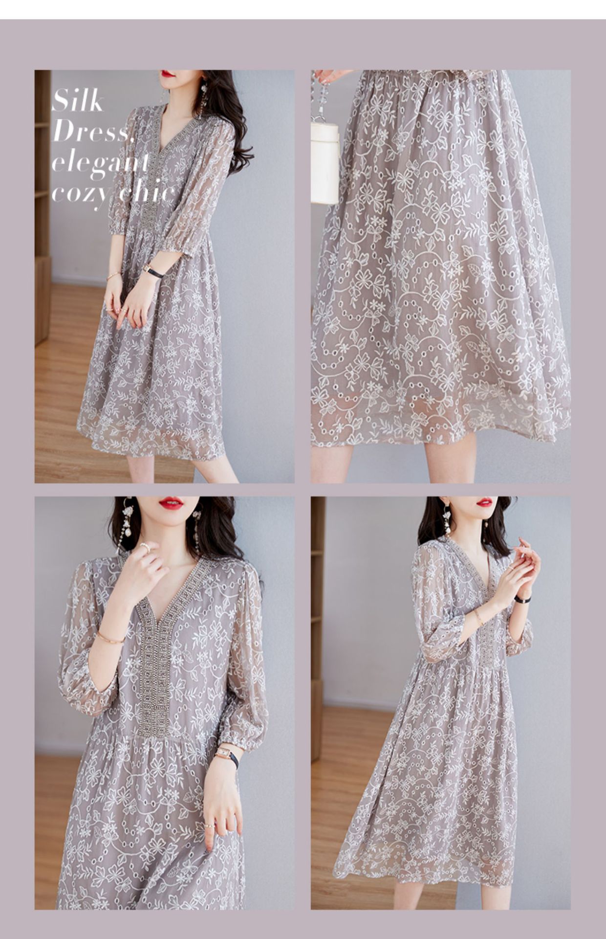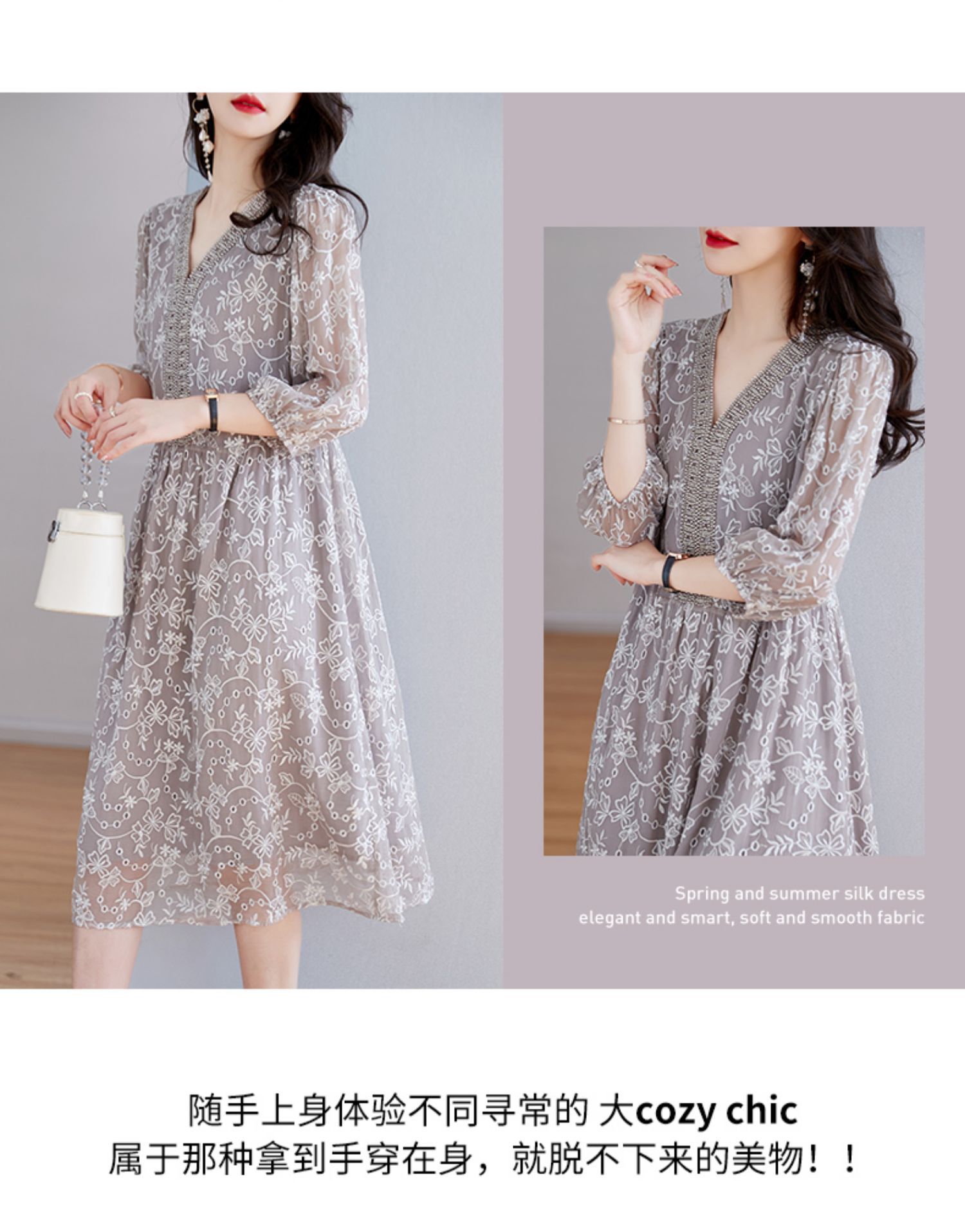 OSL 3513重工刺绣桑蚕丝连衣裙V领气质真丝裙