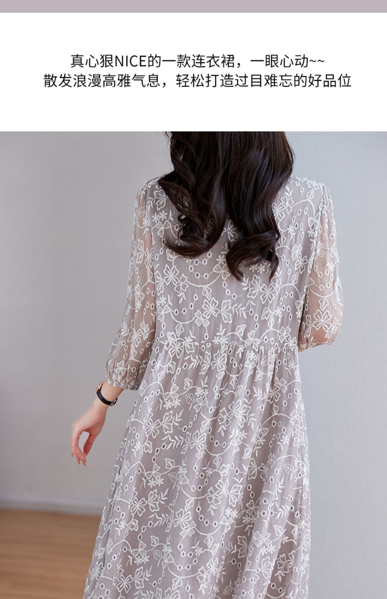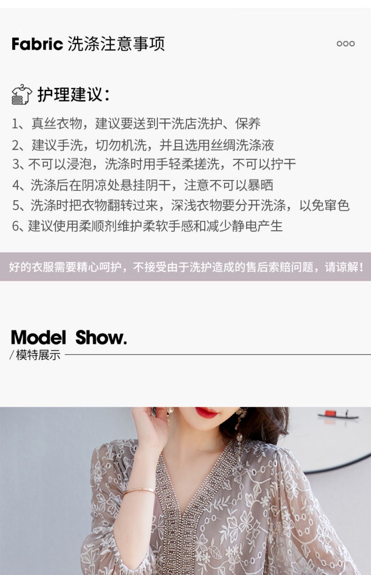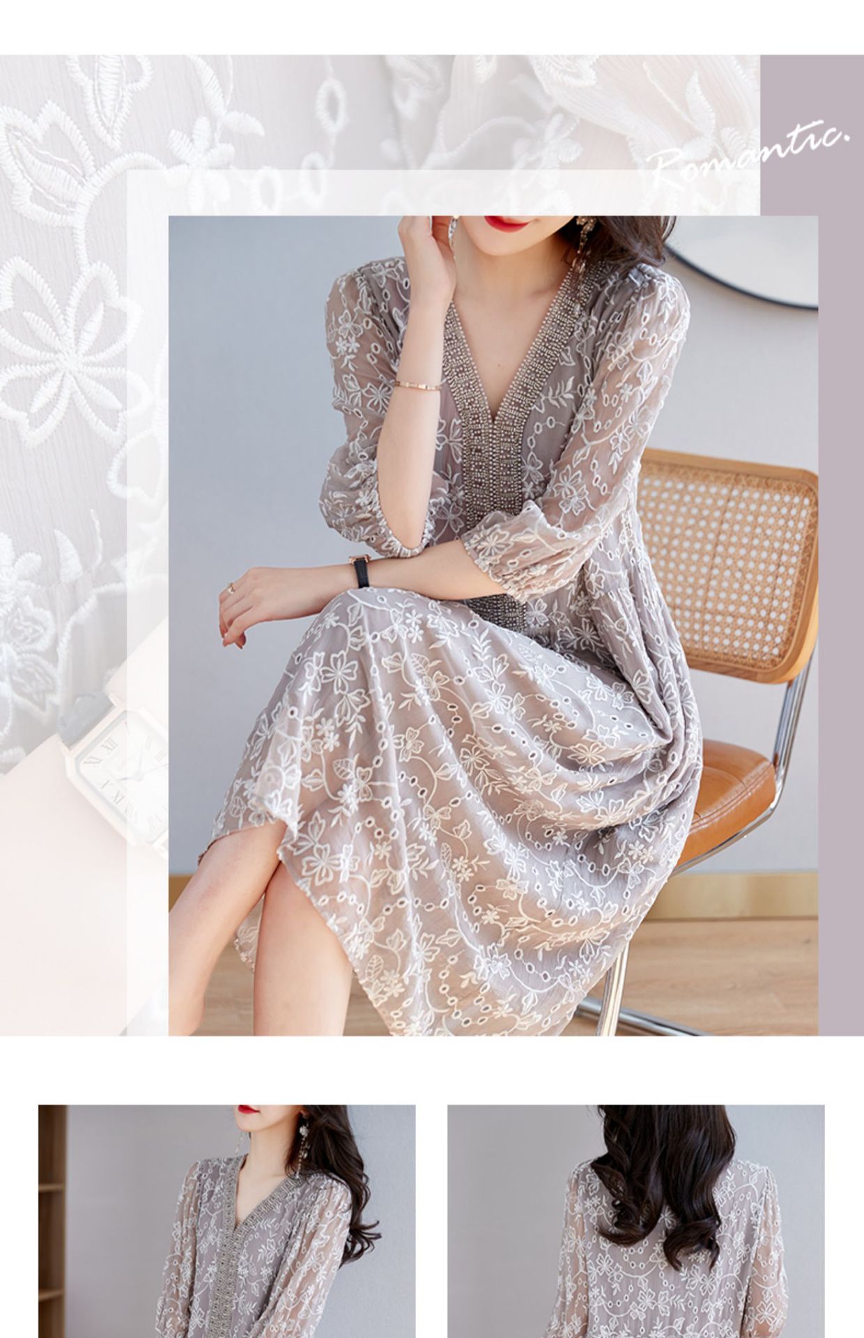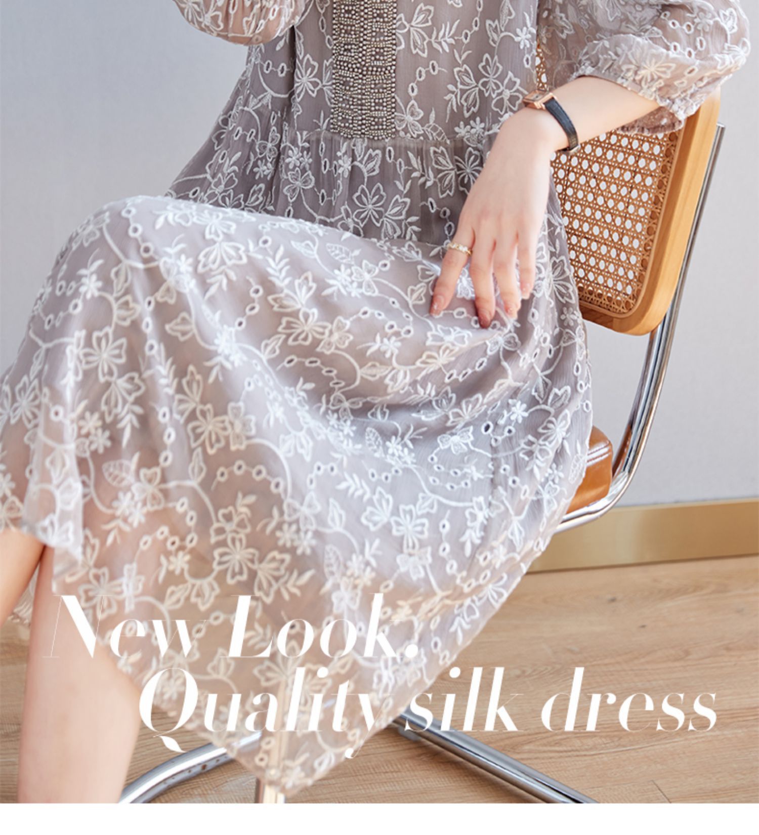 OSL 3513重工刺绣桑蚕丝连衣裙V领气质真丝裙