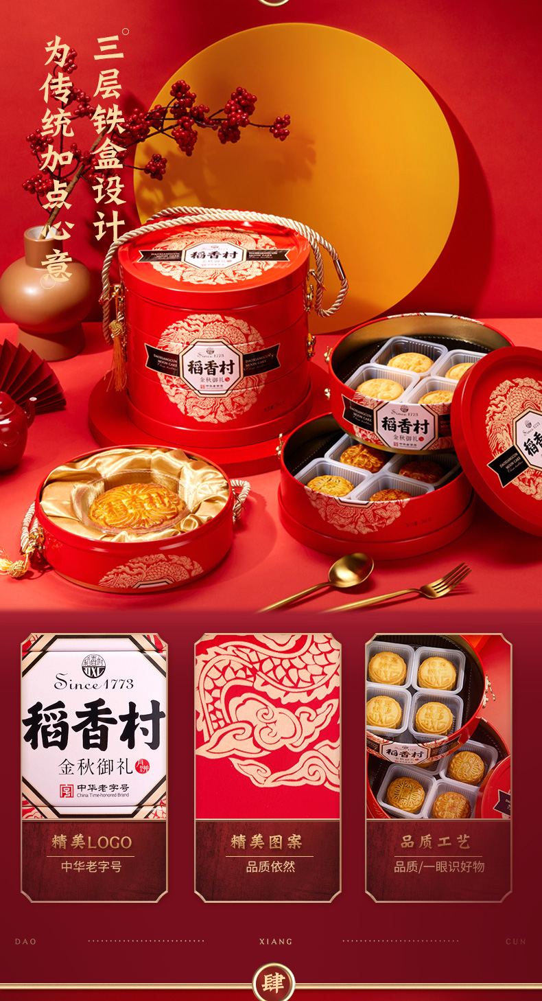 稻香村月饼礼盒金秋御礼广式蛋黄莲蓉多口味组合中秋节送礼团购