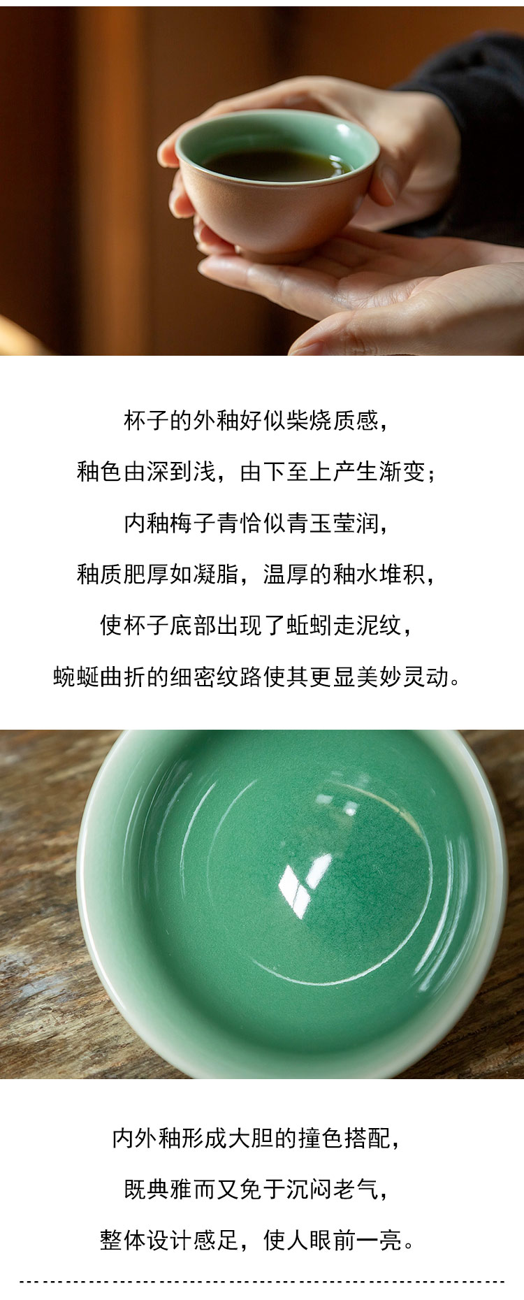 茶香记 龙泉青瓷双色内外釉品杯60ml圆子杯陶瓷茶杯撞色清雅品杯