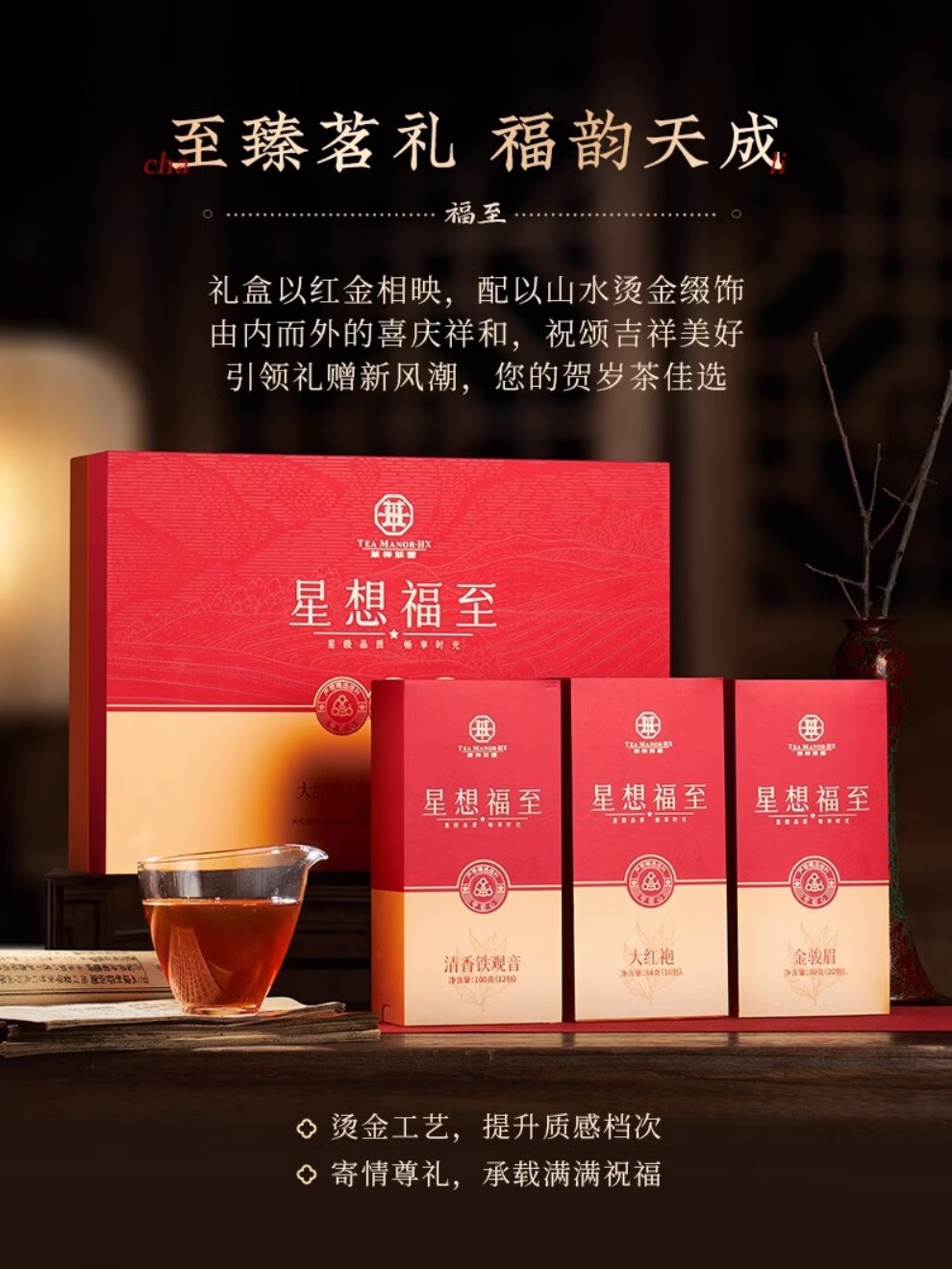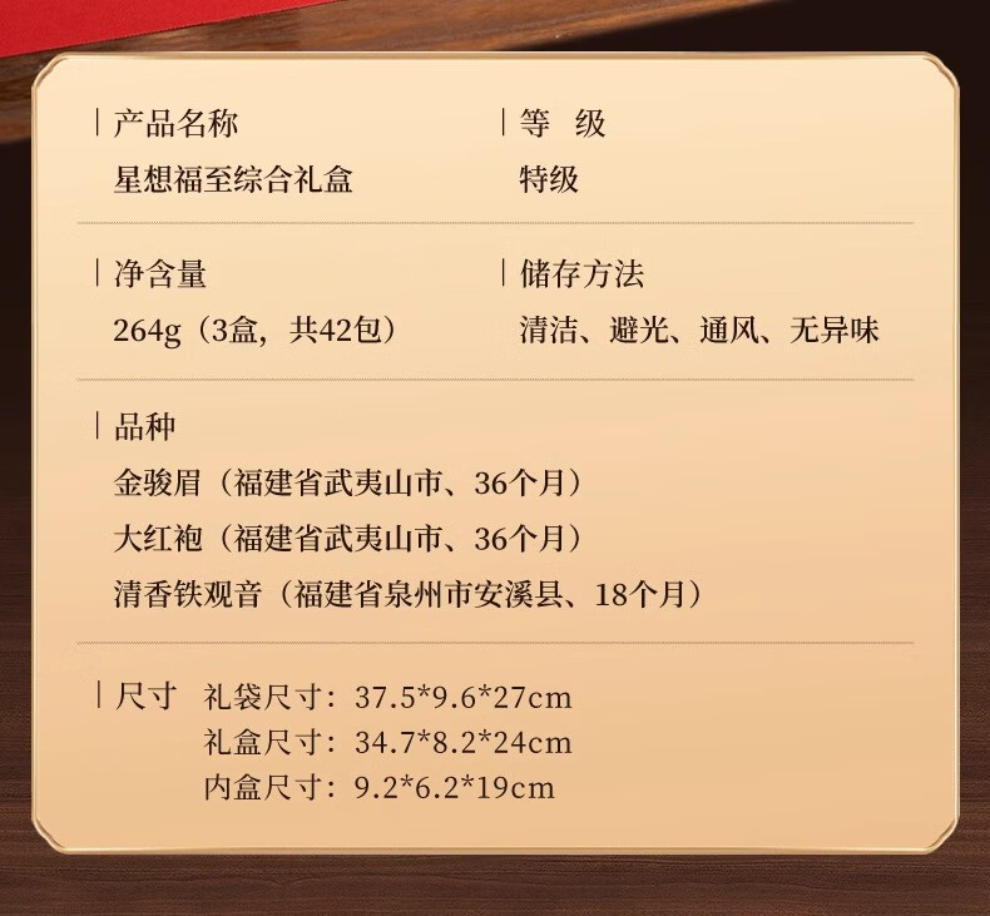 华祥苑茶叶礼盒 红茶特级组合金骏眉铁观音 福至264g年货送礼新年礼物