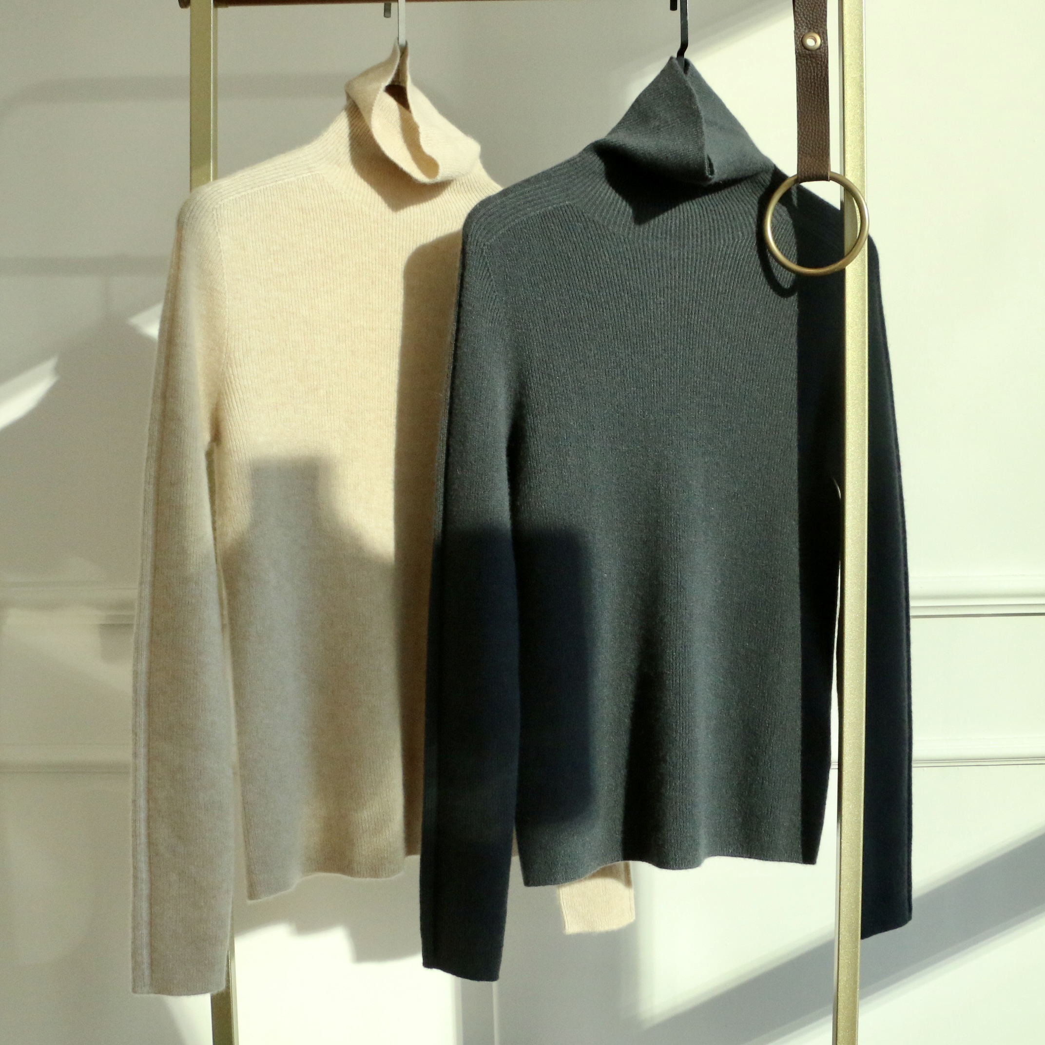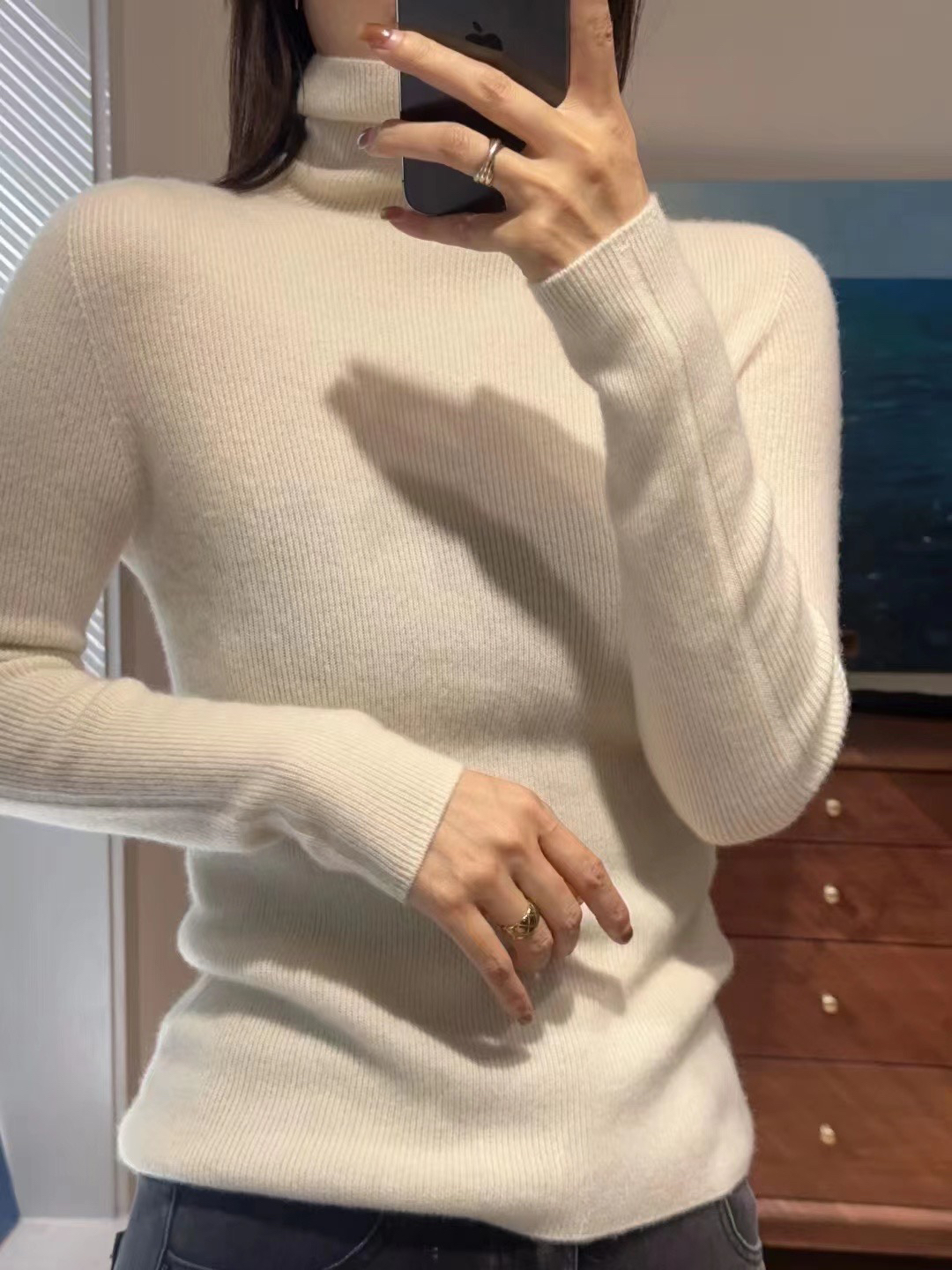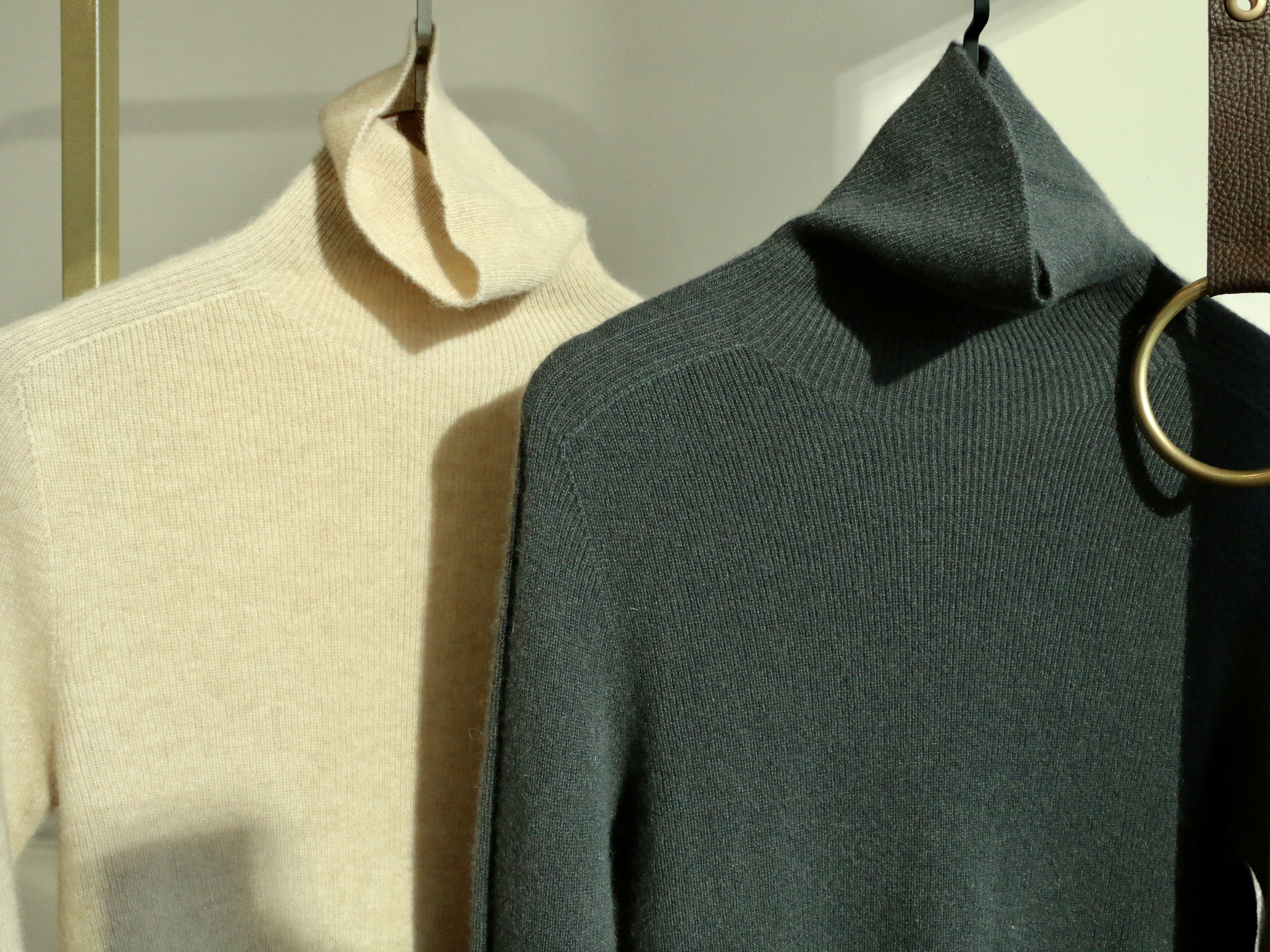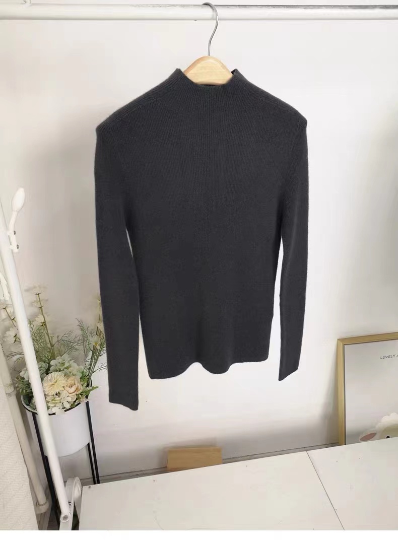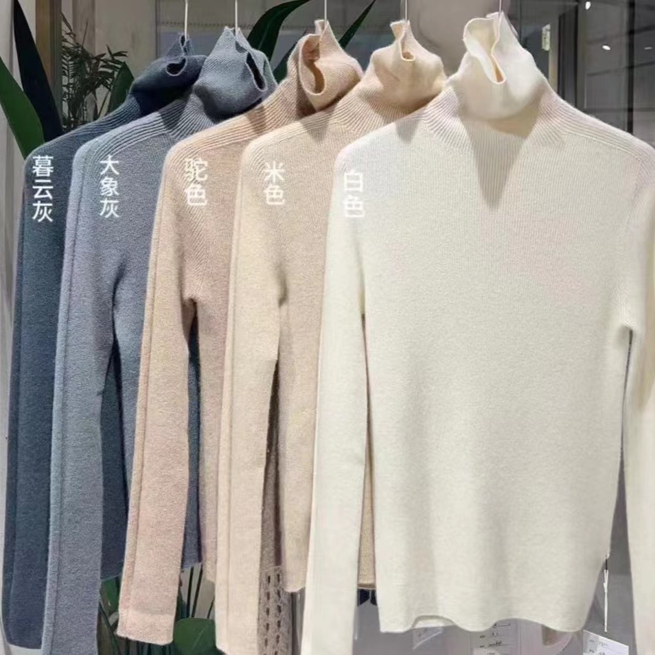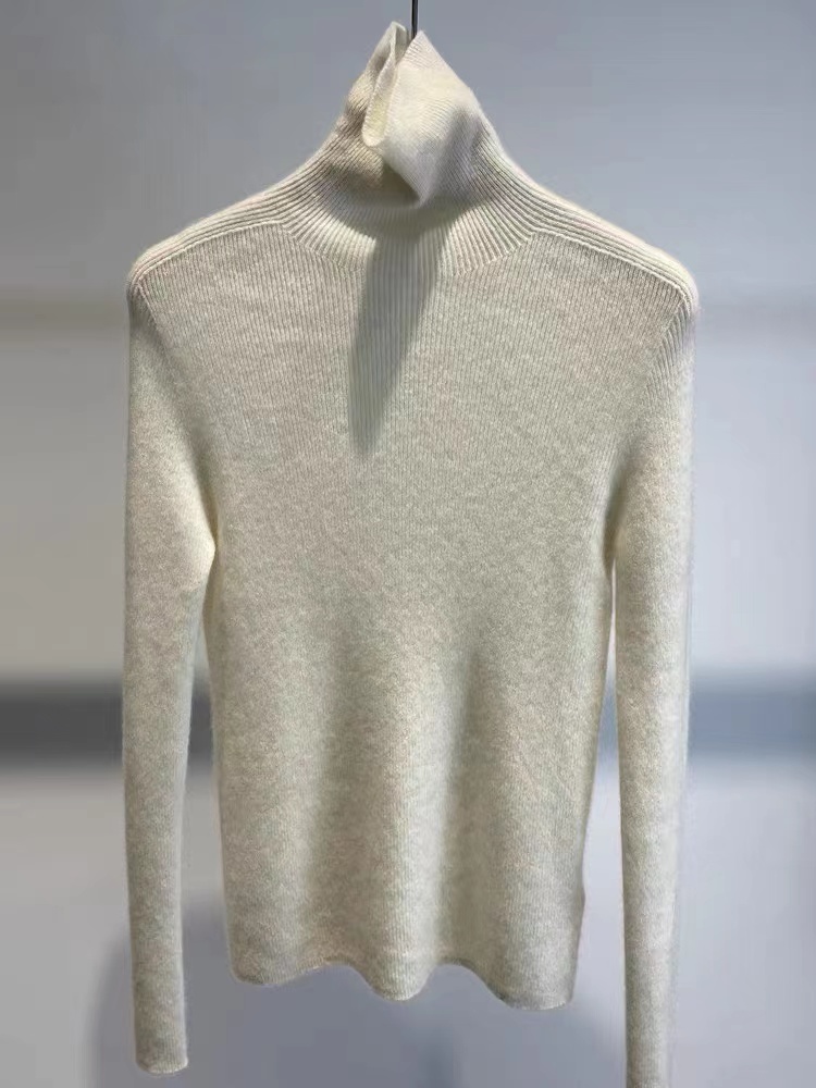 【à perles】厚款半高领,堆堆领无缝一体羊绒衫 弹力大修身不紧身【现货】