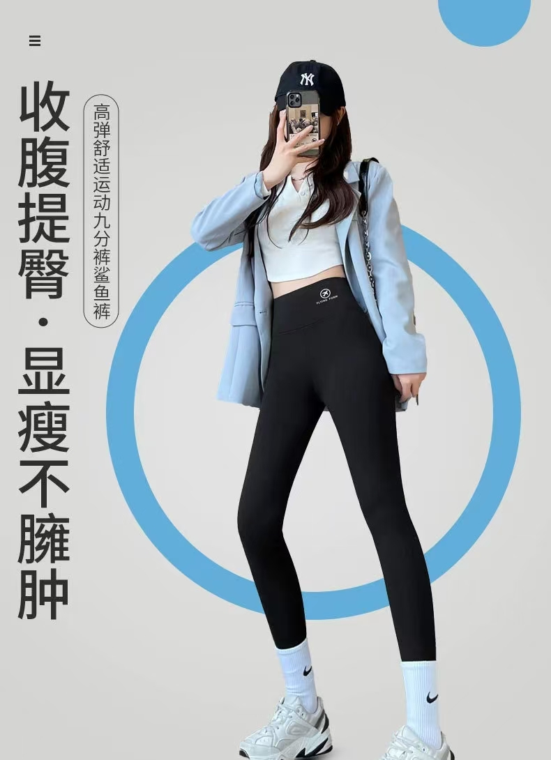 鲨鱼裤 鲨鱼裤女外穿春秋款收腹提臀裤芭比裤瑜伽薄款打底裤瘦腿