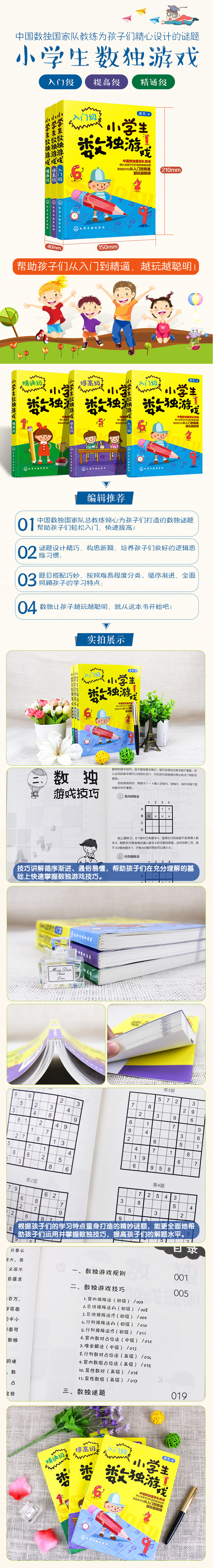 数独是一种规则简单却趣味无穷的数字游戏,可以有效地锻炼大脑的反应能力和逻辑推理能力。本书精选200余例数独游戏汇编成册,按照难易程度分类、循序渐进,全面照顾孩子的阅读需求。 本书所选题目难度适中且搭配合理,容易给孩子带来成就感,同时题目构思新颖、趣味性强,能很好的调动孩子的积极性,让孩子在本书中尽情体味数独带来的乐趣。