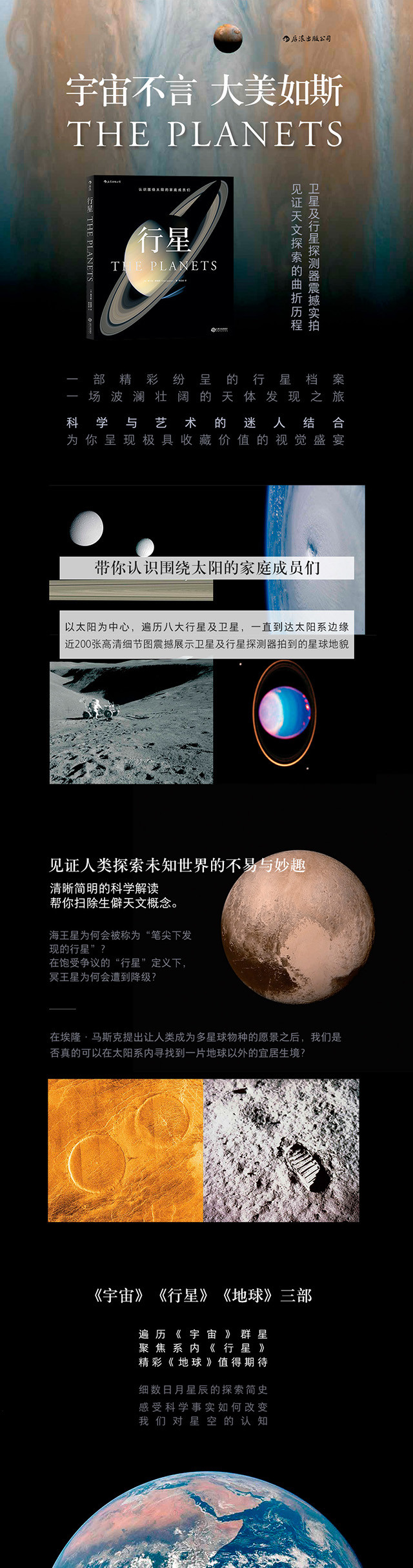 没有艰深的物理公式,没有复杂的数学推导,《行星》通过清晰简明的科学解读帮你扫除生僻天文概念。一部精彩纷呈的行星档案,一场波澜壮阔的天体发现之旅,科学与艺术的迷人结合为你呈现极具收藏价值的视觉盛宴。