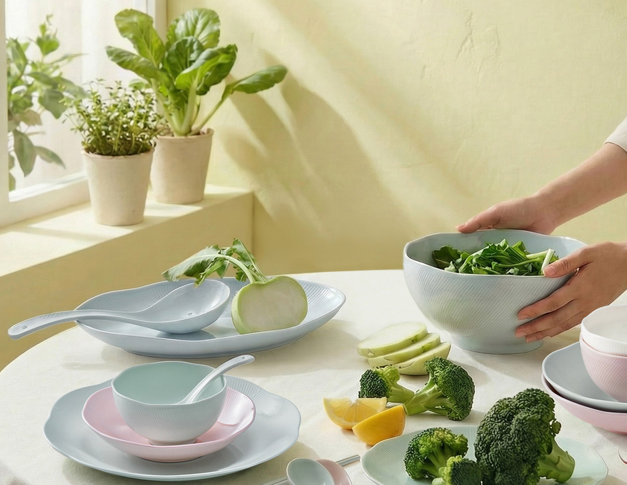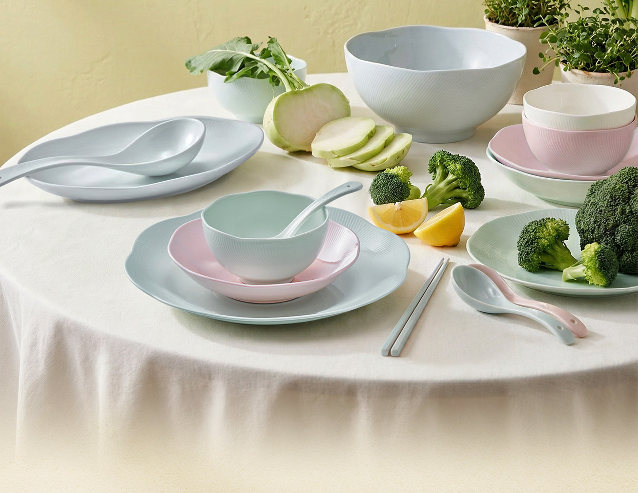 【玛戈隆特】荷塘月色餐具套装骨瓷奶油风简约家用结婚送礼乔迁礼物装