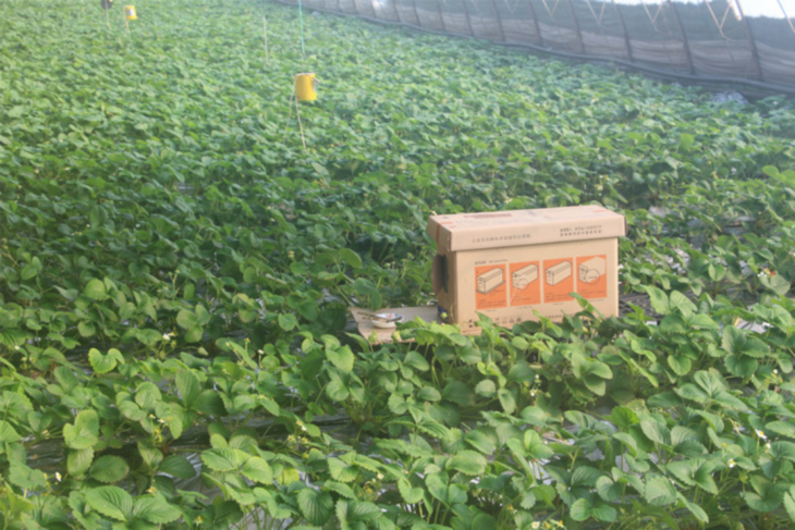 草莓在种植过程中使用羊粪做底肥,使用酵素追肥,使用黄板防虫,释放天敌小绥螨捕食红蜘蛛,蜜蜂授粉,今年也做了有机认证。