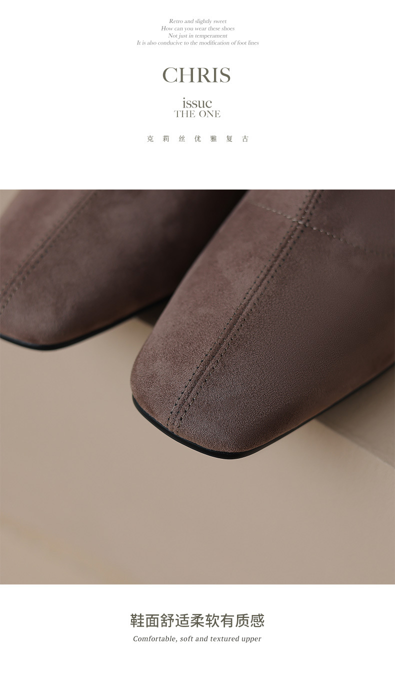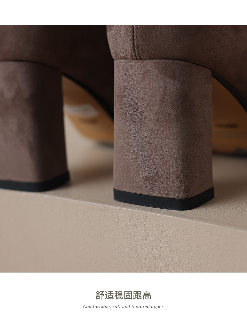 【预售5天】气质温柔风粗跟小方头裸靴小短靴冬季新款羊皮韩版时装靴DQ&DQ6805W
