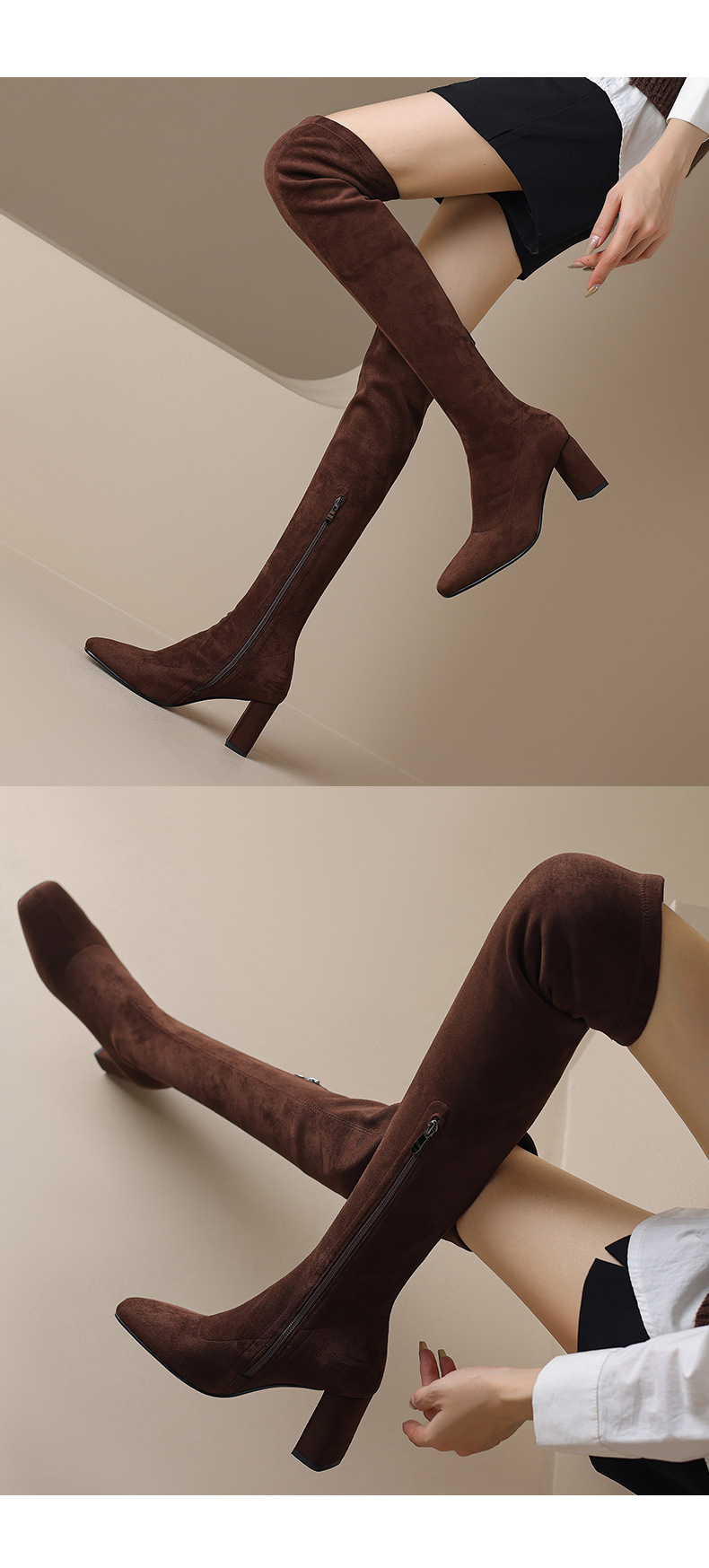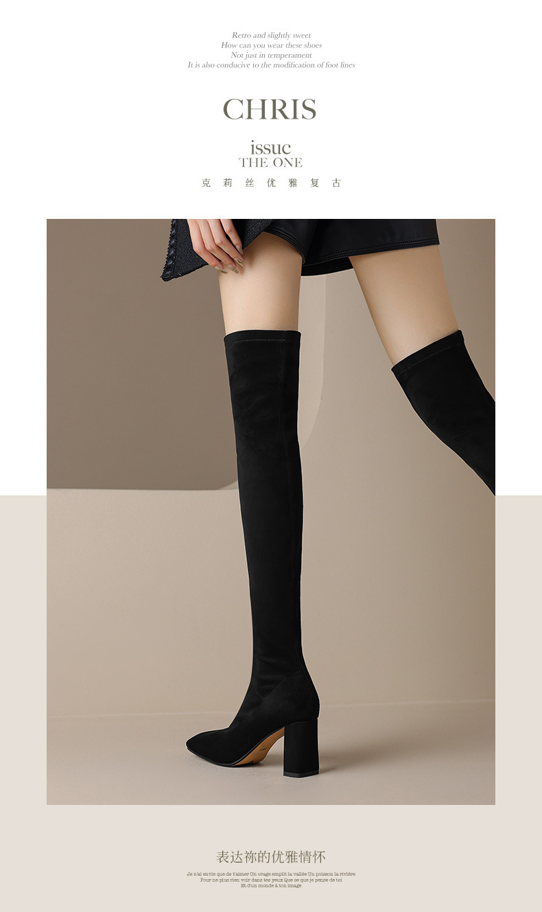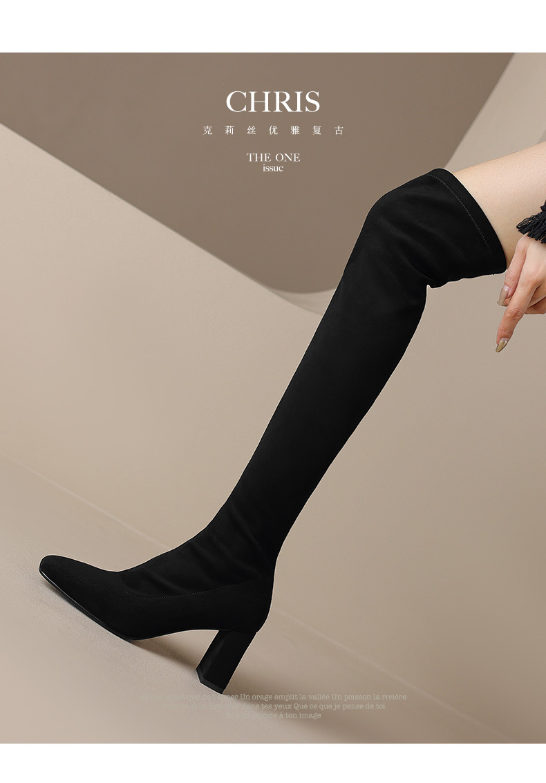 【预售5天】过膝长靴女高筒,尖头高跟鞋粗跟靴力长筒靴HB-Z918
