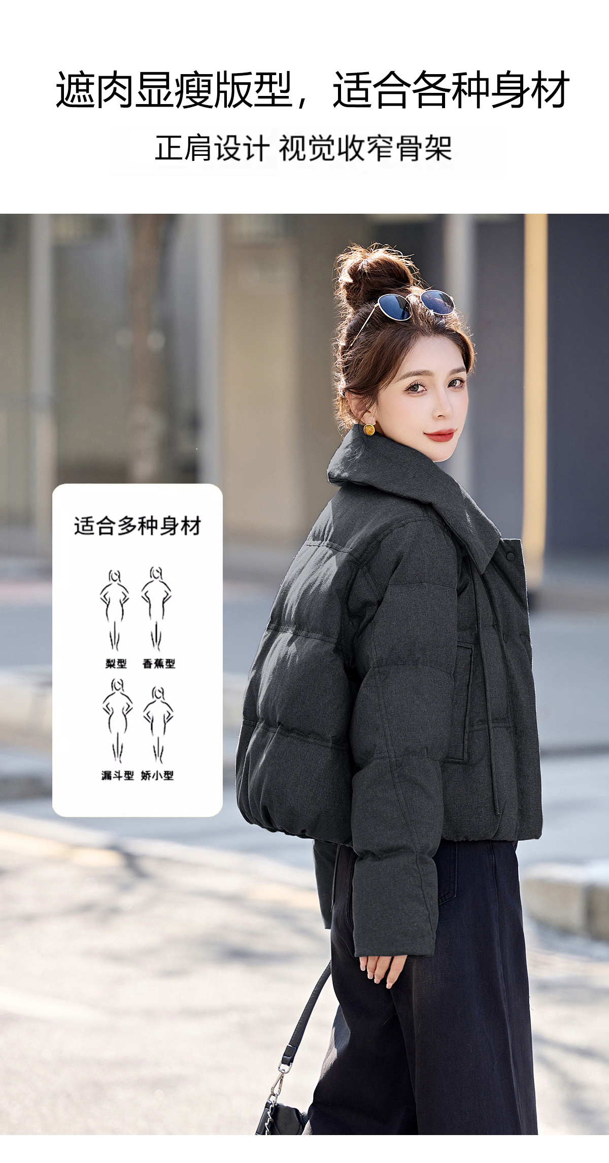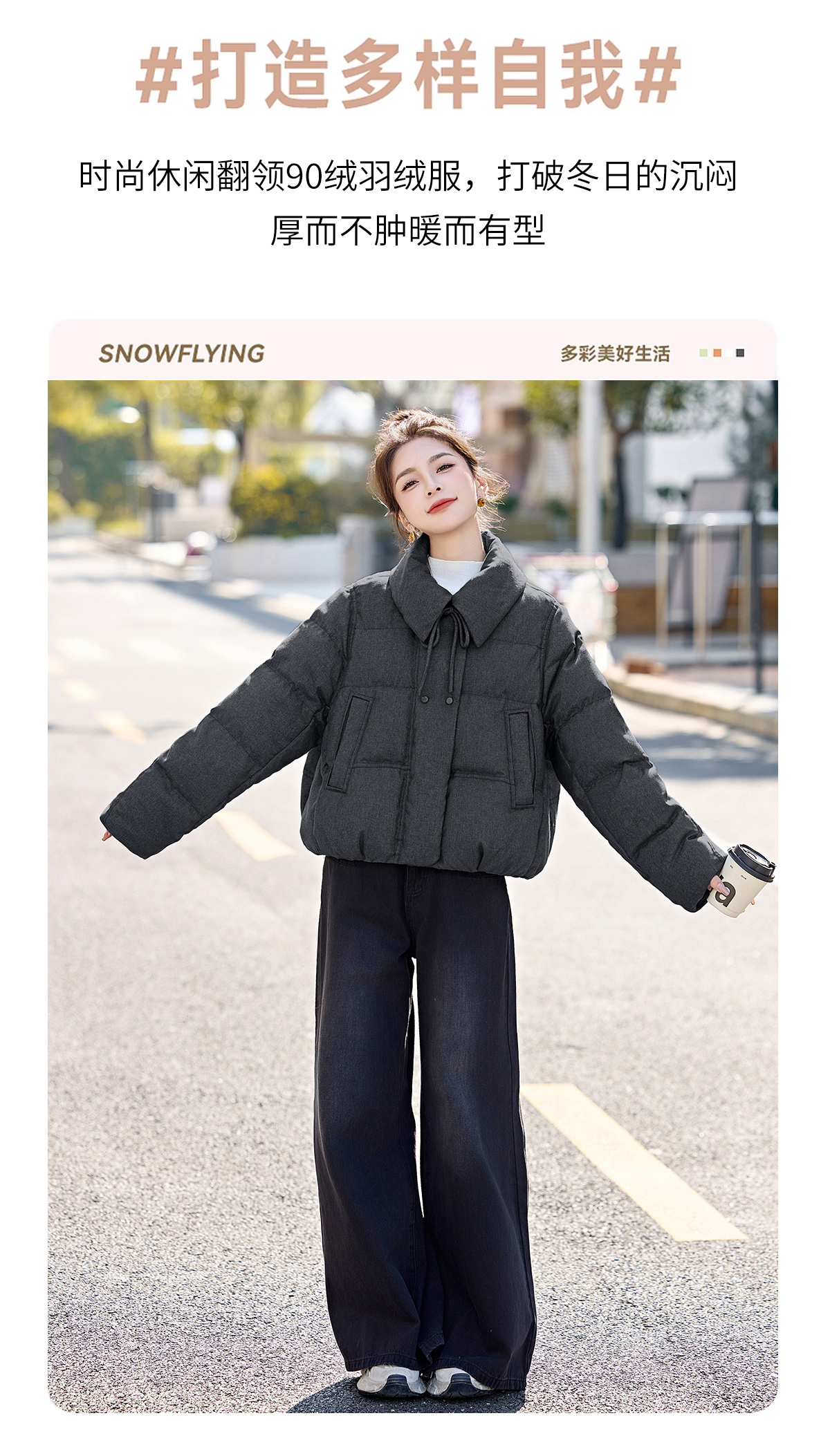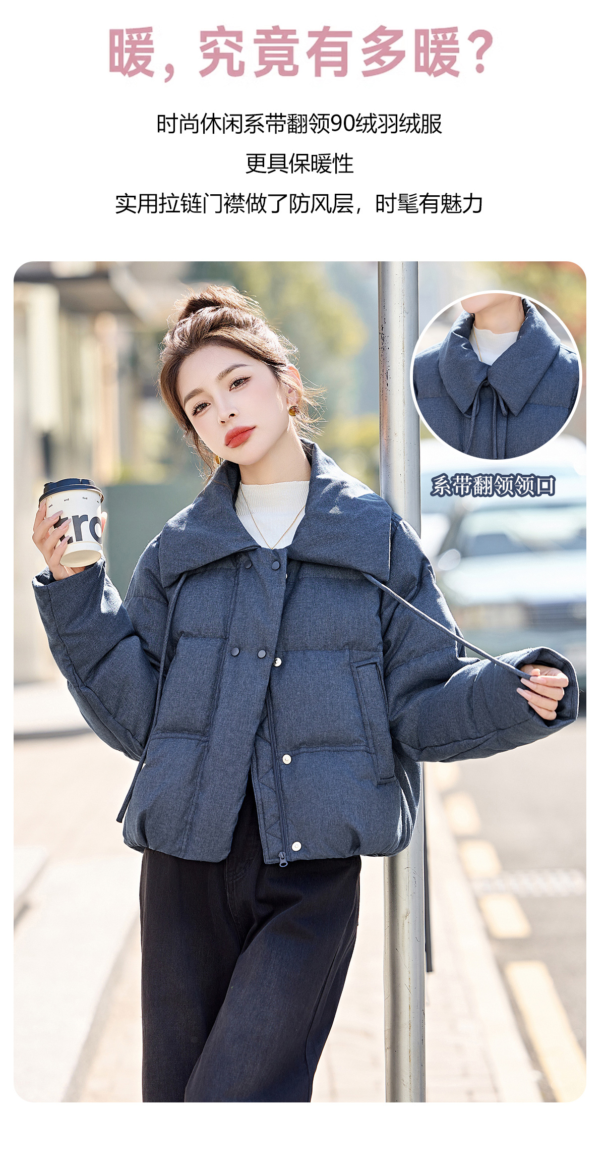 韩系翻领系带短款羽绒服,小个子显瘦洋气超火厚外套HR-MEIQIN59188