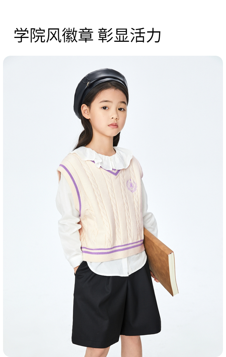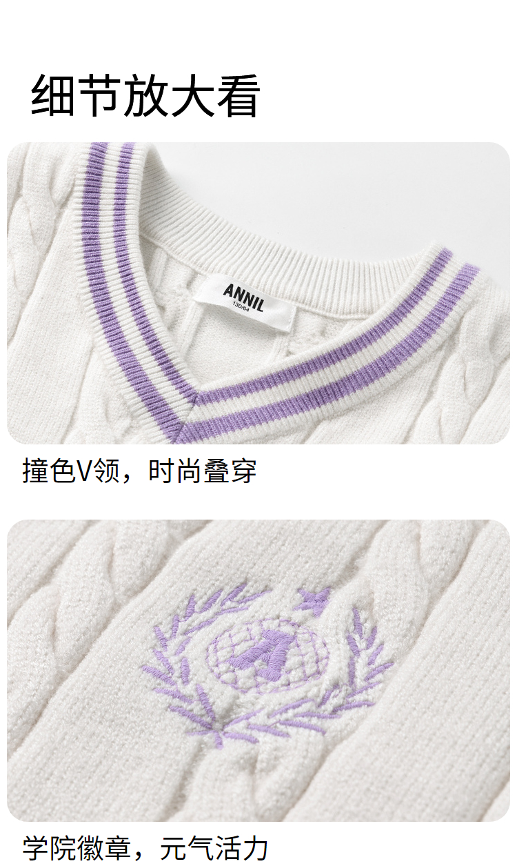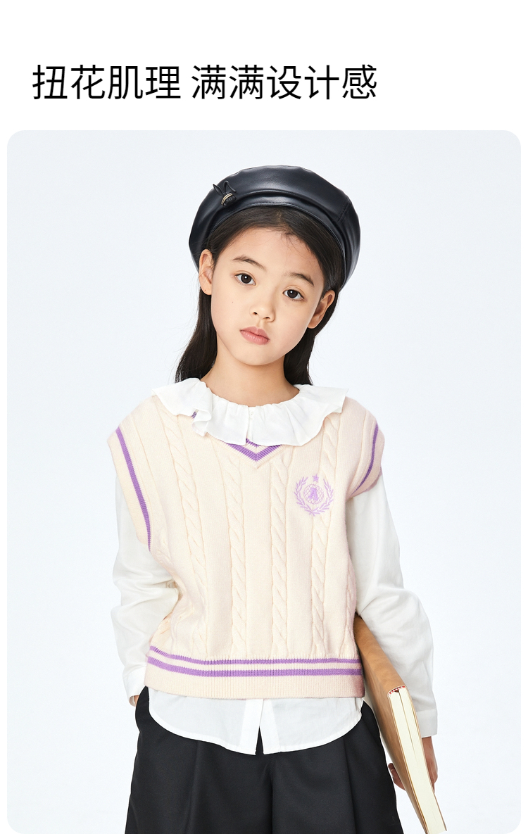 【实体店同款】女童装毛衣背心秋新款学院针织衫安奈儿童装AG332524