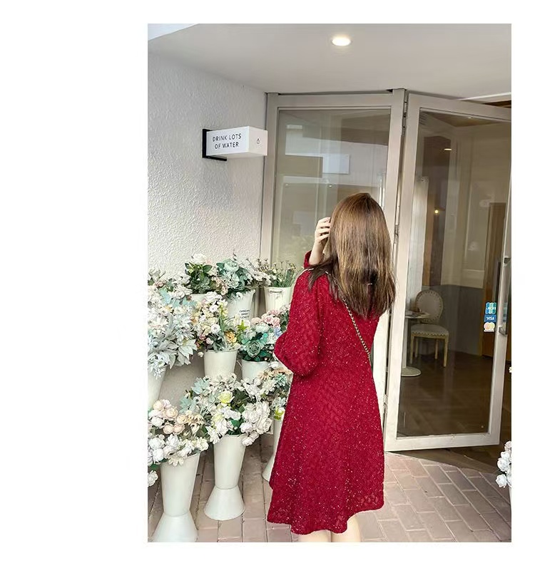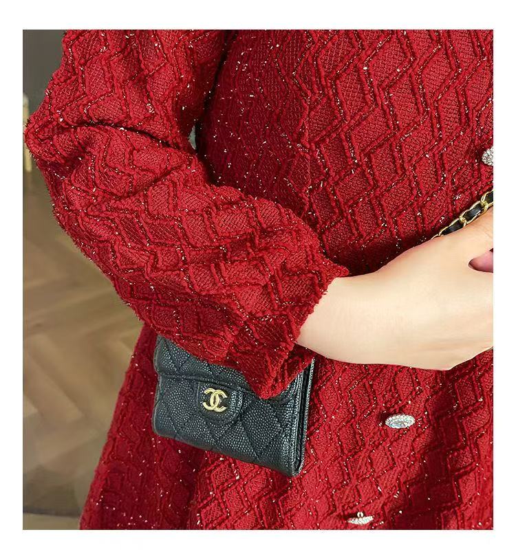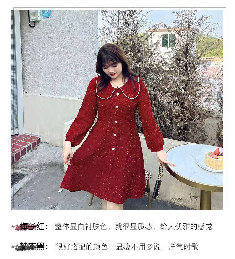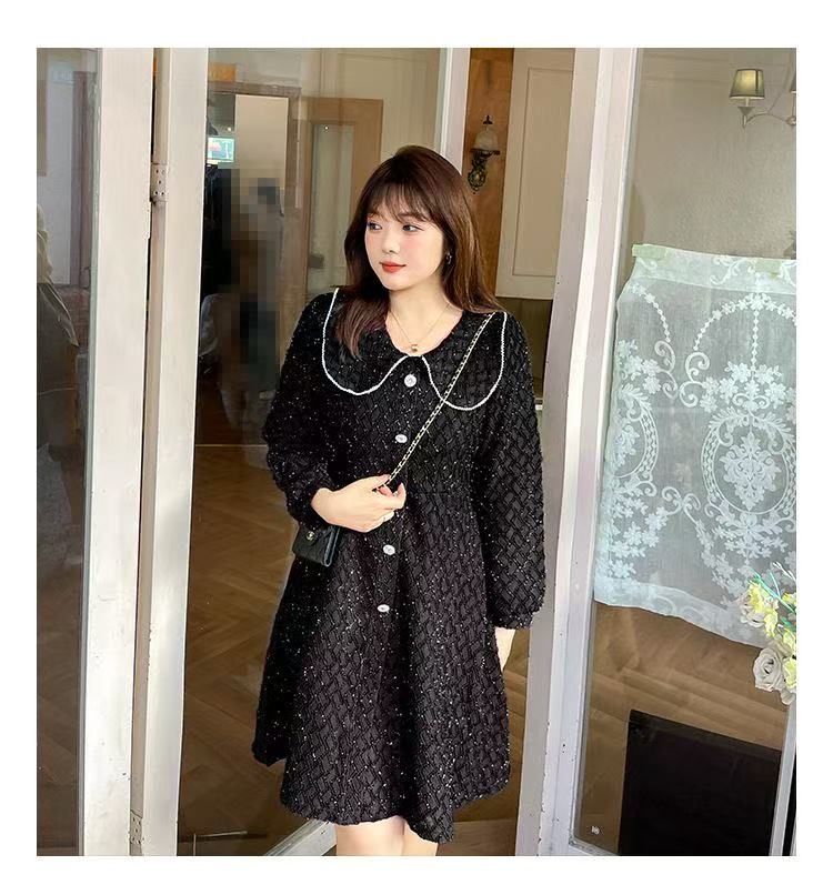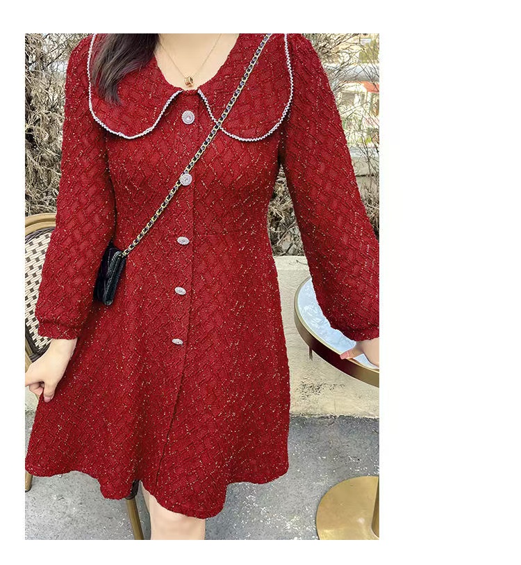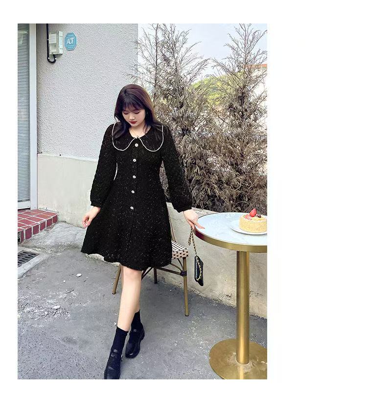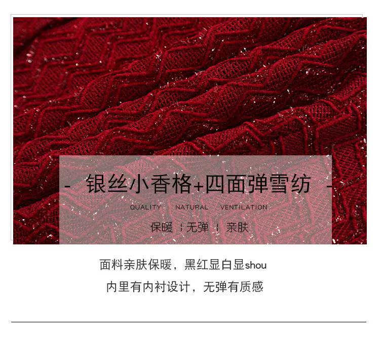 超值购【诗铭洛可】W571连衣裙春秋小香风珍珠翻领亮丝连衣裙C1-1