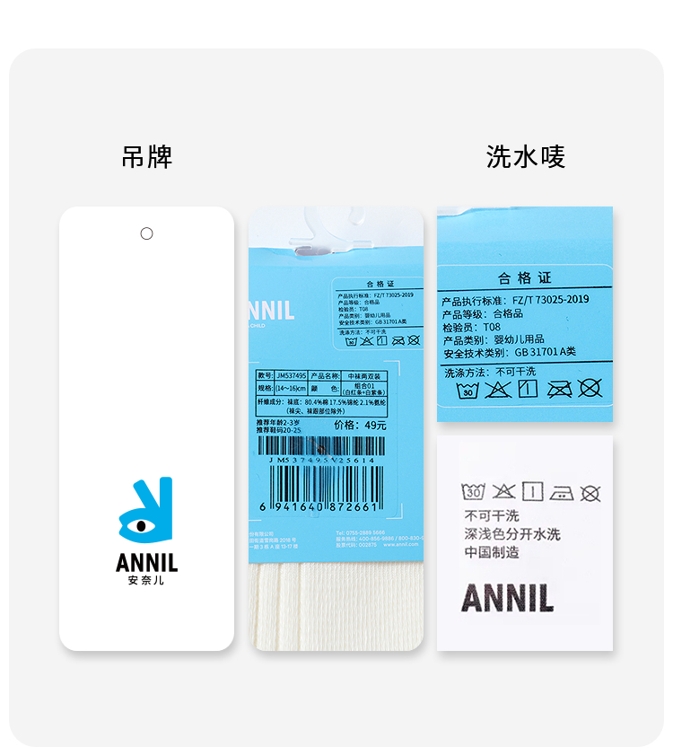 【专区任选2件49元】男女童中袜两双装秋季新款实体店同款安奈儿童装JM537495