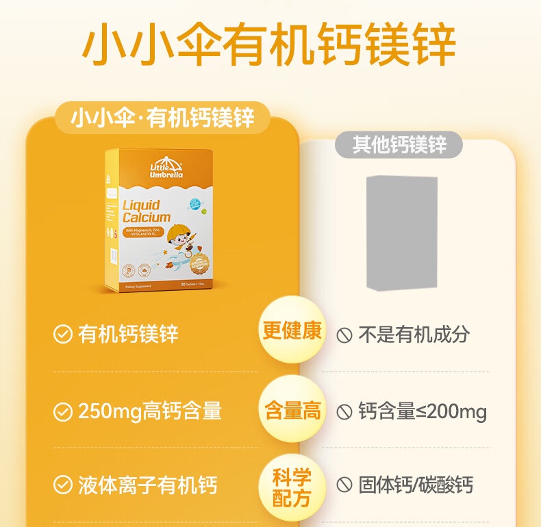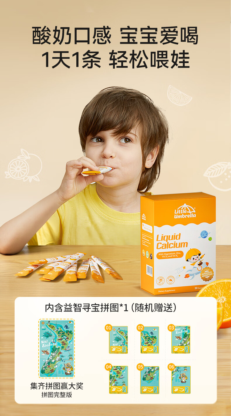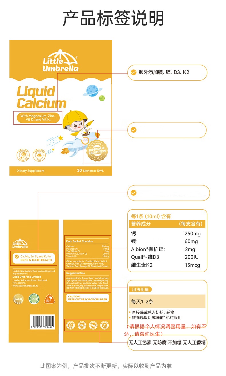 【跨境】新西兰Little Umbrella 小小伞钙镁锌液体钙 10ml*30条/盒 膳食补充剂