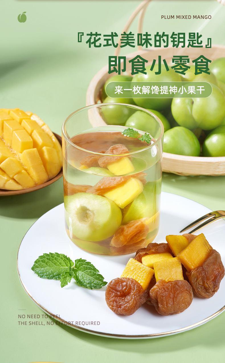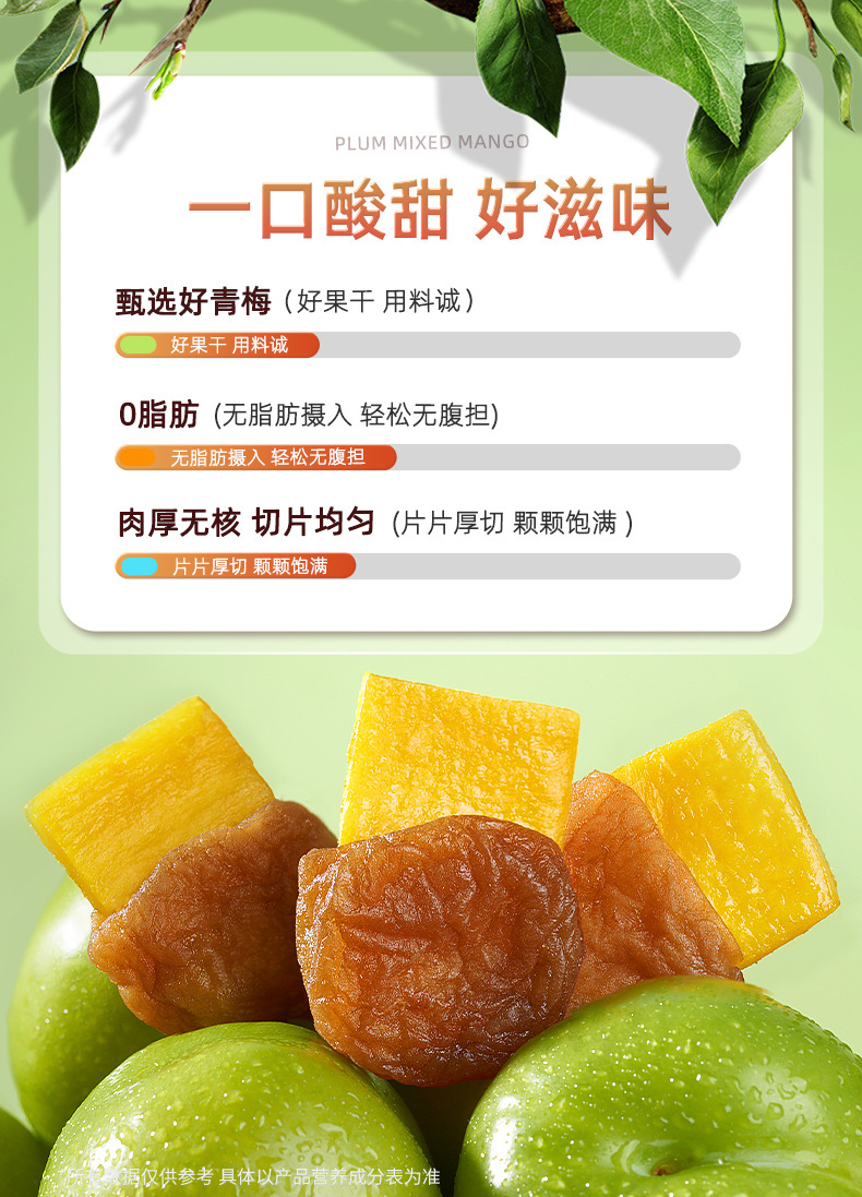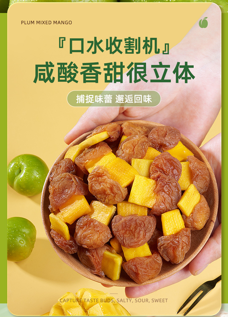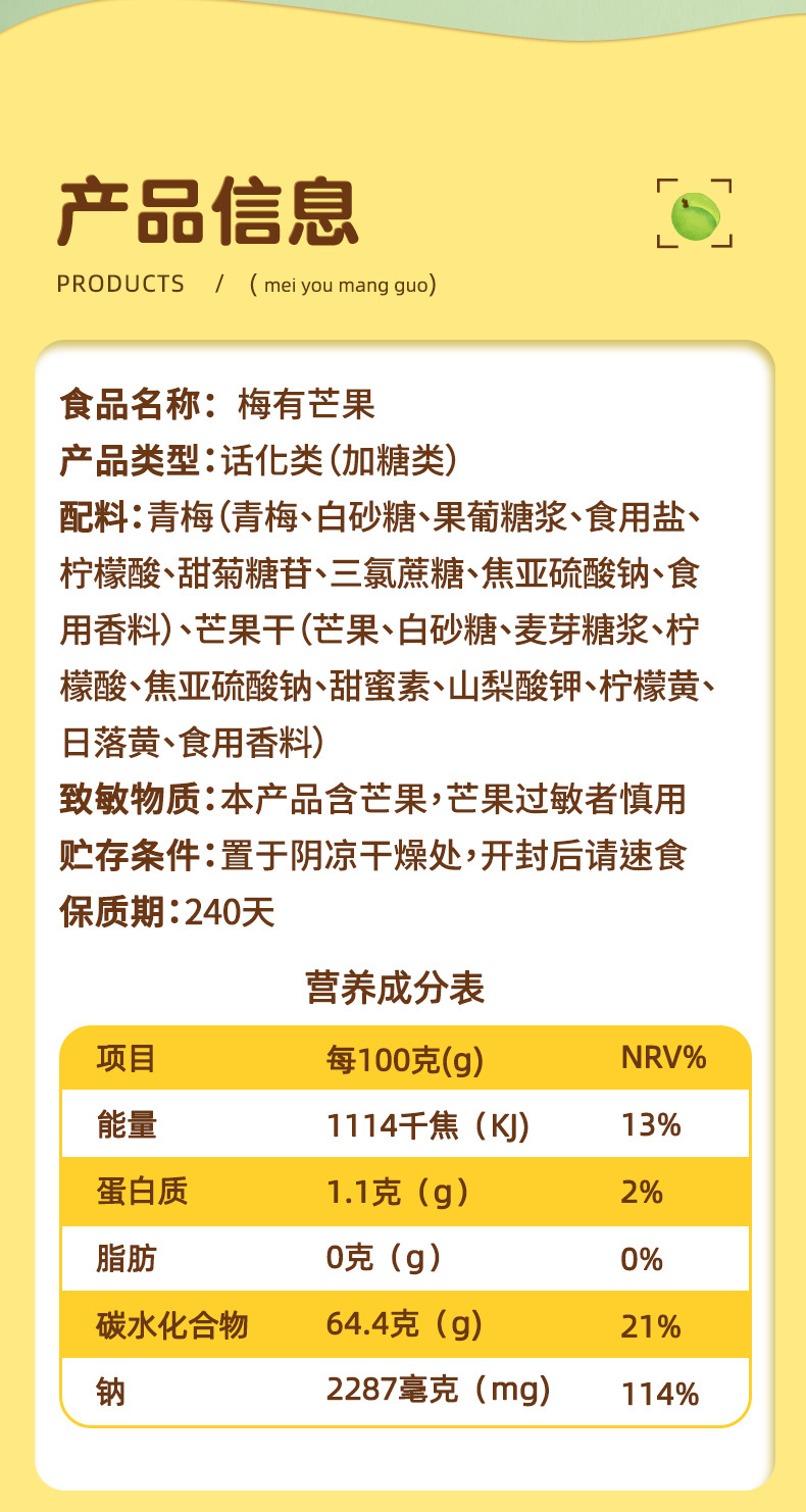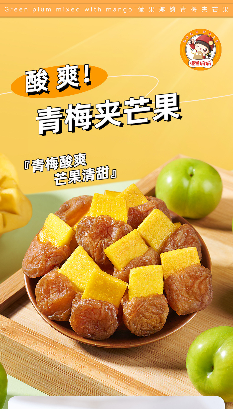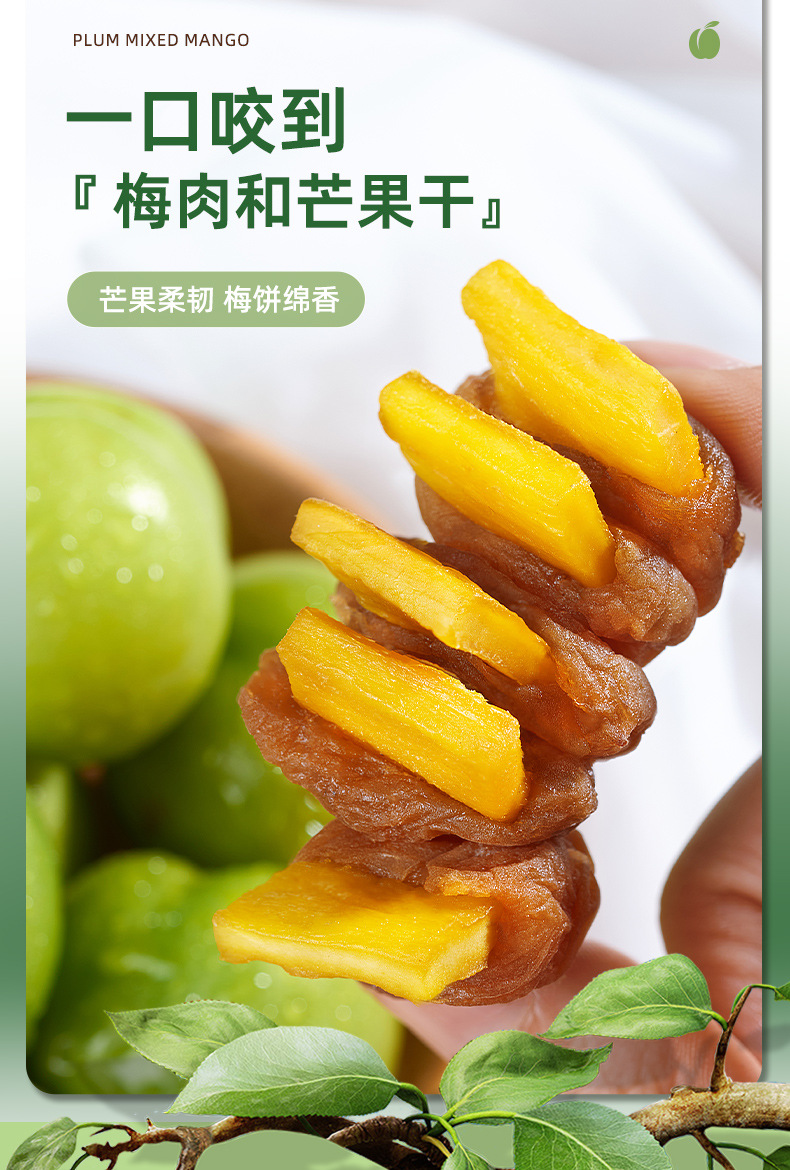 【青梅酸爽,芒果清甜】梅有芒果500g 酸甜话梅干 梅子肉无核 解馋果脯蜜饯 青梅夹芒果干-QQ