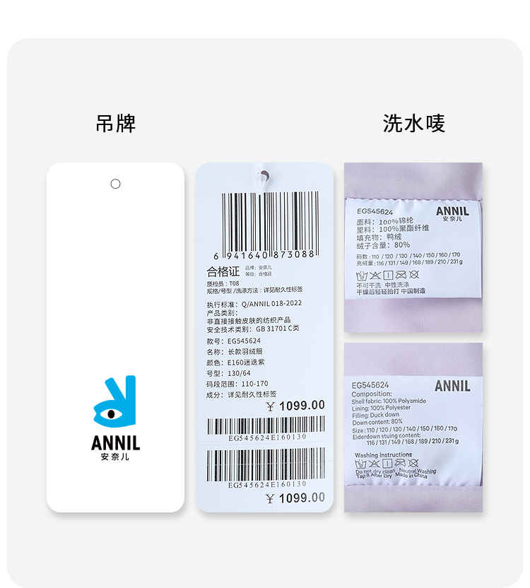 女童长款羽绒服冬季新款安奈儿童装EG545624