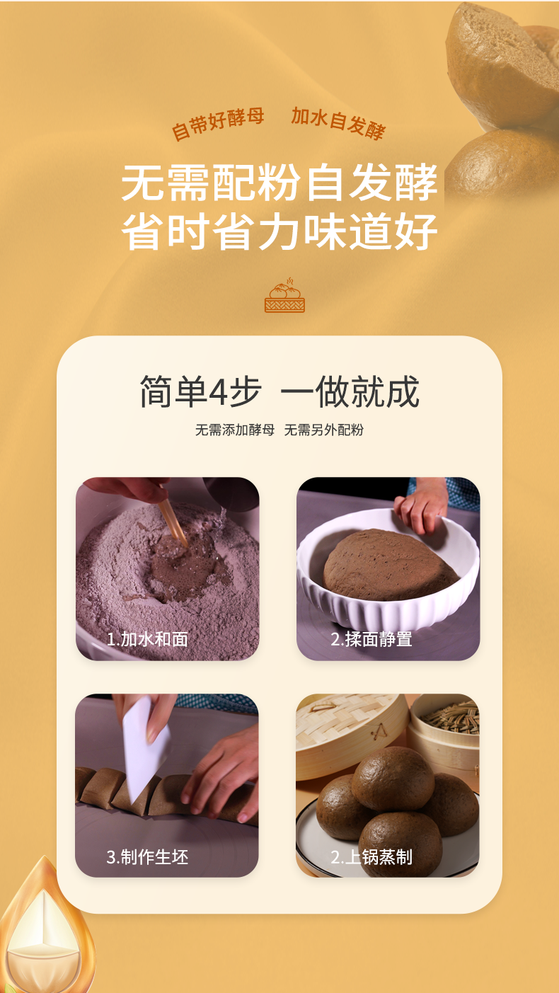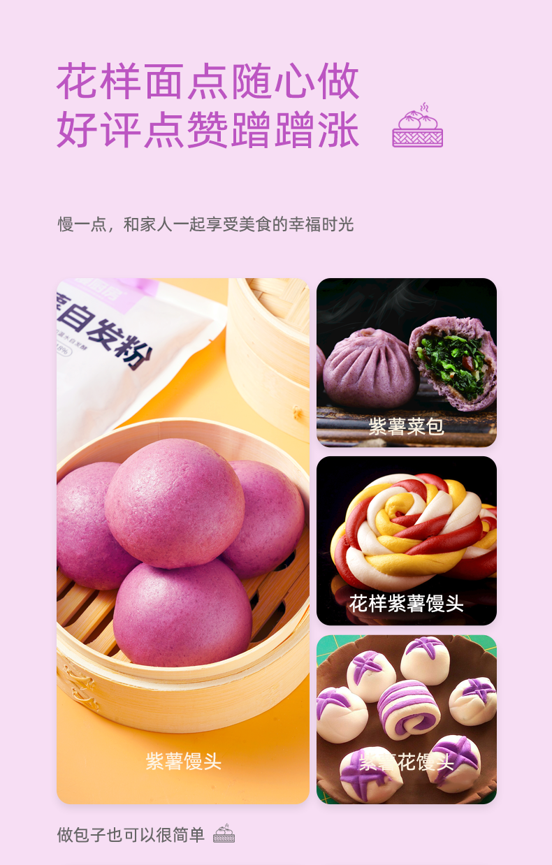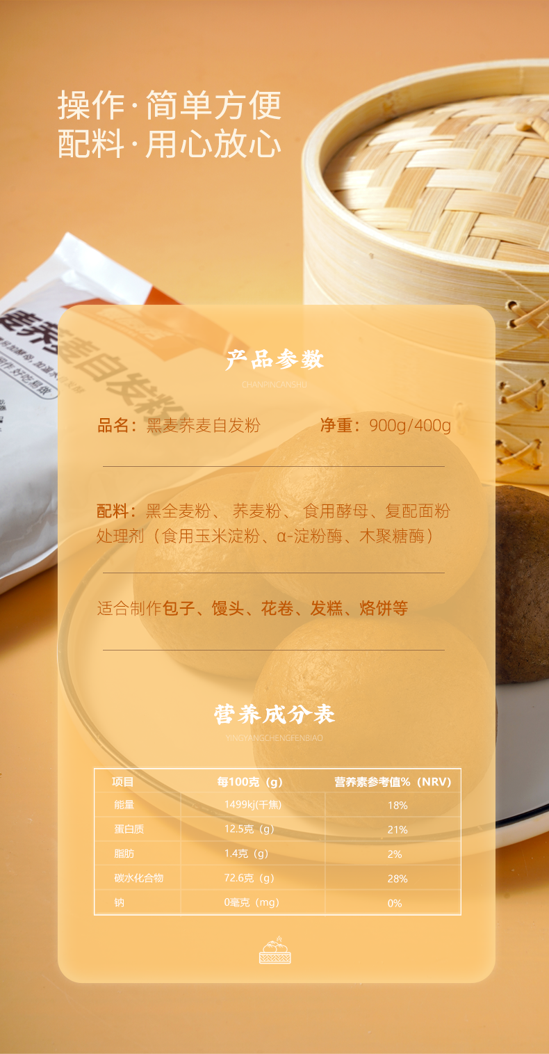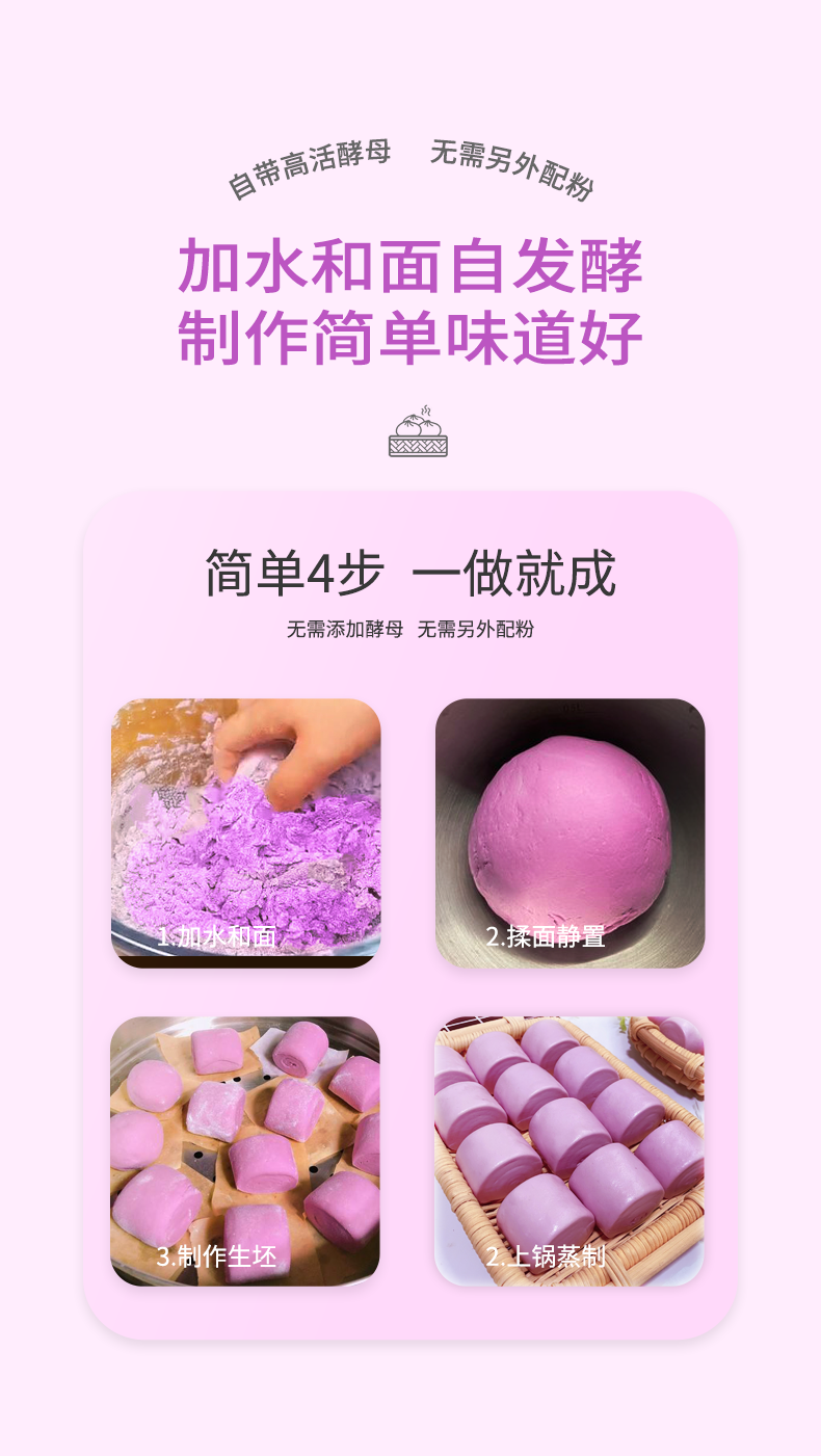 黑麦荞麦自发粉 紫薯自发小麦粉 加水和面自发酵 自带高活酵母 无需另外配粉 一包全搞定