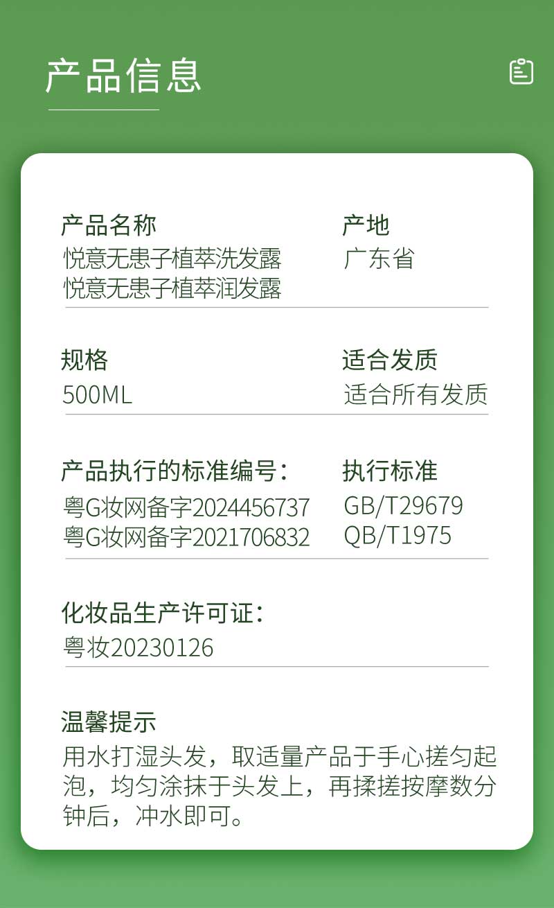 悦意无患子植萃洗发露 / 润发露 /沐浴露