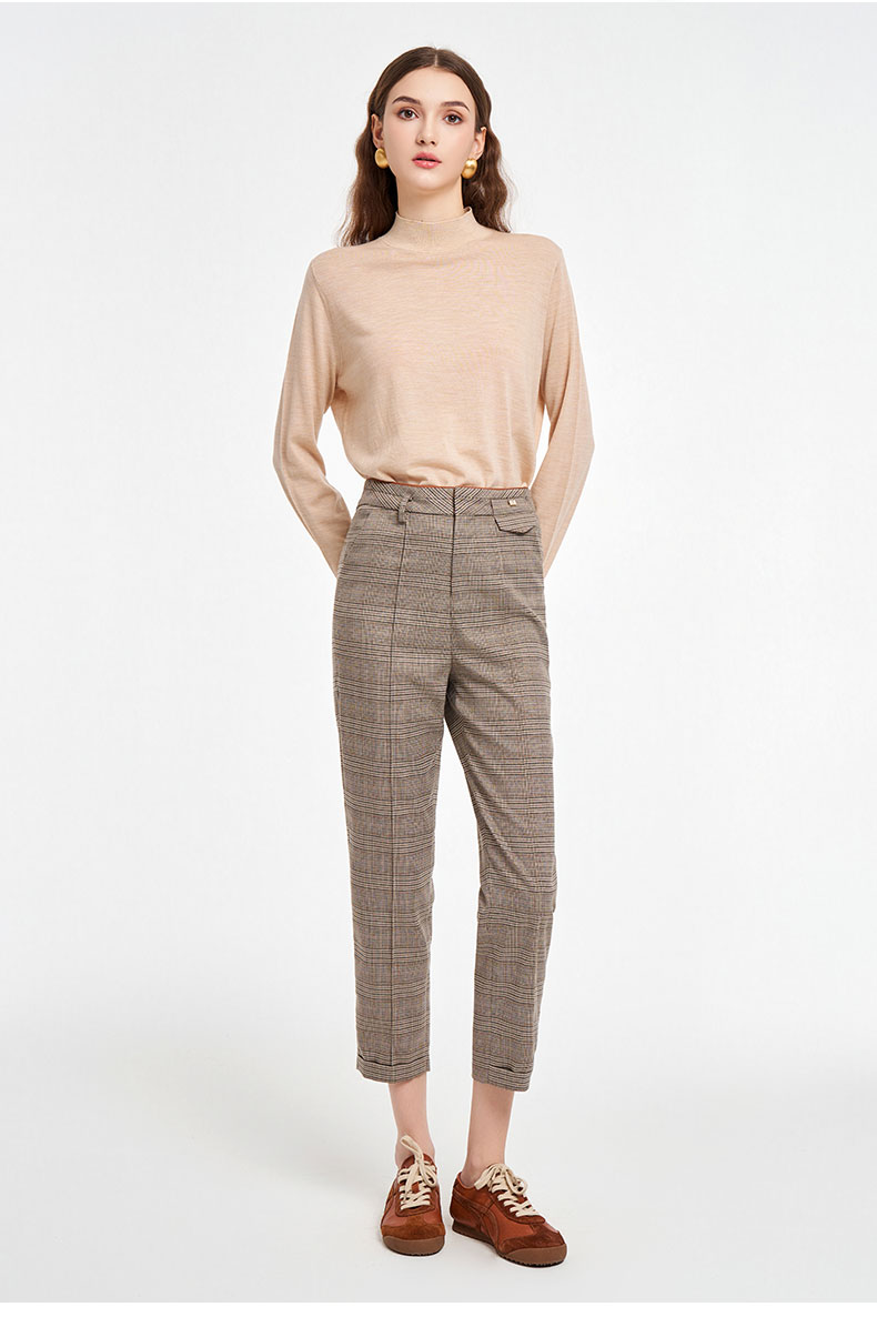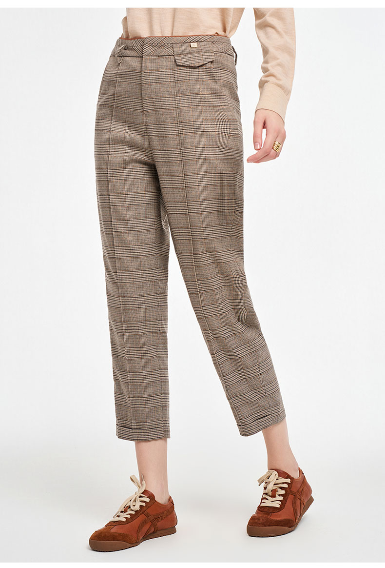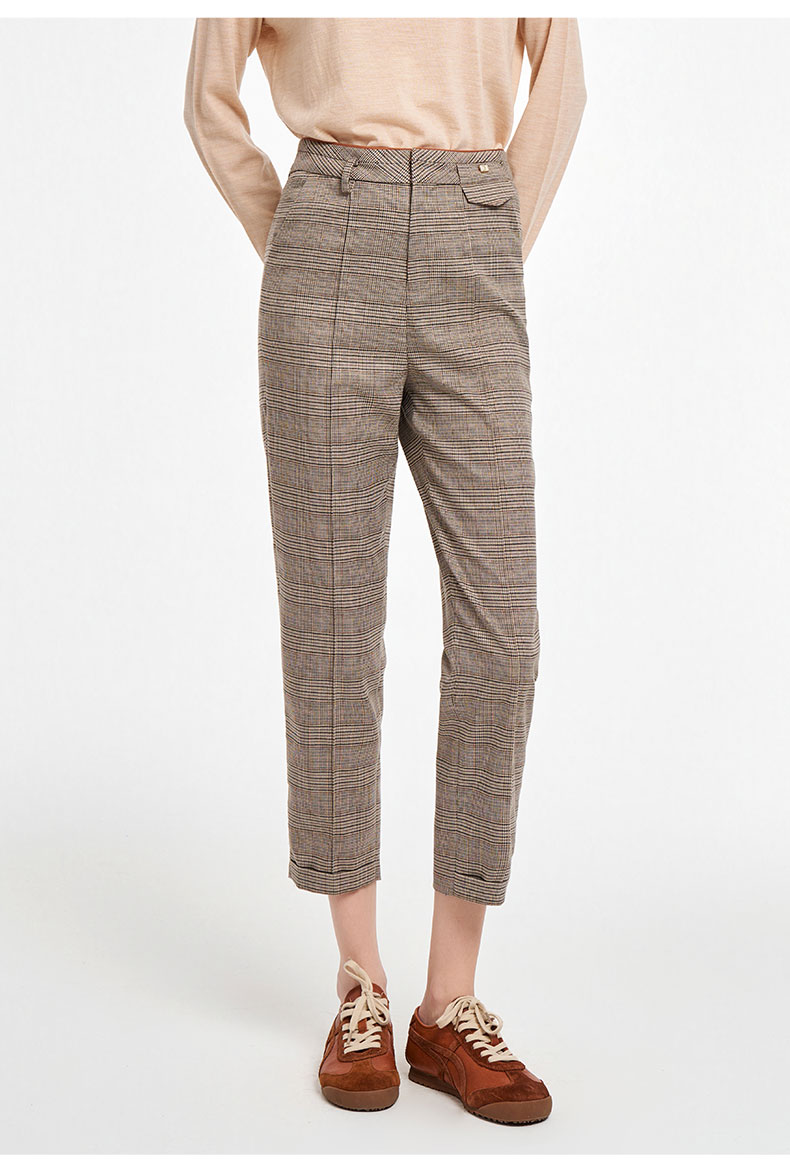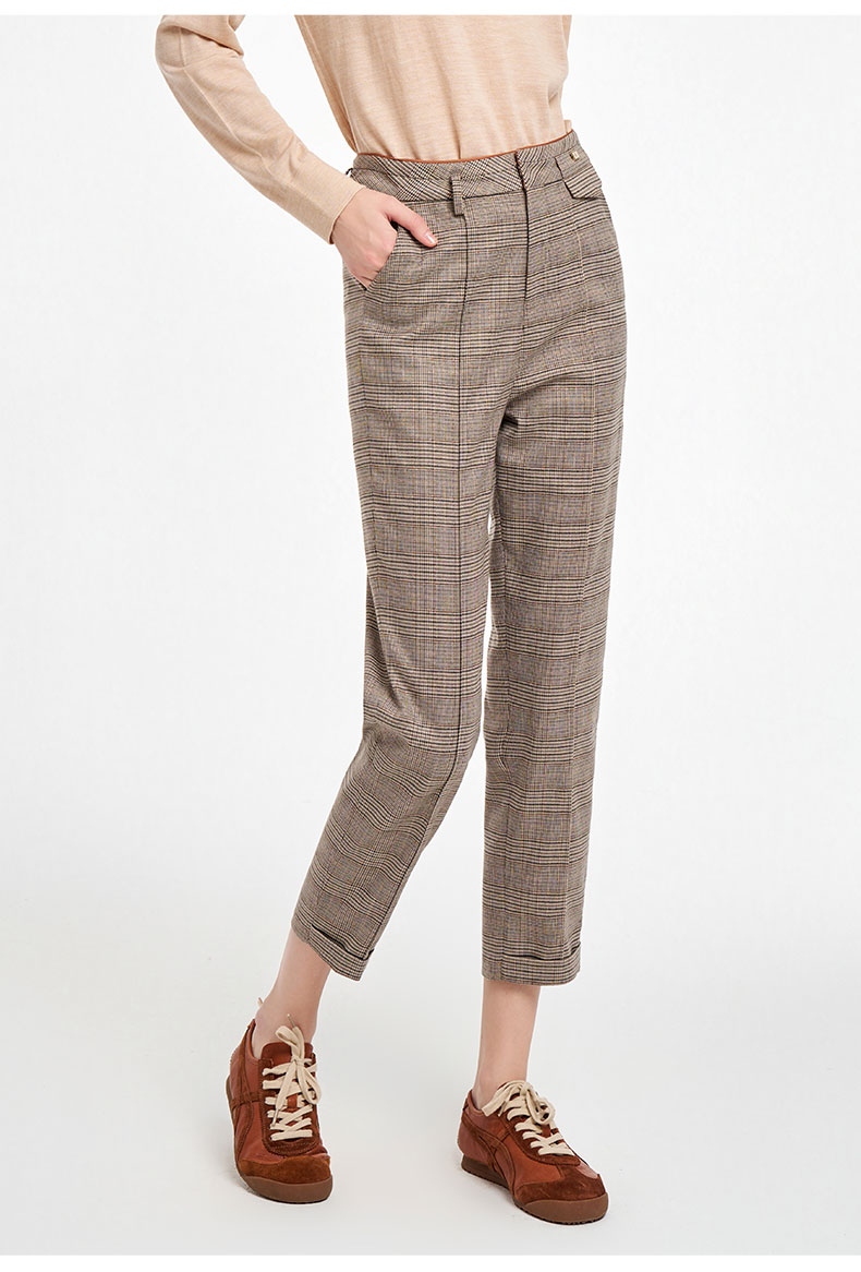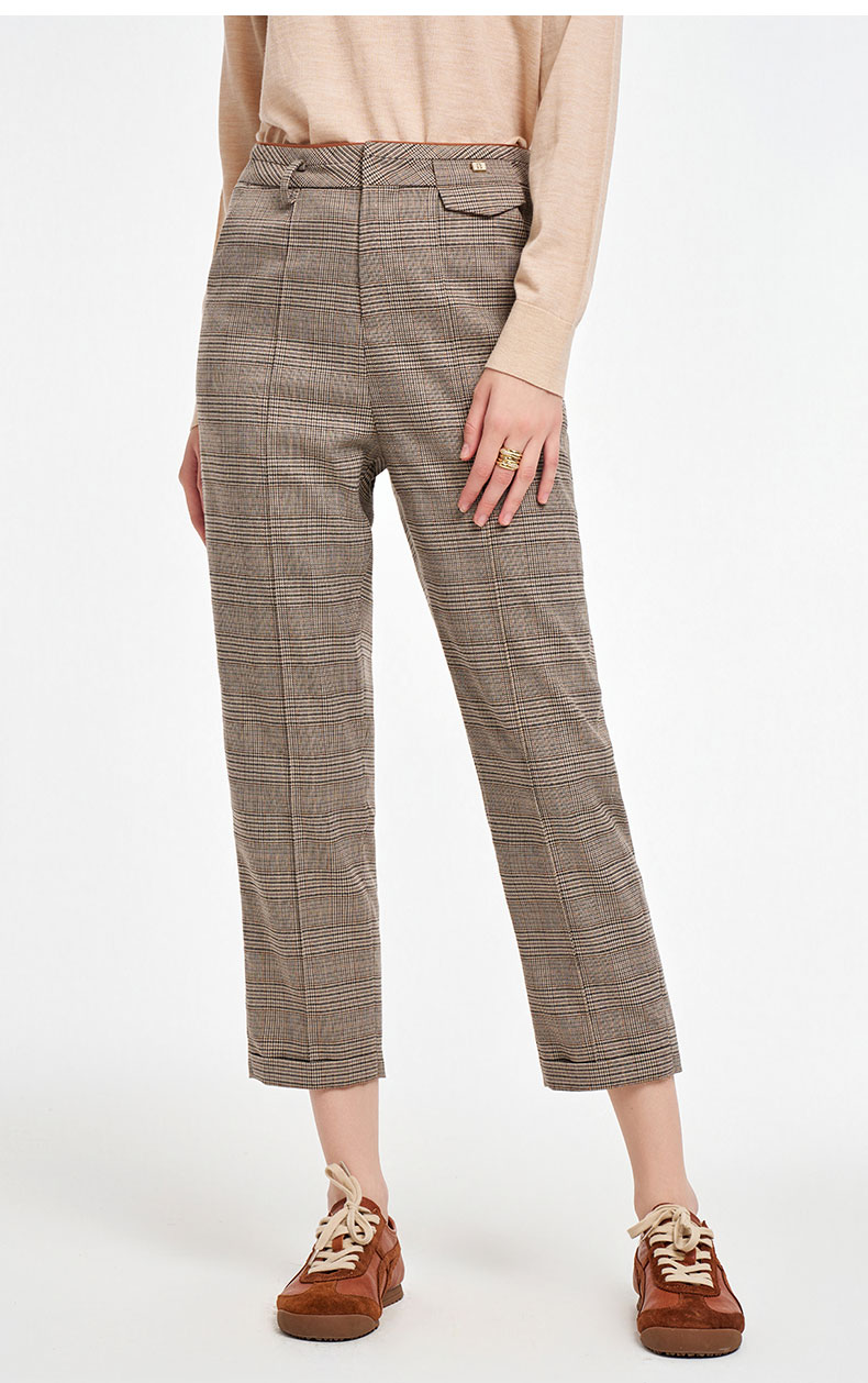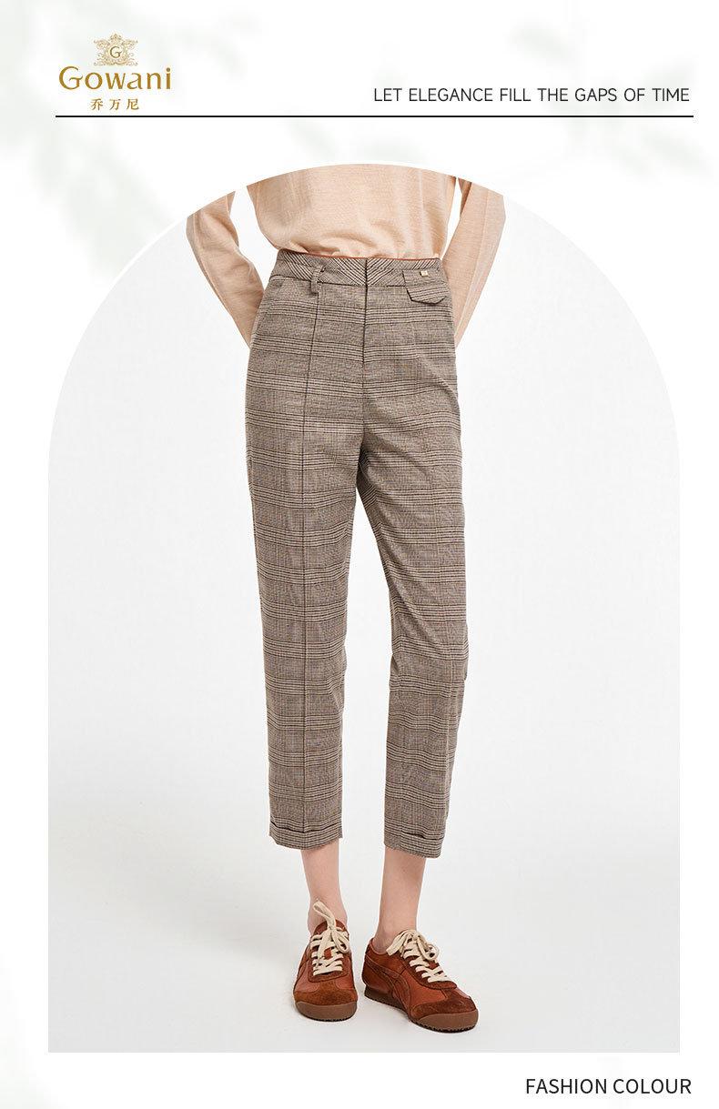 乔万尼2025新品英伦风复古格纹锥形长裤ED3F255