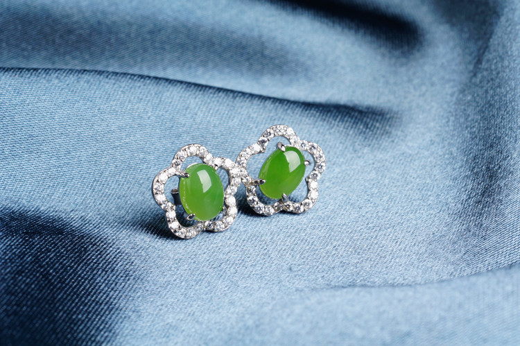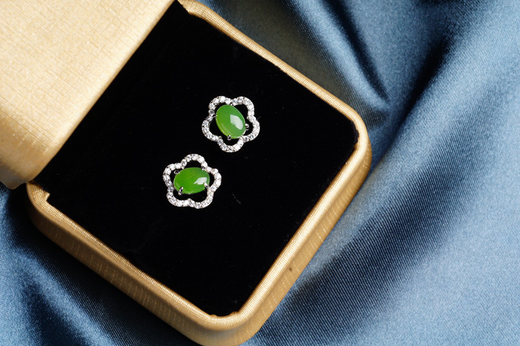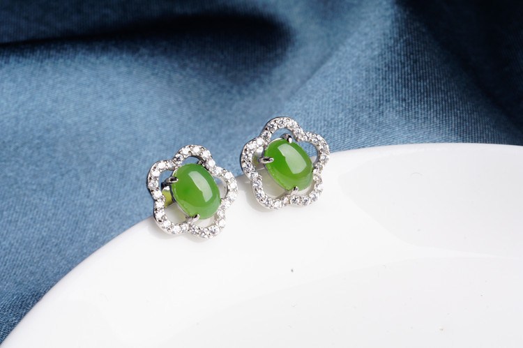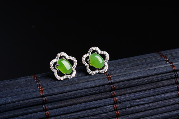 【预售3天】925纯银镶嵌和田碧玉耳环新中式国潮古风梅花玉耳8710245113
