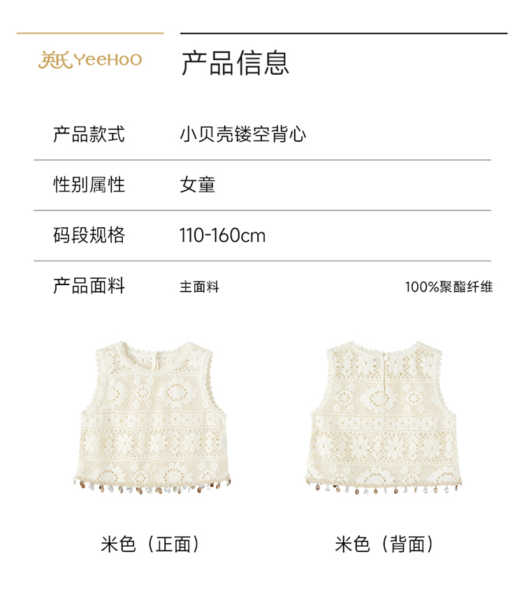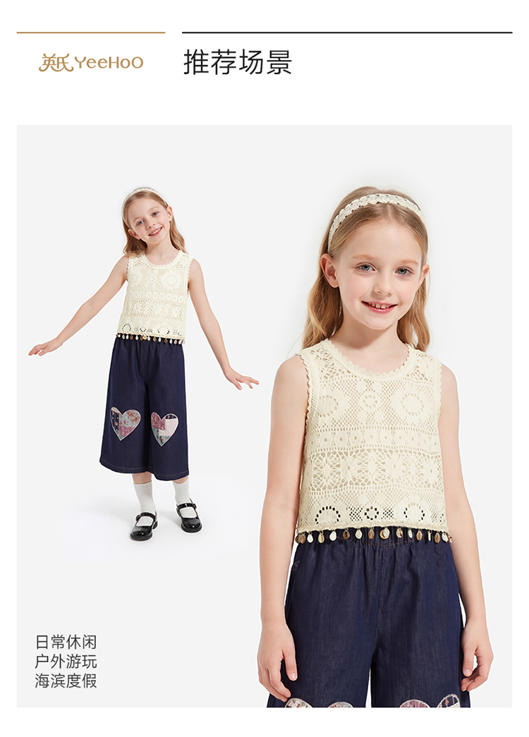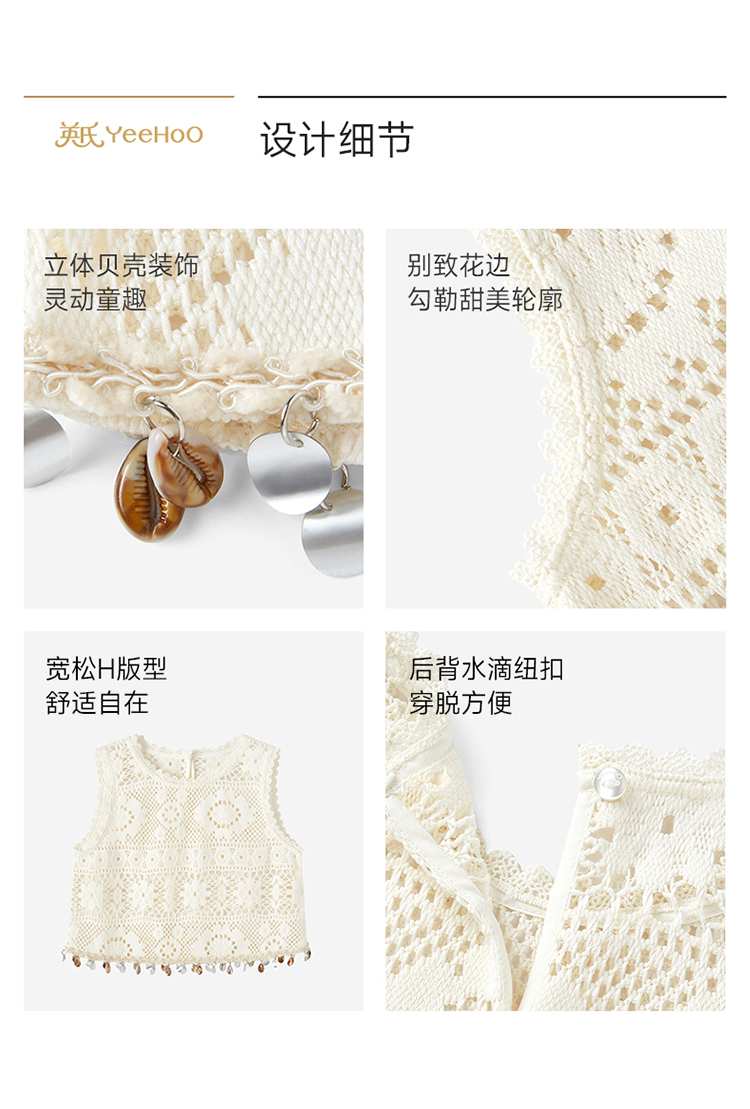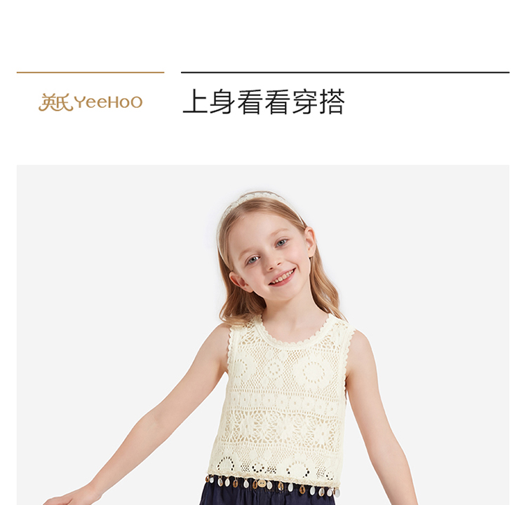 【透气散热】英氏儿童衣服女童春秋款圆领背心罩衫波西比亚风时尚上衣2026新款