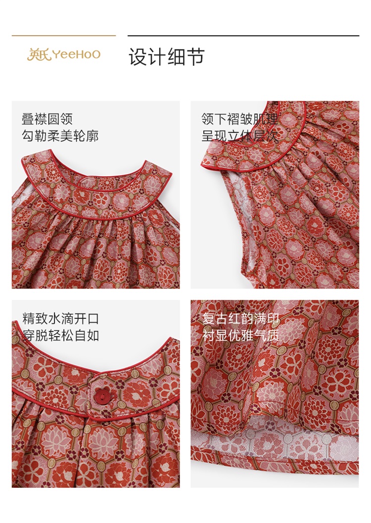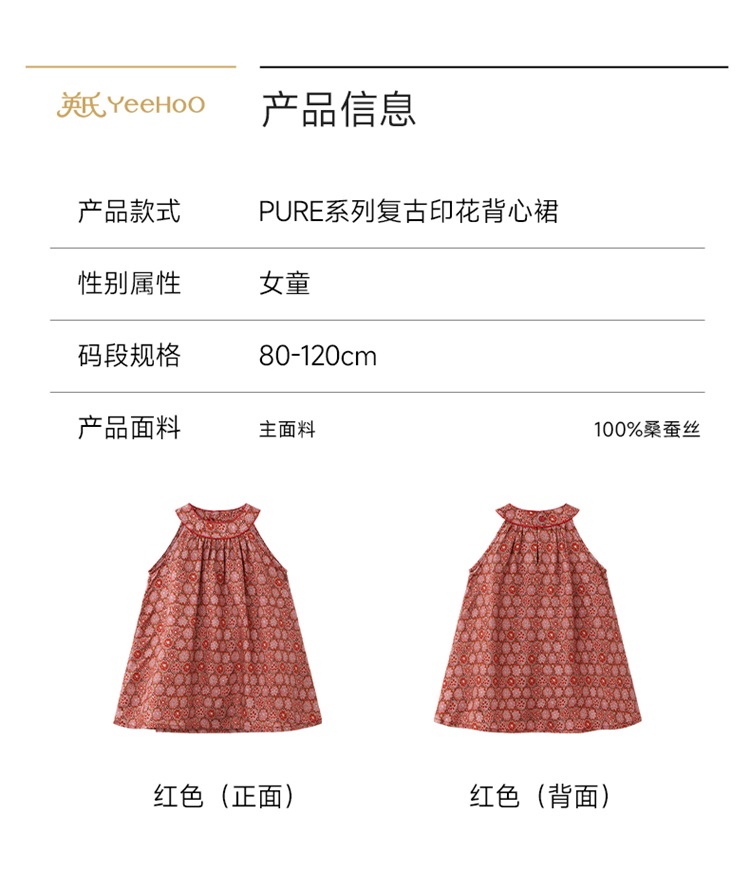 【高定系列】英氏儿童裙子女童夏季薄款背心裙红色桑蚕丝公主裙