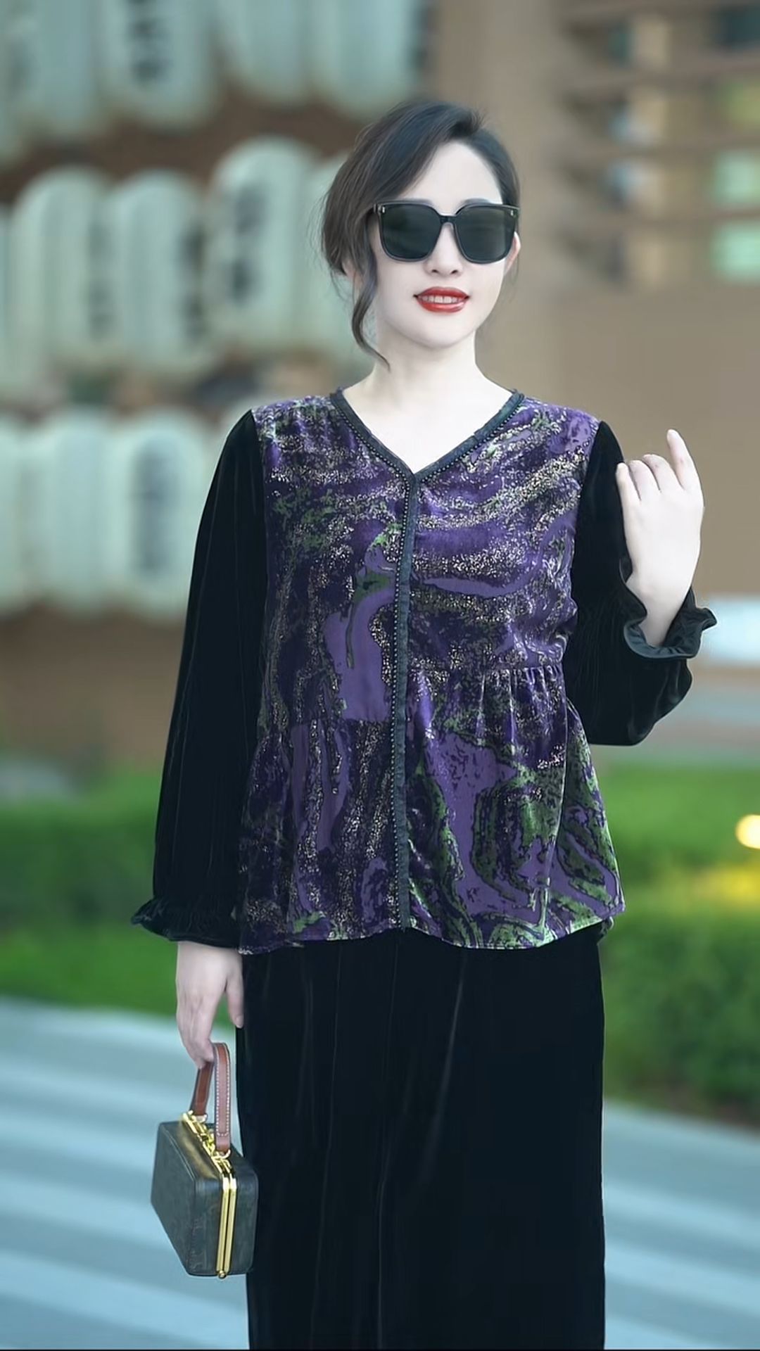 LX 30174丝绒新中式大码贵夫人复古气质上衣阔腿裤两件套 商品图2
