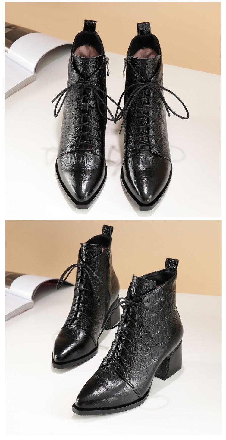 2019高端系列真皮头层牛皮绒里皮靴系带尖头粗跟高跟马丁靴 DTN301-1