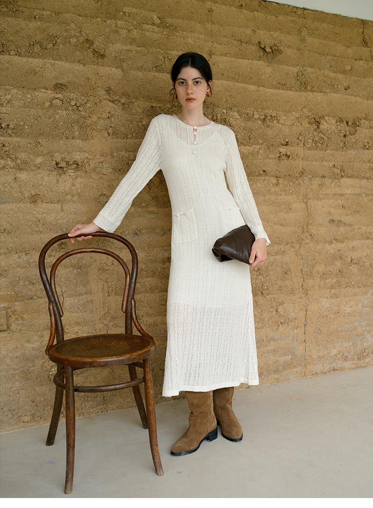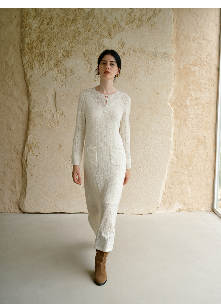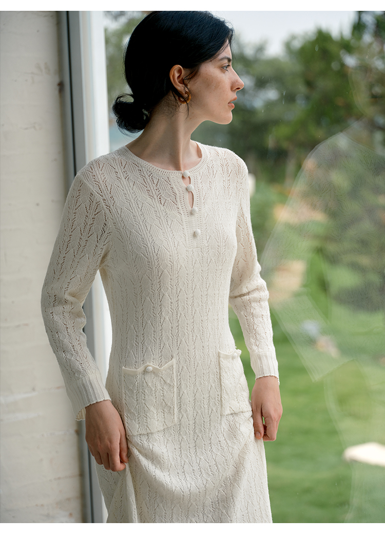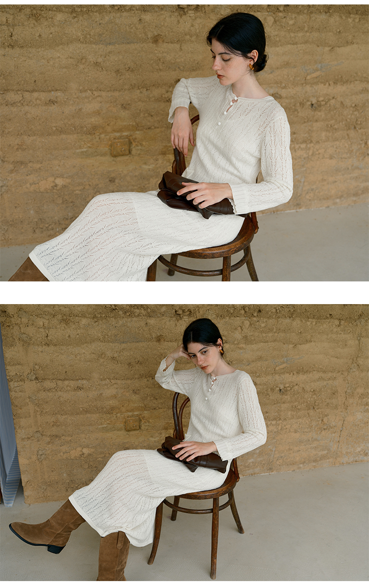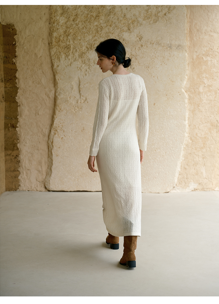 HeyDress提花羊毛收腰针织连衣裙