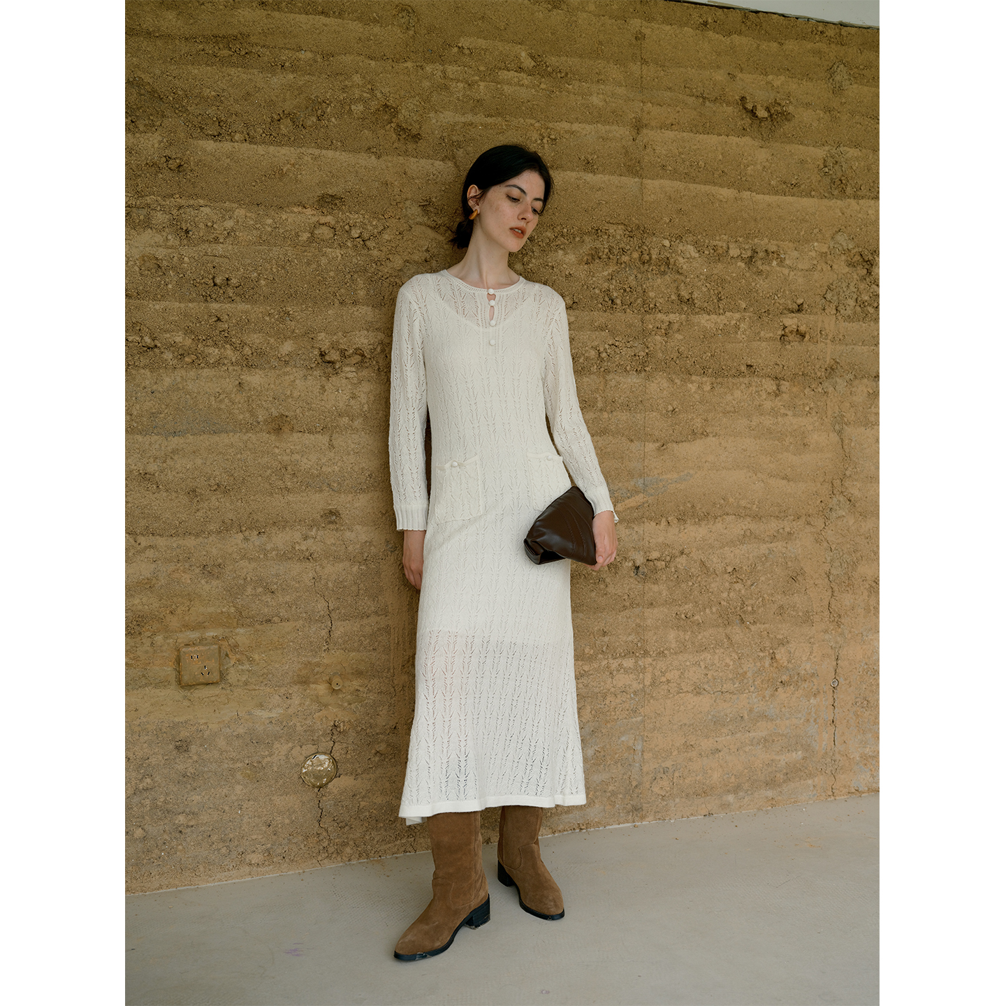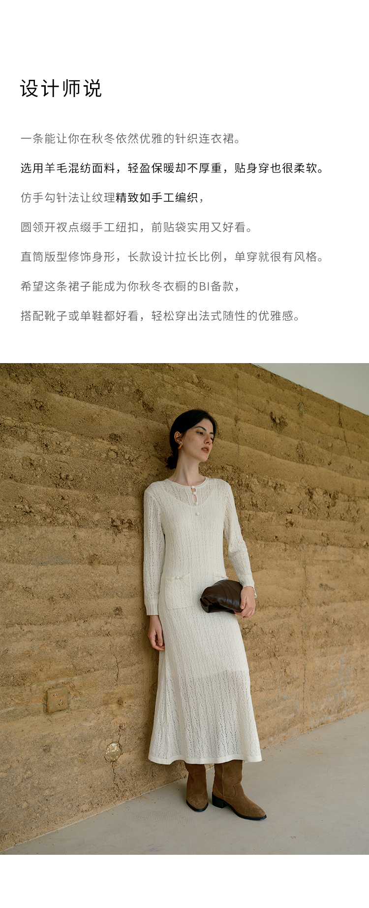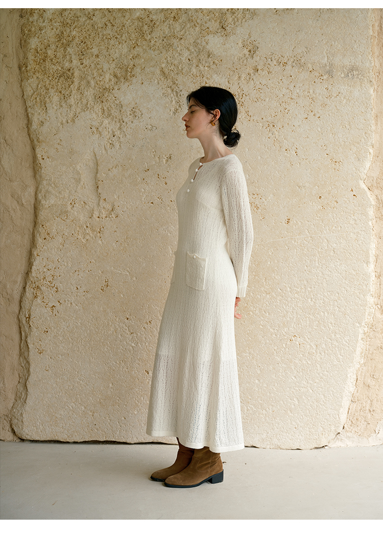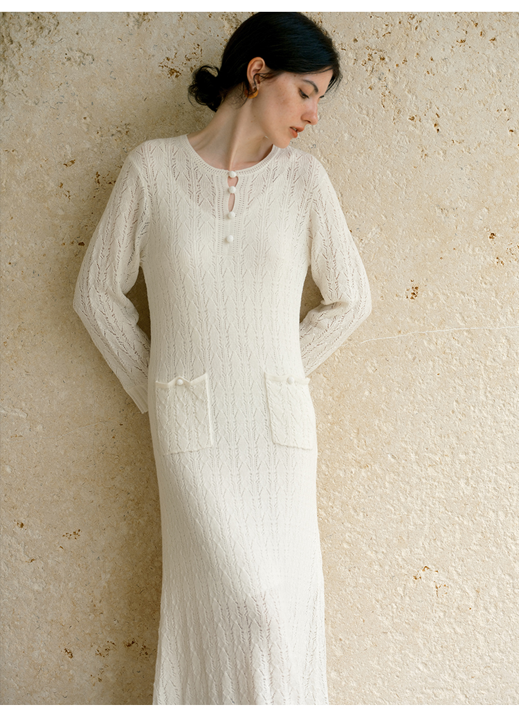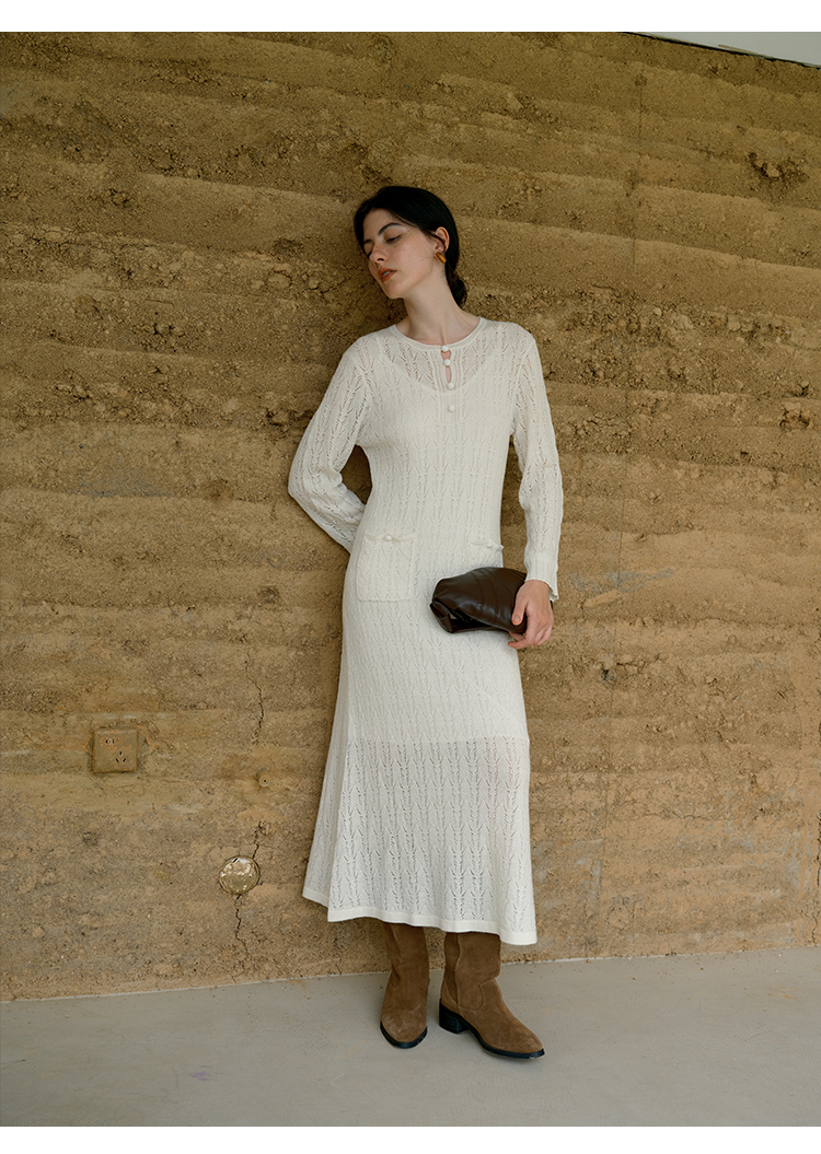 HeyDress提花羊毛收腰针织连衣裙