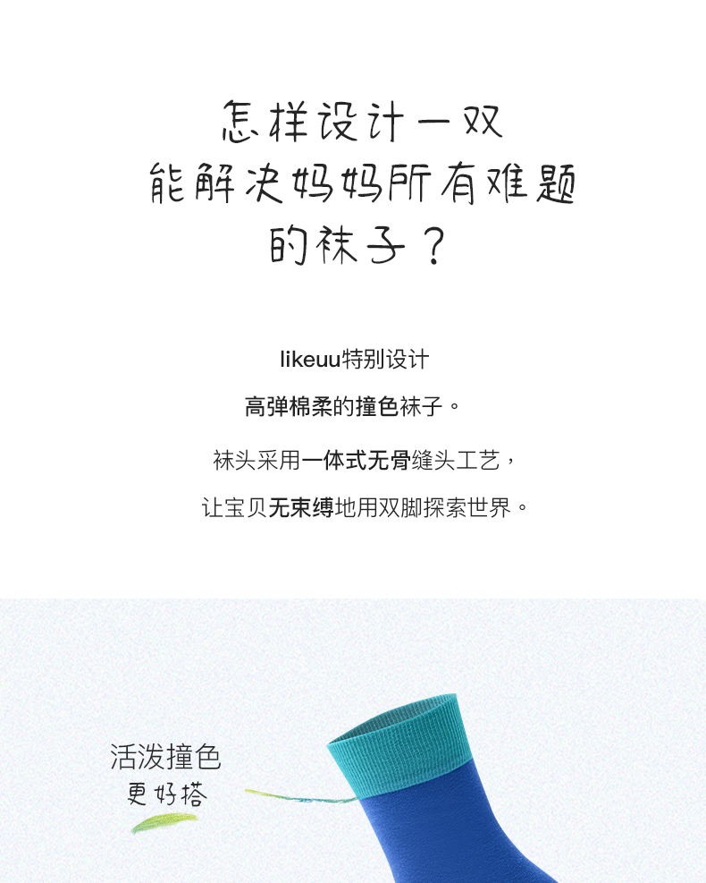 【老粉专属福利】llikeuu儿童袜撞色袜单条星辰蓝单拍不包邮