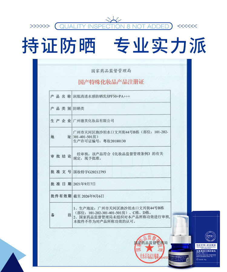 【新品1送1】质臣润凰清透水感防晒乳SPF50+PA+++【50】