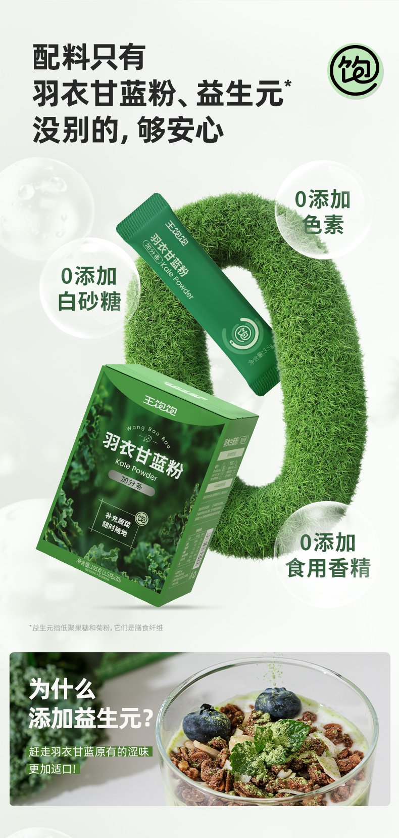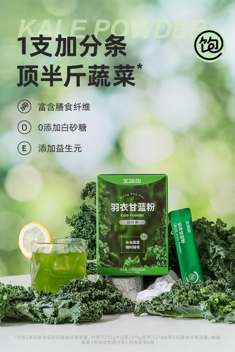 王饱饱天然粉粉 生可可粉/羽衣甘蓝粉/巴西莓粉 天然香醇营养 花青素果蔬纤维粉冲饮 150g/105g/盒