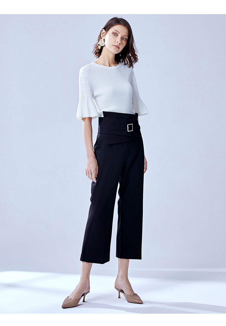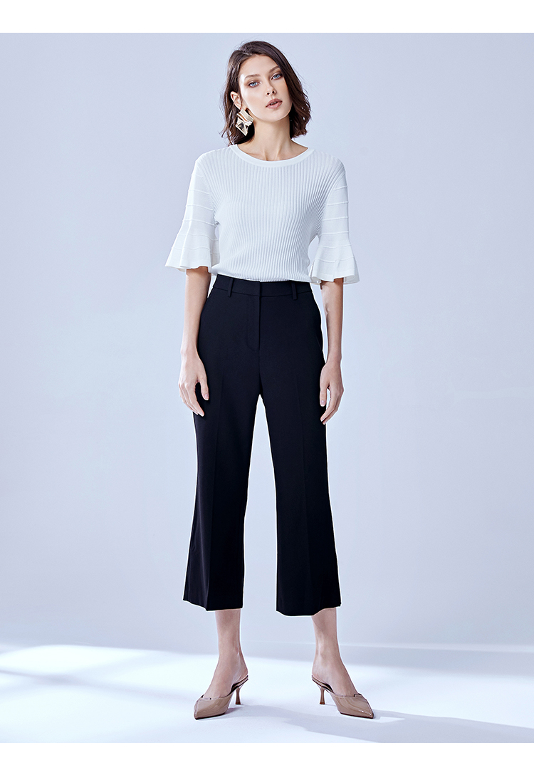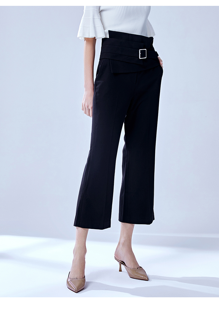 VIMAGE纬漫纪通勤显瘦显高职业百搭高腰微喇九分女裤V1305903