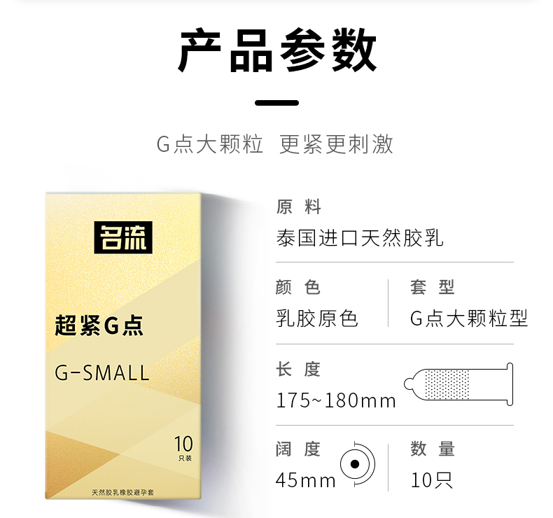 名流 天然胶乳橡胶避孕套 超紧G点 大颗粒超薄紧绷延时持久45mm 10只装