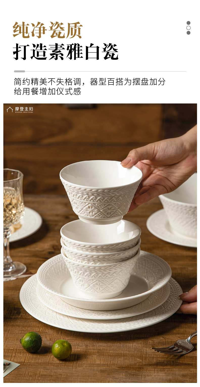 摩登主妇陶瓷餐具白色汤面碗家用2024新款高级感碗具个人专用饭碗
