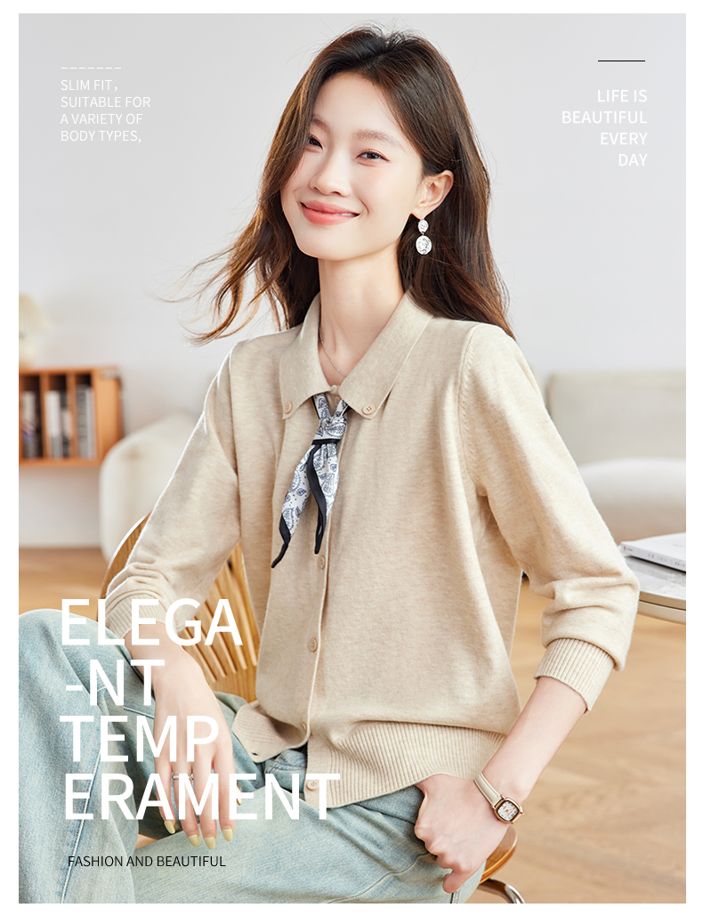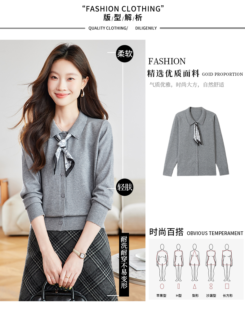 气质针织开衫,配丝巾打底毛衣上衣HR-SSFB092